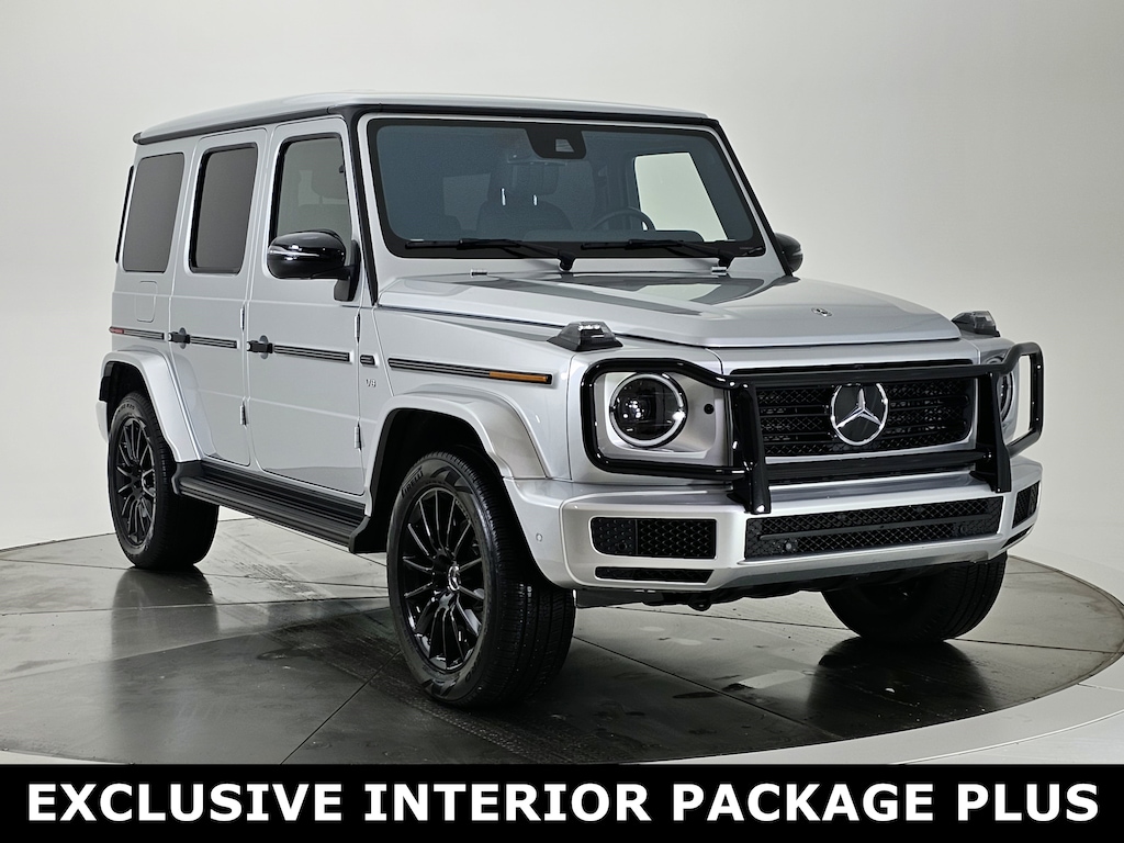 Iridium Silver Metallic 2024 Mercedes-Benz G-Class G 550 4MATIC® 9-Speed Automatic 4.0L V8 AMG® Floor Mats, AMG® Line, Exclusive Interior Package Plus, Exclusive Nappa Leather Upholstery, Exterior Protective Strip with Black Trim Insert, Exterior Protective Strips w/Trim Insert, Frameless Rearview Mirror, Front Brake Calipers w/Mercedes-Benz Lettering, MANUFAKTUR Black Running Boards, Multifunction Sports Steering Wheel in Nappa Leather, Nappa Leather Dashboard, Night Package, Seat Comfort Package, Spare Wheel Cover Ring in Obsidian Black, Sport Exhaust System, Wheels: 20" AMG® Multi-Spoke, Black.