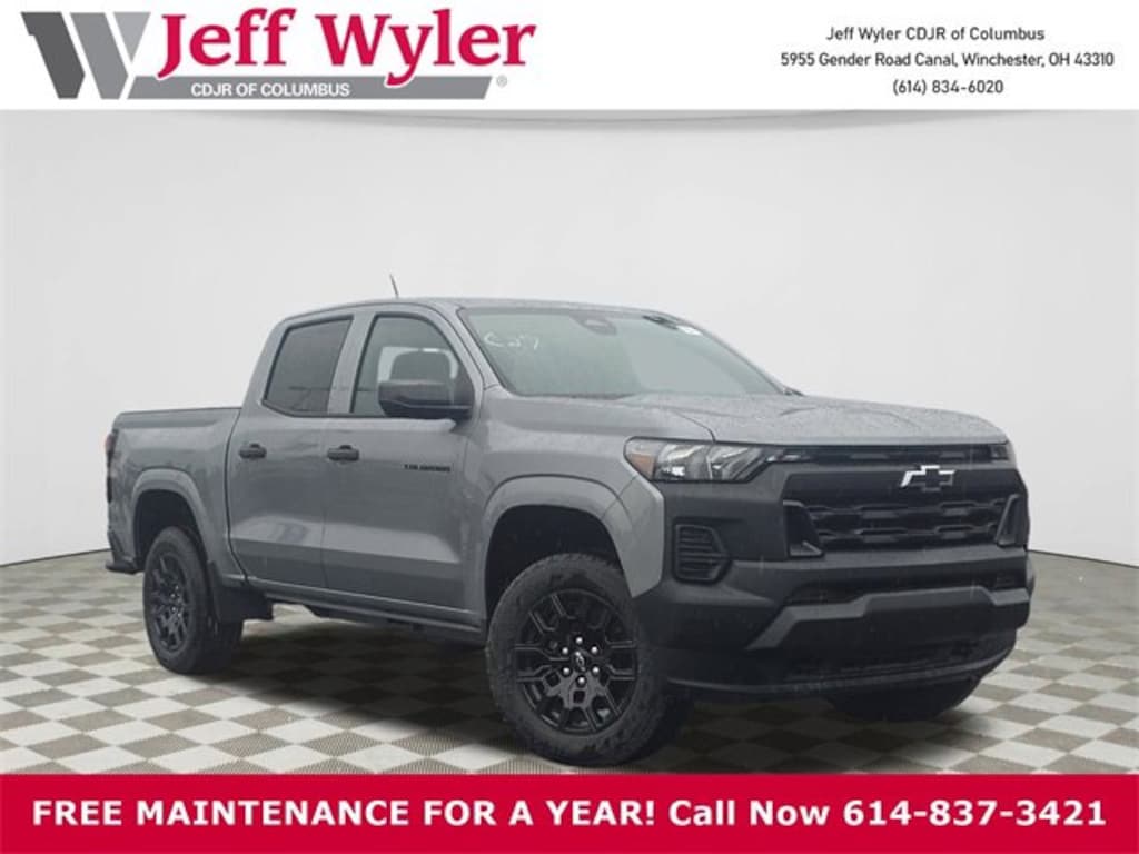 Jeff Wyler Columbus Auto Mall is proud to offer this fantastic-looking 2025 Chevrolet Colorado Work Truck in Sterling Gray Metallic. Well equipped with: Advanced Trailering Package (Automatic Locking Rear Differential, Blind Zone Steering Assist w/Trailering, and Trailering App), Heavy-Duty Trailering Package (Integrated Trailer Brake Controller), Preferred Equipment Group 4WT (Automatic Emergency Braking, Chevy Safety Assist, Following Distance Indicator, Forward Collision Alert, Front Pedestrian & Bicyclist Braking, IntelliBeam Automatic High Beam On/Off, and Lane Keep Assist w/Lane Departure Warning), WT Convenience Package II (4-Spoke Wrapped Steering Wheel, 8-Way Power Driver Seat Adjuster, EZ-Lift & Lower Tailgate, Power Driver Lumbar Control Seat Adjuster, StowFlex Tailgate Storage Compartment, and Tailgate Keyed Cylinder Lock), WT Custom Package (Black Nameplates (LPO) and Wheels: 18 x 8.5 Black High Gloss Aluminum), 4WD, 220 Amp Alternator, 3.42 Rear Axle Ratio, 4-Way Manual Passenger Seat Adjuster, 4-Wheel Disc Brakes, 6 Speakers, 6-Speaker Audio System Feature, 6-Way Manual Driver Seat Adjuster, ABS brakes, Air Conditioning, AM/FM radio: SiriusXM, Apple CarPlay/Android Auto, Auto High-beam Headlights, Black Bowtie Emblem (LPO), Brake assist, Cloth Seat Trim, Delay-off headlights, Driver door bin, Driver vanity mirror, Dual front impact airbags, Dual front side impact airbags, Electronic Stability Control, Emergency communication system: OnStar, Front anti-roll bar, Front Bucket Seats, Front Center Armrest, Front wheel independent suspension, Heated door mirrors, Low tire pressure warning, Navigation System, Occupant sensing airbag, Overhead airbag, Panic alarm, Passenger door bin, Passenger vanity mirror, Power door mirrors, Power steering, Power windows, Radio data system, Radio: 11.3 Diagonal Advanced Color LCD Display, Rear step bumper, Rear window defroster, Remote keyless entry, Security system, SiriusXM Trial Subscription, Speed control, Speed-sensing steering, Split folding rear seat, Steering Wheel Mounted Audio Controls, Steering wheel mounted audio controls, Tachometer, Tilt steering wheel, Traction control, Trip computer, Variably intermittent wipers, Wheels: 17 x 8 Ultra Silver Metallic Steel, and Wireless Phone Projection.Wyler Family First Package Includes: NanoCure Appearance Protection: Exterior & Interior Chemical Sealant Applied to Protect Against Environmental Hazards (7 Year Warranty Coverage). Pulse- Rear End Collision Avoidance System Theft Deterrent Strategy gives you 5 Years of Coverage against vehicle theft, Offering up to a $5,000 benefit. Price does not include Tax, Title, License and Documentary Fee$500 - GM Military Cash Allowance Program. Exp. 01/02/2026 $500 - GM Rewards Card Sales Sign Up and Spend Offer. Exp. 01/02/2026