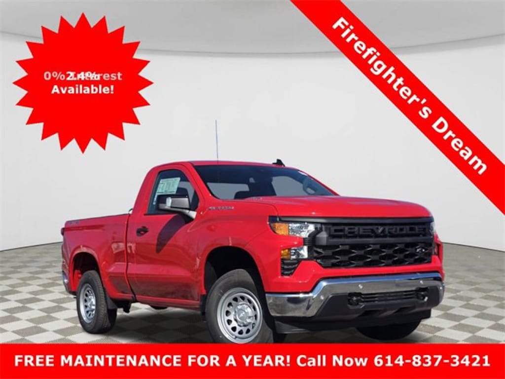 Jeff Wyler Columbus Auto Mall is very proud to offer this rock solid 2025 Chevrolet Silverado 1500 WT in Red Hot. Well equipped with: Preferred Equipment Group 1WT (3.5 Monochromatic Display Driver Info Center, 4-Way Manual Driver Seat Adjuster, Black (Semi-Gloss) Front Bumper, Black (Semi-Gloss) Rear Bumper, Bluetooth® For Phone, Electronic Cruise Control, Front Frame-Mounted Black Recovery Hooks, HD Rear Vision Camera, Heated Power-Adjustable Outside Mirrors, Inside Rear-View Mirror w/Tilt, Locking Tailgate, Manual Tailgate Function w/No EZ Lift, Manual Tilt Wheel Steering Column, OnStar Services Capable, Power Front Windows w/Driver Express Up/Down, Power Front Windows w/Passenger Express Down, Remote Keyless Entry, Rubberized-Vinyl Floor Covering, SiriusXM Delete, Solar Absorbing Tinted Glass, Standard Tailgate, Teen Driver, Tire Pressure Monitoring System, and Wi-Fi Hot Spot Capable), Standard Suspension Package, Trailering Package (Hitch Guidance), WT Convenience Package (Deep-Tinted Glass and Electric Rear-Window Defogger), WT Safety Package (Front Chrome Bumper, High Gloss Black Mirror Caps, Lane Change Alert w/Side Blind Zone Alert, Perimeter Lighting, Rear Chrome Bumper, Rear Cross Traffic Braking, Rear Pedestrian Alert, and Ultrasonic Front & Rear Park Assist), WT Value Package, 8-Speed Automatic, 4WD, Black Cloth, 120-Volt Bed Mounted Power Outlet, 120-Volt Interior Power Outlet, 2 Speakers, 2-Speaker Audio System, 220 Amp Alternator, 3.42 Rear Axle Ratio, 4-Wheel Disc Brakes, 40/20/40 Front Split Bench Seat, ABS brakes, Air Conditioning, Apple CarPlay/Android Auto, Auto High-beam Headlights, Automatic Emergency Braking, Brake assist, Compass, Delay-off headlights, Driver door bin, Dual front impact airbags, Dual front side impact airbags, Electronic Stability Control, Emergency communication system: OnStar, EZ Lift Power Lock & Release Tailgate, Following Distance Indicator, Forward Collision Alert, Front anti-roll bar, Front Black Bowtie Emblem (LPO), Front Center Armrest w/Storage, Front Pedestrian Braking, Front reading lights, Front wheel independent suspension, Fully automatic headlights, Heated door mirrors, Illuminated entry, Integrated Trailer Brake Controller, IntelliBeam Automatic High Beam On/Off, Lane Keep Assist w/Lane Departure Warning, Low tire pressure warning, Occupant sensing airbag, Outside temperature display, Overhead airbag, Overhead console, Panic alarm, Passenger door bin, Passenger vanity mirror, Power door mirrors, Power steering, Power windows, Premium audio system: Chevrolet Infotainment 3, Radio data system, Radio: Chevrolet Infotainment 3 System, Rear reading lights, Rear step bumper, Remote keyless entry, Speed control, Speed-sensing steering, Tachometer, Tilt steering wheel, Traction control, Trip computer, Variably intermittent wipers, Vinyl Seat Trim, Voltmeter, and Wheels: 17 x 8 Ultra Silver Painted Steel.Wyler Family First Package Includes: NanoCure Appearance Protection: Exterior & Interior Chemical Sealant Applied to Protect Against Environmental Hazards (7 Year Warranty Coverage). Pulse- Rear End Collision Avoidance System Theft Deterrent Strategy gives you 5 Years of Coverage against vehicle theft, Offering up to a $5,000 benefit. Price does not include Tax, Title, License and Documentary Fee$1000 - GM Bonus Cash. Exp. 11/03/2025 $3000 - Chevrolet Consumer Cash Program. Exp. 11/03/2025