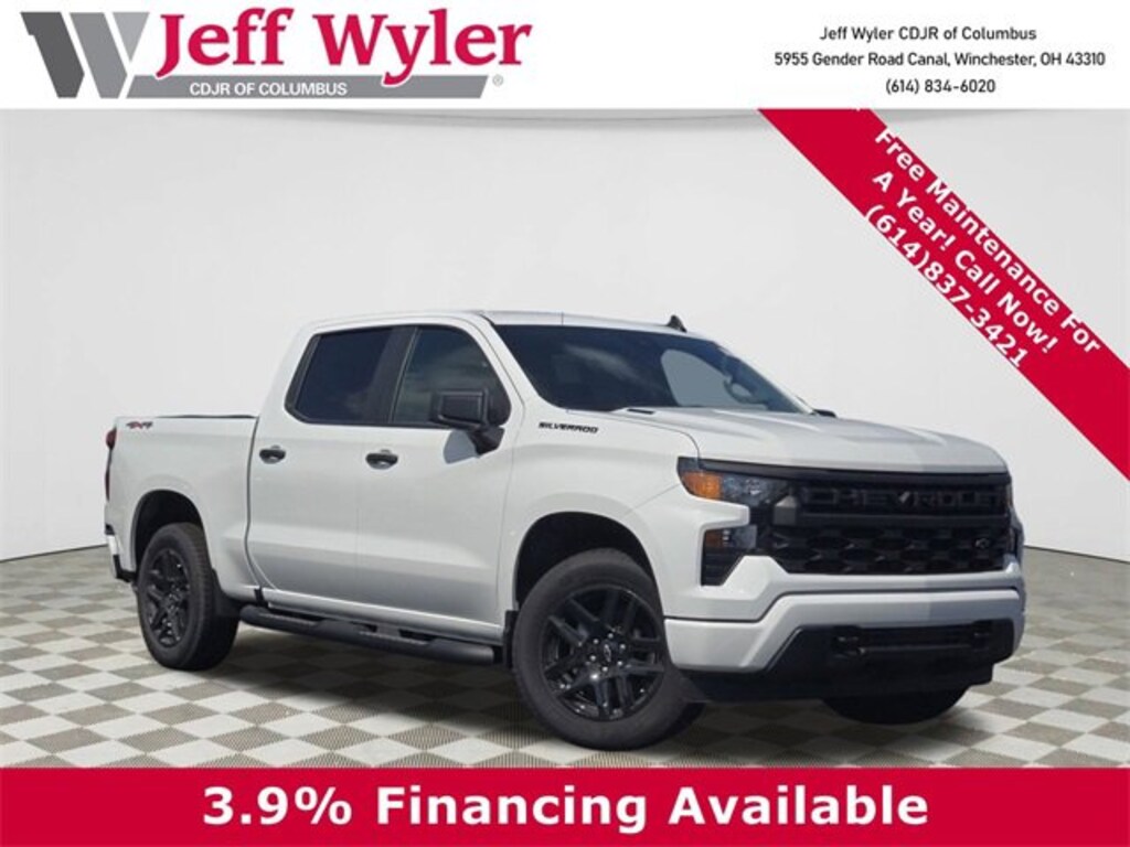 Jeff Wyler Columbus Auto Mall is very proud to offer this reliable 2025 Chevrolet Silverado 1500 Custom in Summit White. Well equipped with: Custom Convenience Package (Electric Rear-Window Defogger, EZ Lift Power Lock & Release Tailgate, LED Cargo Area Lighting, Remote Vehicle Starter System, and Theft Deterrent System (Unauthorized Entry)), Custom Value Package, Dark Essentials Package (LPO) (Black Name Plates (LPO)), High Capacity Suspension Package, Preferred Equipment Group 1CX (10-Way Power Driver Seat w/Lumbar, 120-Volt Bed Mounted Power Outlet, 120-Volt Interior Power Outlet, 3.5 Monochromatic Display Driver Info Center, Bluetooth® For Phone, Color-Keyed Carpeting Floor Covering, Deep-Tinted Glass, Dual Rear USB Ports (Charge Only), Electronic Cruise Control, Front Frame-Mounted Black Recovery Hooks, Front Rubberized Vinyl Floor Mats, HD Rear Vision Camera, Manual Tilt Wheel Steering Column, OnStar Services Capable, Power Front Windows w/Driver Express Up/Down, Power Front Windows w/Passenger Express Down, Power Rear Windows w/Express Down, Rear 60/40 Folding Bench Seat (Folds Up), Rear Rubberized-Vinyl Floor Mats, Remote Keyless Entry, SiriusXM Trial Subscription, Standard Tailgate, Teen Driver, Tire Pressure Monitoring System, and Wi-Fi Hot Spot Capable), Trailering Package (Hitch Guidance), 8-Speed Automatic, 4WD, Black Cloth, 3.42 Rear Axle Ratio, 4-Wheel Disc Brakes, 4 Black Round Assist Steps (LPO), 40/20/40 Front Split-Bench Seat, 6 Speakers, 6-Speaker Audio System, ABS brakes, Air Conditioning, All-Weather Floor Liner (LPO), Alloy wheels, AM/FM radio: SiriusXM, Apple CarPlay/Android Auto, Auto High-beam Headlights, Automatic Emergency Braking, Black Tailgate CHEVROLET Lettering (LPO), Brake assist, Bumpers: body-color, Chevytec Spray-On Black Bedliner, Cloth Seat Trim, Compass, Delay-off headlights, Driver door bin, Driver vanity mirror, Dual front impact airbags, Dual front side impact airbags, Electronic Stability Control, Emergency communication system: OnStar, Following Distance Indicator, Forward Collision Alert, Front anti-roll bar, Front Black Bowtie Emblem (LPO), Front Center Armrest w/Storage, Front Pedestrian Braking, Front reading lights, Front wheel independent suspension, Fully automatic headlights, Heated door mirrors, Illuminated entry, Integrated Trailer Brake Controller, IntelliBeam Automatic High Beam On/Off, Lane Keep Assist w/Lane Departure Warning, Low tire pressure warning, Occupant sensing airbag, Outside temperature display, Overhead airbag, Overhead console, Panic alarm, Passenger door bin, Passenger vanity mirror, Power door mirrors, Power driver seat, Power steering, Power windows, Premium audio system: Chevrolet Infotainment 3, Radio data system, Radio: Chevrolet Infotainment 3 System, Rear reading lights, Rear step bumper, Rear Wheelhouse Liners, Rear window defroster, Remote keyless entry, Security system, Speed control, Speed-sensing steering, Split folding rear seat, Tachometer, Tilt steering wheel, Traction control, Trip computer, Variably intermittent wipers, Voltmeter, Wheels: 20 x 9 Bright Silver Painted Aluminum, and Wheels: 20 x 9 High Gloss Black Painted Alum.
