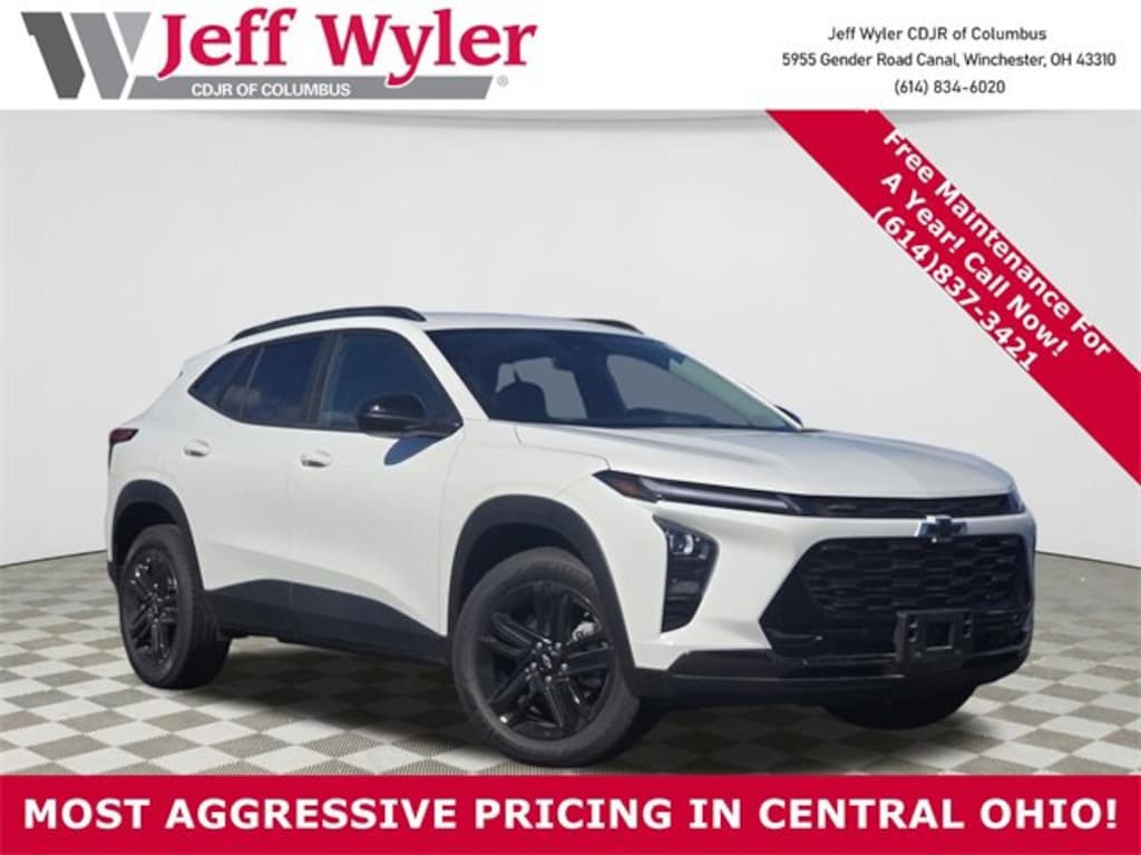 Jeff Wyler Columbus Auto Mall is honored to offer this fantastic-looking 2025 Chevrolet Trax ACTIV in Summit White. Well equipped with: Driver Confidence Package (Adaptive Cruise Control, Lane Change Alert w/Side Blind Zone Alert, Rear Cross-Traffic Alert, and Rear Park Assist), License Plate Front Mounting Package, Preferred Equipment Group 1SA, 2-Way Adjustable Front Head Restraints, 2-Way Power Driver Lumbar Seat Adjuster, 3.50 Final Drive Axle Ratio, 4-Way Manual Front Passenger Seat Adjuster, 4-Wheel Disc Brakes, 6 Speakers, 6-Speaker Audio System Feature, 8-Way Power Driver Seat Adjuster, ABS brakes, Active Front Lower Grille Shutters, Air Conditioning, Alloy wheels, AM/FM radio: SiriusXM, Auto High-beam Headlights, Automatic temperature control, Brake assist, Bumpers: body-color, Compass, Delay-off headlights, Driver door bin, Driver vanity mirror, Dual front impact airbags, Dual front side impact airbags, Electronic Stability Control, Emergency communication system: OnStar One Essentials, Engine Block Heater, Evotex Seat Trim, Exterior Parking Camera Rear, Front & Rear Custom Molded Splash Guards, Front anti-roll bar, Front Bucket Seats, Front Center Armrest, Front reading lights, Front wheel independent suspension, Fully automatic headlights, Heated door mirrors, Heated Driver & Front Passenger Seats, Heated front seats, Heated steering wheel, Illuminated entry, Leather steering wheel, Low tire pressure warning, Occupant sensing airbag, Outside temperature display, Overhead airbag, Overhead console, Panic alarm, Passenger door bin, Passenger vanity mirror, Power door mirrors, Power driver seat, Power steering, Power windows, Premium audio system: Chevrolet Infotainment 3, Radio data system, Radio: AM/FM Stereo Audio System, Rear window defroster, Rear window wiper, Remote keyless entry, Security system, SiriusXM Trial Subscription, Speed control, Split folding rear seat, Spoiler, Steering wheel mounted audio controls, Tachometer, Telescoping steering wheel, Tilt steering wheel, Traction control, Trip computer, Variably intermittent wipers, and Wheels: 18 Black-Painted Aluminum. 28/32 City/Highway MPGWyler Family First Package Includes: NanoCure Appearance Protection: Exterior & Interior Chemical Sealant Applied to Protect Against Environmental Hazards (7 Year Warranty Coverage). Pulse- Rear End Collision Avoidance System Theft Deterrent Strategy gives you 5 Years of Coverage against vehicle theft, Offering up to a $5,000 benefit. Price does not include Tax, Title, License and Documentary Fee$250 - GM Military Appreciation Month Cash Allowance Program. Exp. 12/01/2025 $500 - GM Military Cash Allowance Program. Exp. 01/02/2026 $500 - GM Rewards Card Sales Sign Up and Spend Offer. Exp. 01/02/2026