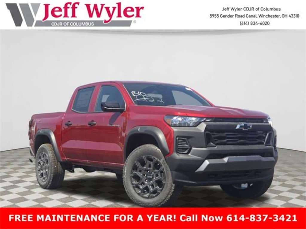Jeff Wyler Columbus Auto Mall is delighted to offer this fantastic-looking 2026 Chevrolet Colorado Trail Boss in Radiant Red Tintcoat. Well equipped with: Preferred Equipment Group 0TR (Automatic Emergency Braking, Chevy Safety Assist, Following Distance Indicator, Forward Collision Alert, Front Pedestrian & Bicyclist Braking, IntelliBeam Automatic High Beam On/Off, and Lane Keep Assist w/Lane Departure Warning), Trail Boss Convenience Package II (4-Spoke Wrapped Steering Wheel, 8-Way Power Driver Seat Adjuster, Driver & Front Passenger Heated Seats, Evotex Seat Trim, Heated Steering Wheel, Power Driver Lumbar Control Seat Adjuster, Remote Vehicle Starter System, and Wireless Phone Charging), 4WD, 3.42 Rear Axle Ratio, 4-Way Manual Passenger Seat Adjuster, 4-Wheel Disc Brakes, 6 Speakers, 6-Speaker Audio System Feature, 6-Way Manual Driver Seat Adjuster, ABS brakes, Air Conditioning, Alloy wheels, AM/FM radio: SiriusXM with 360L, Apple CarPlay/Android Auto, Auto High-beam Headlights, Automatic temperature control, Brake assist, Cloth Seat Trim, Compass, Delay-off headlights, Driver door bin, Driver vanity mirror, Dual front impact airbags, Dual front side impact airbags, Electronic Stability Control, Emergency communication system: OnStar, Front anti-roll bar, Front Bucket Seats, Front Center Armrest, Front dual zone A/C, Front wheel independent suspension, Heated door mirrors, Illuminated entry, Low tire pressure warning, Navigation System, Occupant sensing airbag, Outside temperature display, Overhead airbag, Overhead console, Panic alarm, Passenger door bin, Passenger vanity mirror, Power door mirrors, Power steering, Power windows, Radio data system, Radio: 11.3 Diagonal Advanced Color LCD Display, Rear reading lights, Rear step bumper, Rear window defroster, Remote keyless entry, Security system, SiriusXM w/360L Trial Subscription, Speed control, Speed-sensing steering, Split folding rear seat, Steering Wheel Mounted Audio Controls, Steering wheel mounted audio controls, Tachometer, Tilt steering wheel, Traction control, Trip computer, Variably intermittent wipers, Wheels: 18 x 8.5 Black High Gloss Aluminum, Wheels: 20 x 9 High Gloss Black Aluminum, and Wireless Phone Projection.