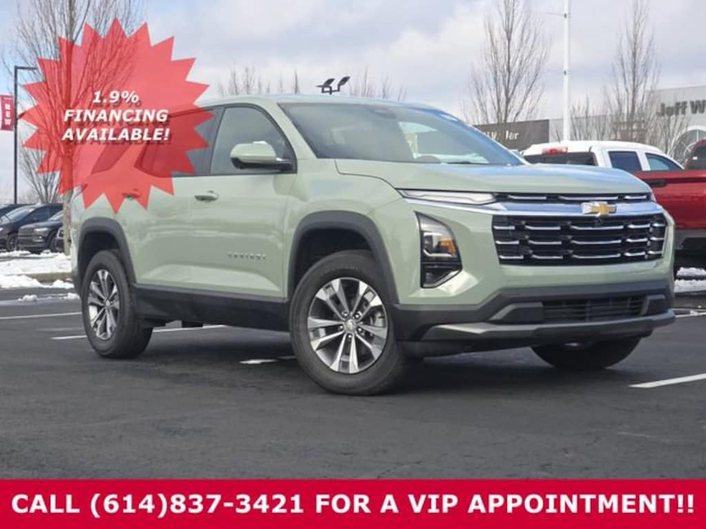 Jeff Wyler Columbus Auto Mall is honored to offer this outstanding 2026 Chevrolet Equinox LT in Cacti Green. Well equipped with: Floor Liner Package (All-Weather Floor Liners, Cargo Mat, and Second Row All-Weather Mat), Preferred Equipment Group 1LT, Safety and Technology Package (Front Fog Lamps, HD Surround Vision, Rear Pedestrian Alert, and Traffic Sign Recognition), 4-Wheel Disc Brakes, 5.81 Final Drive Axle Ratio, 6 Speakers, ABS brakes, Air Conditioning, Alloy wheels, AM/FM radio: SiriusXM, Auto High-beam Headlights, Brake assist, Bumpers: body-color, Cloth Seat Trim, Compass, Delay-off headlights, Driver 6-Way Manual Seat Adjuster, Driver door bin, Driver vanity mirror, Dual front impact airbags, Dual front side impact airbags, Electronic Stability Control, Emergency communication system: OnStar and Chevrolet connected services capable, Four wheel independent suspension, Front anti-roll bar, Front Bucket Seats, Front Center Armrest, Front Passenger 4-Way Manual Seat Adjuster, Front reading lights, Fully automatic headlights, Heated door mirrors, Heated Driver and Front Passenger Seats, Heated front seats, Heated steering wheel, Illuminated entry, Low tire pressure warning, Navigation System, Occupant sensing airbag, Outside temperature display, Overhead airbag, Overhead console, Panic alarm, Passenger door bin, Passenger vanity mirror, Power door mirrors, Power steering, Power windows, Premium audio system: Chevrolet Infotainment 3, Radio data system, Radio: 11.3 Diagonal Advanced Color LCD Display, Rear anti-roll bar, Rear Camera Mirror Washer, Rear reading lights, Rear seat center armrest, Rear window defroster, Rear window wiper, Remote keyless entry, Security system, SiriusXM with 360L Trial Subscription, Speed control, Speed-sensing steering, Split folding rear seat, Spoiler, Steering wheel mounted audio controls, Tachometer, Telescoping steering wheel, Tilt steering wheel, Traction control, Trip computer, Variably intermittent wipers, and Wheels: 17 Grazen Metallic Machined-Face Aluminum. 26/28 City/Highway MPGWyler Family First Package Includes: NanoCure Appearance Protection: Exterior & Interior Chemical Sealant Applied to Protect Against Environmental Hazards (7 Year Warranty Coverage). Pulse- Rear End Collision Avoidance System Theft Deterrent Strategy gives you 5 Years of Coverage against vehicle theft, Offering up to a $5,000 benefit. Price does not include Tax, Title, License and Documentary Fee$500 - GM Military Cash Allowance Program. Exp. 01/04/2027 $500 - GM Rewards Card Sales Sign Up and Spend Offer. Exp. 06/30/2026 $750 - Chevrolet Purchase Loyalty Program. Exp. 03/02/2026