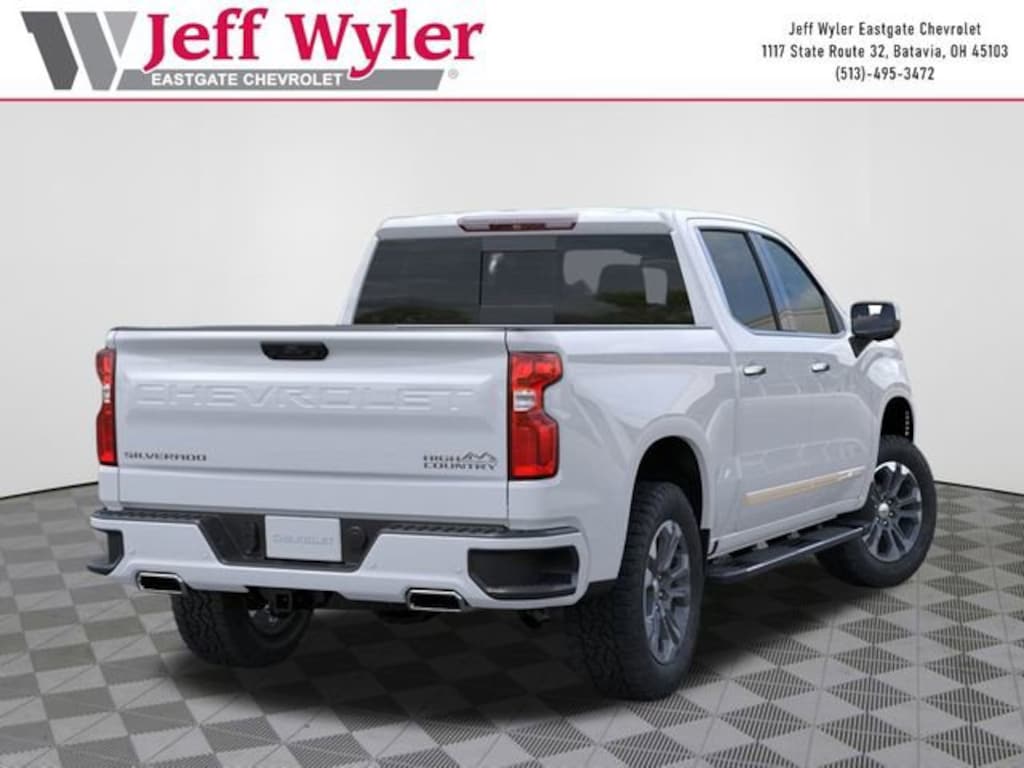 Jeff Wyler Columbus Auto Mall is honored to offer this hard-working 2026 Chevrolet Silverado 1500 High Country in Polar White Tricoat. Well equipped with: High Capacity Suspension Package, Preferred Equipment Group 3LZ (10-Way Power Driver Seat with Lumbar, 10-Way Power Passenger Seat Adjuster with Lumbar, 12.3 Multicolor Reconfigurable Digital Display, 120-Volt Bed Mounted Power Outlet, 120-Volt Interior Power Outlet, 2 USB Data Ports, 2nd Row Heated Outboard Seats, Adaptive Cruise Control, Auto-Dimming Inside Rear-View Mirror, Auto-Locking Rear Differential, Bed View Camera, Bluetooth® For Phone, Chevytec Spray-on Black Bedliner, Chrome Assist Steps, Chrome Recovery Hooks, Color-Keyed Carpeting Floor Covering, Deep-Tinted Glass, Driver Memory, Dual Exhaust with Polished Outlets, Dual Rear USB Ports (charge Only), Electric Rear-Window Defogger, Floor Mounted Center Console, Front Bucket Seats, Front Carpeted Floor Mats, Front LED Fog Lamps, Front Rain-Sensing Wipers, Galvano Silver Painted Mirror Caps, HD Surround Vision, Heated Driver and Front Outboard Passenger Seats, Heated Steering Wheel, Hitch Guidance with Hitch View, in-Vehicle Trailering System App, Integrated Trailer Brake Controller, Keyless Open and Start, LED Cargo Area Lighting, OnStar Services Capable, Outside Heated Power-Adjustable Mirrors, Perforated Leather Seat Trim, Perimeter Lighting, Power Front Passenger Windows with Express Up/Down, Power Front Windows with Driver Express Up/Down, Power Rear Windows with Express Down, Power Sliding Rear Window with Rear Defogger, Power Tailgate, Power Tilt and Telescoping Steering Column, Rear Carpeted Floor Mats, Rear Cross Traffic Braking, Rear Pedestrian Alert, Rear Wheelhouse Liners, Remote Vehicle Starter System, Safety Alert Seat, SiriusXM with 360L Trial Subscription, Standard Tailgate, Steering Wheel Audio Controls, Teen Driver, Theft Deterrent System (unauthorized Entry), Tire Pressure Monitoring System, Trailer Camera Provisions, Trailer Side Blind Zone Alert, Ultrasonic Front and Rear Park Assist, Universal Home Remote, Ventilated Driver and Front Passenger Seats, Wheels: 20 x 9 Painted Aluminum, Wi-Fi Hot Spot Capable, and Wrapped Steering Wheel), Technology Package (15 Diagonal Multicolor Head-Up Display and Rear Camera Mirror), Trailering Package (Hitch Guidance), Up-Level Rear Seat with Storage Package, 10-Speed Automatic, 4WD, Jet Black Leather, 170 Amp Alternator, 3.23 Rear Axle Ratio, 4-Wheel Disc Brakes, 7 Speakers, ABS brakes, Air Conditioning, Alloy wheels, AM/FM radio: SiriusXM with 360L, Apple CarPlay/Android Auto, Auto High-beam Headlights, Auto-dimming door mirrors, Auto-dimming Rear-View mirror, Automatic temperature control, Bodyside moldings, Brake assist, Bumpers: body-color, Compass, Delay-off headlights, Driver door bin, Driver vanity mirror, Dual front impact airbags, Dual front side impact airbags, Electronic Stability Control, Electronic Transmission Range Selector Shifter, Emergency communication system: OnStar, Enhanced Automatic Emergency Braking, Following Distance Indicator, Forward Collision Alert, Front anti-roll bar, Front Center Armrest, Front dual zone A/C, Front fog lights, Front Pedestrian Braking, Front reading lights, Front wheel independent suspension, Fully automatic headlights, Garage door transmitter, Genuine wood console insert, Genuine wood dashboard insert, Genuine wood door panel insert, Heated door mirrors, Heated front seats, Heated rear seats, Heated steering wheel, Illuminated entry, IntelliBeam Automatic High Beam on/Off, Lane Keep Assist with Lane Departure Warning, Low tire pressure warning, Me Price does not include Tax, Title, License and Documentary Fee$1250 - GM Costco Executive Member Private Offer . Exp. 04/30/2026 $3250 - Chevrolet Consumer Cash Program. Exp. 03/31/2026 $500 - Chevrolet Bonus Cash. Exp. 03/31/2026 $500 - GM Military Cash Allowance Program. Exp. 01/04/2027 $500 - GM Rewards Card Sales Sign Up and Spend Offer. Exp. 06/30/2026
