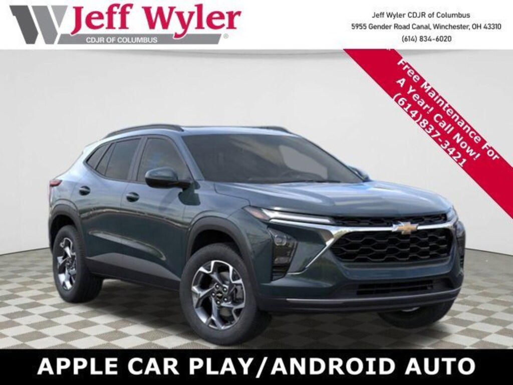 Jeff Wyler Columbus Auto Mall is pleased to offer this handsome 2026 Chevrolet Trax LT in Cypress Gray. Well equipped with: Preferred Equipment Group 1LT, Sunroof Package (Power Sliding Glass Sunroof with Manual Shade and Wireless Charging), 2-Way Adjustable Front Head Restraints, 3.50 Final Drive Axle Ratio, 4-Way Manual Front Passenger Seat Adjuster, 4-Wheel Disc Brakes, 6 Speakers, 6-Speaker Audio System Feature, 6-Way Manual Driver Seat Adjuster, ABS brakes, Air Conditioning, Alloy wheels, AM/FM radio: SiriusXM, Auto High-beam Headlights, Automatic temperature control, Brake assist, Bumpers: body-color, Cloth/Evotex Seat Trim, Compass, Delay-off headlights, Driver door bin, Driver vanity mirror, Dual front impact airbags, Dual front side impact airbags, Electronic Stability Control, Emergency communication system: OnStar One Essentials, Exterior Parking Camera Rear, Front anti-roll bar, Front Bucket Seats, Front Center Armrest, Front reading lights, Front wheel independent suspension, Fully automatic headlights, Illuminated entry, Low tire pressure warning, Occupant sensing airbag, Outside temperature display, Overhead airbag, Overhead console, Panic alarm, Passenger door bin, Passenger vanity mirror, Power door mirrors, Power steering, Power windows, Premium audio system: Chevrolet Infotainment 3, Radio data system, Radio: AM/FM Stereo Audio System, Rear window defroster, Rear window wiper, Remote keyless entry, Security system, SiriusXM Trial Subscription, Speed control, Split folding rear seat, Spoiler, Steering wheel mounted audio controls, Tachometer, Telescoping steering wheel, Tilt steering wheel, Traction control, Trip computer, Variably intermittent wipers, Wheels: 17 Inch Gray-Painted Machined Aluminum Alloy, and Wireless Apple CarPlay/Wireless Android Auto. 28/32 City/Highway MPG