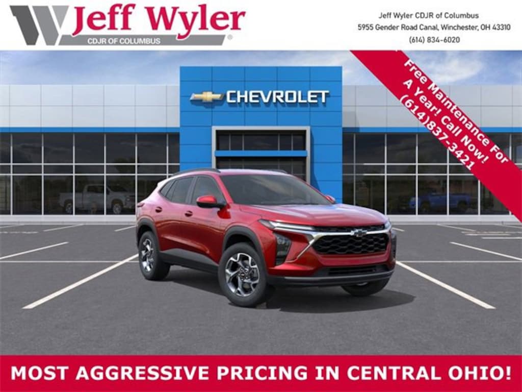 Jeff Wyler Columbus Auto Mall is very proud to offer this handsome-looking 2026 Chevrolet Trax LT in Red. Well equipped with: Driver Confidence Package (Adaptive Cruise Control, Lane Change Alert with Side Blind Zone Alert, Rear Cross Traffic Alert, and Rear Park Assist), Interior Protection Package (Front and Rear Jet Black All-Weather Floor Liners and Jet Black Cargo Liner), LT Convenience Package (Front Doors Keyless Open, Heated Driver and Front Passenger Seats, Heated Power-Adjustable Outside Mirrors, Heated Steering Wheel, and Wrapped Steering Wheel), 2-Way Adjustable Front Head Restraints, 3.50 Final Drive Axle Ratio, 4-Way Manual Front Passenger Seat Adjuster, 4-Wheel Disc Brakes, 6 Speakers, 6-Speaker Audio System Feature, 6-Way Manual Driver Seat Adjuster, ABS brakes, Air Conditioning, Alloy wheels, AM/FM radio: SiriusXM, Auto High-beam Headlights, Automatic temperature control, Brake assist, Bumpers: body-color, Cloth/Evotex Seat Trim, Compass, Delay-off headlights, Driver door bin, Driver vanity mirror, Dual front impact airbags, Dual front side impact airbags, Electronic Stability Control, Emergency communication system: OnStar One Essentials, Exterior Parking Camera Rear, Front and Rear Black Bowtie Emblems, Front anti-roll bar, Front Bucket Seats, Front Center Armrest, Front reading lights, Front wheel independent suspension, Fully automatic headlights, Illuminated entry, Low tire pressure warning, Occupant sensing airbag, Outside temperature display, Overhead airbag, Overhead console, Panic alarm, Passenger door bin, Passenger vanity mirror, Power door mirrors, Power steering, Power windows, Premium audio system: Chevrolet Infotainment 3, Radio data system, Radio: AM/FM Stereo Audio System, Rear window defroster, Rear window wiper, Remote keyless entry, Security system, SiriusXM Trial Subscription, Speed control, Split folding rear seat, Spoiler, Steering wheel mounted audio controls, Tachometer, Telescoping steering wheel, Tilt steering wheel, Traction control, Trip computer, Variably intermittent wipers, Wheels: 17 Inch Gray-Painted Machined Aluminum Alloy, and Wireless Apple CarPlay/Wireless Android Auto. 28/32 City/Highway MPGWyler Family First Package Includes: NanoCure Appearance Protection: Exterior & Interior Chemical Sealant Applied to Protect Against Environmental Hazards (7 Year Warranty Coverage). Pulse- Rear End Collision Avoidance System Theft Deterrent Strategy gives you 5 Years of Coverage against vehicle theft, Offering up to a $5,000 benefit. Price does not include Tax, Title, License and Documentary Fee$500 - GM Military Cash Allowance Program. Exp. 01/04/2027