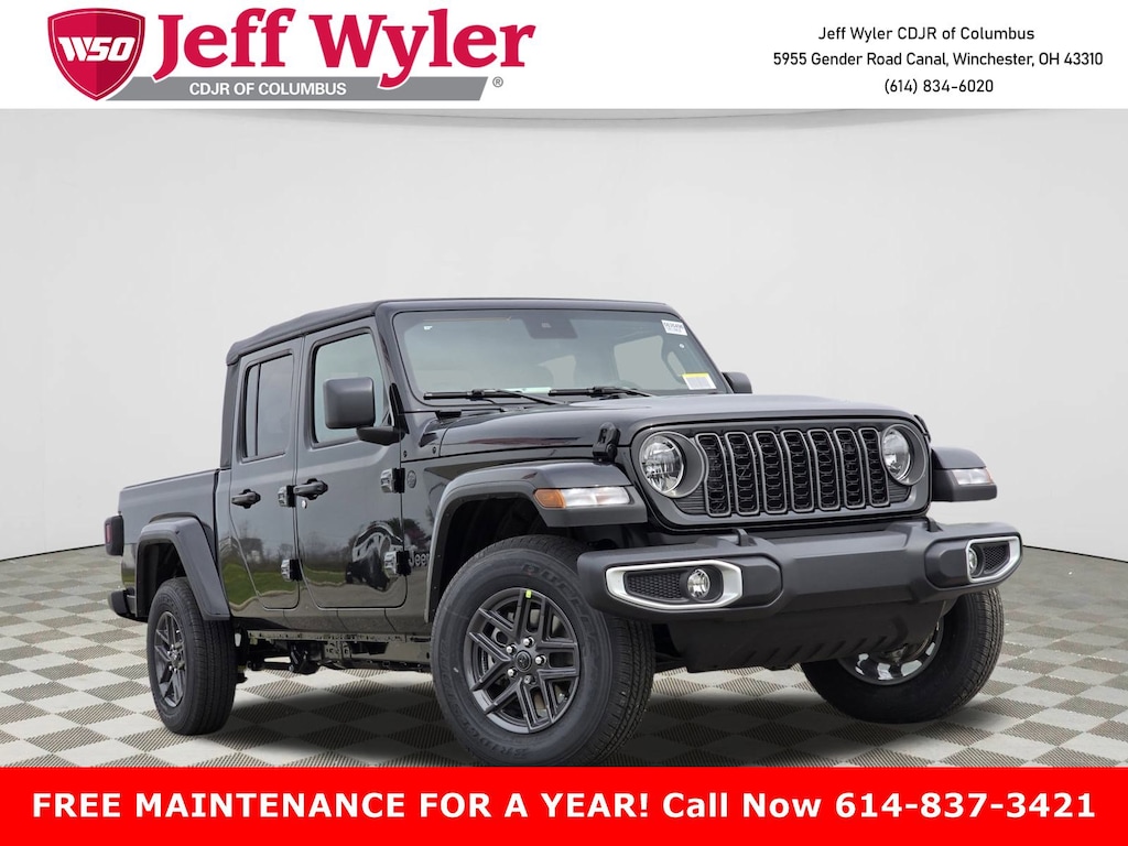 Jeff Wyler Columbus Auto Mall is delighted to offer this stunning 2025 Jeep Gladiator Sport in Black Clearcoat. Well equipped with: Convenience Group (Corning Gorilla Glass, Daytime Running Lamp System, Emergency/Assistance Call, Front Door Locks 2-Door Passive Entry, Heated Front Seats, Heated Steering Wheel, Remote Start System, and Universal Garage Door Opener), Quick Order Package 24S Sport S (Advanced Brake Assist, Automatic Headlamps, Deep Tint Sunscreen Windows, Enhanced Adaptive Cruise Control, Full Speed Forward Collision Warning Plus, Normal Duty Plus Suspension, Power Heated Mirrors, Premium Wrapped Steering Wheel, Security Alarm, Sun Visors w/Illuminated Vanity Mirrors, and Wheels: 17" x 7.5" Gray), 110 MPH Vehicle Max Speed Calibration, 12.3" Touchscreen Display, 3.73 Rear Axle Ratio, 4-Wheel Disc Brakes, 4G LTE Wi-Fi Hot Spot, 8 Speakers, ABS brakes, Air Conditioning, Alexa Built-In, AM/FM radio: SiriusXM, Apple CarPlay, Apple CarPlay/Android Auto, Brake assist, Cloth Low-Back Bucket Seats, Compass, Connectivity - US/Canada, Delay-off headlights, Driver door bin, Driver vanity mirror, Dual front impact airbags, Dual front side impact airbags, Electronic Stability Control, Front anti-roll bar, Front Bucket Seats, Front Center Armrest w/Storage, Front fog lights, Front License Plate Bracket, Front reading lights, Google Android Auto, Illuminated entry, Integrated roll-over protection, Low tire pressure warning, MOPAR All-Weather Slush Mats, Normal Duty Suspension, Occupant sensing airbag, Outside temperature display, Overhead airbag, Panic alarm, ParkView Rear Back-Up Camera, Passenger door bin, Passenger vanity mirror, Power steering, Power windows, Radio data system, Radio: Uconnect 5 w/12.3" Display, Rear anti-roll bar, Rear reading lights, Remote keyless entry, Speed control, Split folding rear seat, Steering wheel mounted audio controls, Tachometer, Telescoping steering wheel, Tilt steering wheel, Traction control, Trip computer, USB Host Flip, Variably intermittent wipers, Voltmeter, and Wheels: 17" x 7.5" Black Steel Styled.Wyler Family First Package Includes: NanoCure Appearance Protection: Exterior & Interior Chemical Sealant Applied to Protect Against Environmental Hazards (7 Year Warranty Coverage). Pulse- Rear End Collision Avoidance System Theft Deterrent Strategy gives you 5 Years of Coverage against vehicle theft, Offering up to a $5,000 benefit. Price does not include Tax, Title, License and Documentary Fee$2250 - 2025 National Bonus Cash . Exp. 11/03/2025 $500 - 2025 National 2025 Military Bonus Cash. Exp. 01/05/2026