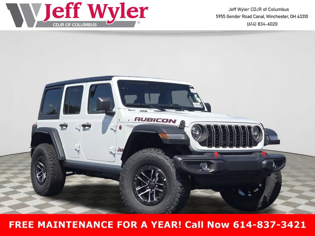 Jeff Wyler Columbus Auto Mall is proud to offer this superb-looking and fun 2025 Jeep Wrangler Rubicon in Bright White Clearcoat. Well equipped with: Quick Order Package 24R Rubicon, Xtreme 35" Tire Package (35" Tire Suspension, 97 MPH Vehicle Max Speed Calibration, Anti-Lock 4-Wheel Disc Perf Brakes, and Wheels: 17" x 8" Machined w/Black Pockets), 4-Wheel Disc Brakes, 4G LTE Wi-Fi Hot Spot, 8 Speakers, ABS brakes, Air Conditioning, Alloy wheels, AM/FM radio: SiriusXM, Apple CarPlay, Apple CarPlay/Android Auto, Automatic temperature control, Aux Battery, Auxiliary Switches, Black 3-Piece Hard Top, Brake assist, Class II Receiver Hitch, Cloth Low-Back Bucket Seats, Compass, Connectivity - US/Canada, Delay-off headlights, Driver door bin, Driver vanity mirror, Dual front impact airbags, Dual front side impact airbags, Electronic Stability Control, Emergency communication system: Jeep Connect, Freedom Panel Storage Bag, Front anti-roll bar, Front Bucket Seats, Front Center Armrest w/Storage, Front dual zone A/C, Front fog lights, Front License Plate Bracket (DISC), Front reading lights, Fully automatic headlights, Google Android Auto, Heated door mirrors, Illuminated entry, Integrated roll-over protection, Low tire pressure warning, MOPAR All-Weather Floor Mats, MOPAR Hinge-Gate Reinforcement, Non-Lock Fuel Cap w/o Discriminator, Occupant sensing airbag, Outside temperature display, Overhead airbag, Panic alarm, ParkView Rear Back-Up Camera, Passenger door bin, Passenger vanity mirror, Performance Suspension, Power door mirrors, Power steering, Power windows, Radio data system, Radio: Uconnect 5 w/12.3" Display, Rear anti-roll bar, Rear reading lights, Rear Window Defroster, Rear Window Wiper/Washer, Remote keyless entry, Security system, Speed control, Split folding rear seat, Steering wheel mounted audio controls, Stop-Start Dual Battery System, Tachometer, Telescoping steering wheel, Tilt steering wheel, Traction control, Trip computer, Variably intermittent wipers, Voltmeter, Wheel Flare Extensions, and Wheels: 17" x 7.5" Machined/Painted Black.Wyler Family First Package Includes: NanoCure Appearance Protection: Exterior & Interior Chemical Sealant Applied to Protect Against Environmental Hazards (7 Year Warranty Coverage). Pulse- Rear End Collision Avoidance System Theft Deterrent Strategy gives you 5 Years of Coverage against vehicle theft, Offering up to a $5,000 benefit. Price does not include Tax, Title, License and Documentary Fee$2500 - 2025 National Retail Bonus Cash . Exp. 11/03/2025 $500 - 2025 National 2025 Military Bonus Cash. Exp. 01/05/2026