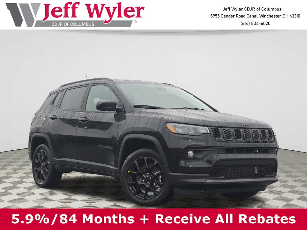 Jeff Wyler Columbus Auto Mall is pumped up to offer this outstanding-looking 2026 Jeep Compass Latitude in Diamond Black Crystal Pearlcoat. Well equipped with: Quick Order Package 29N Altitude (10.1" Touchscreen Display, Altitude Special Edition, Black Day Light Opening Moldings, Gloss Black Surround/Neutral Gray Rings, Neutral Gray Exterior Badging, Piano Black Interior Accents, Sliding Sun Visors with Illuminated Mirrors, and Wheels: 18" x 7" Gloss Black Painted Aluminum), 4WD, 17" x 7" Aluminum Wheels, 3.73 Final Drive Ratio, 4-Wheel Disc Brakes, 4G LTE Wi-Fi Hot Spot, 6 Speakers, ABS brakes, Air Conditioning, AM/FM radio: SiriusXM, Auto High-beam Headlights, Automatic temperature control, Bluetooth Handsfree Phone and Audio, Brake assist, Bumpers: body-color, Compass, Delay-off headlights, Driver door bin, Driver vanity mirror, Dual front impact airbags, Dual front side impact airbags, Electronic Stability Control, Emergency communication system: SiriusXM Guardian, Four wheel independent suspension, Front anti-roll bar, Front Bucket Seats, Front Center Armrest w/Storage, Front fog lights, Front License Plate Bracket, Front reading lights, Fully automatic headlights, Global Telematics Box Module, Heated door mirrors, Heated front seats, Heated steering wheel, Illuminated entry, Knee airbag, Leather Shift Knob, Leather steering wheel, Low tire pressure warning, MyFlexCare Service Plan, Occupant sensing airbag, Outside temperature display, Overhead airbag, Overhead console, Panic alarm, ParkView Rear Back-Up Camera, Passenger door bin, Passenger vanity mirror, Power door mirrors, Power steering, Power windows, Premium audio system: UConnect 5, Premium Cloth/Vinyl Bucket Seats, Radio: Uconnect 5 with 8.4" Display, Rear anti-roll bar, Rear seat center armrest, Rear window defroster, Rear window wiper, Remote keyless entry, Security system, SiriusXM Satellite Radio, Speed control, Split folding rear seat, Spoiler, Steering wheel mounted audio controls, Tachometer, Telescoping steering wheel, Tilt steering wheel, Traction control, Trip computer, and Variably intermittent wipers. 23/31 City/Highway MPGWyler Family First Package Includes: NanoCure Appearance Protection: Exterior & Interior Chemical Sealant Applied to Protect Against Environmental Hazards (7 Year Warranty Coverage). Pulse- Rear End Collision Avoidance System Theft Deterrent Strategy gives you 5 Years of Coverage against vehicle theft, Offering up to a $5,000 benefit. Price does not include Tax, Title, License and Documentary Fee$1000 - 2026 National Retail Bonus Cash . Exp. 04/30/2026 $1000 - 2026 National Stellantis Loyalty Bonus Cash . Exp. 04/30/2026 $500 - 2026 National 2026 Military Bonus Cash . Exp. 01/04/2027 $750 - 2026 Great Lakes BC Bonus Cash . Exp. 04/30/2026