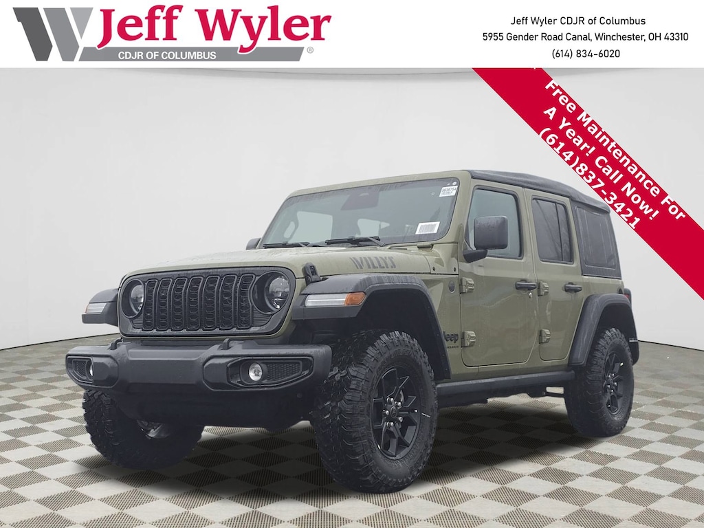 Adventure Awaits in This Brand-New 2026 Jeep Wrangler Willys!Experience the ultimate off-road machine with the legendary Wrangler's rugged capability and modern tech. This Willys edition features the powerful 270HP turbocharged 2.0L engine, Command-Trac 4WD system, and exclusive Willys styling with black painted wheels and hood decal. Safety You Can Trust: Advanced safety features include Forward Collision Warning-Plus, Advanced Brake Assist, ParkView backup camera, and electronic stability control for confident driving on any terrain. Tech That Connects: Stay connected with wireless Apple CarPlay/Android Auto, 12.3" touchscreen display, 4G LTE Wi-Fi hotspot, and Bluetooth streaming. The removable Sunrider soft top lets you enjoy open-air freedom at the touch of a button. Incredible Value: Take advantage of substantial manufacturer incentives including $5,074 Wyler Discount, $1,500 National Retail Bonus Cash, plus additional military and first responder bonuses totaling over $7,000 in savings! Why Choose Jeff Wyler Columbus? As Central Ohio's premier Jeep dealer with over 45 years of trusted service, we offer competitive pricing, personalized customer care, and the largest selection in the region. Plus, every vehicle includes our exclusive Wyler Family First Package with 7-year protection coverage. Price does not include Tax, Title, License and Documentary Fee$1000 - 2026 Great Lakes BC Loyalty Bonus Cash. Exp. 03/02/2026 $1000 - 2026 National Stellantis Loyalty Bonus Cash . Exp. 03/02/2026 $1500 - 2026 National Select Inventory Bonus Cash . Exp. 01/04/2027 $500 - 2026 National 2026 Military Bonus Cash . Exp. 01/04/2027 $2000 Stellantis Financial Bonus Cash. Must finance through SFS to receive discount.