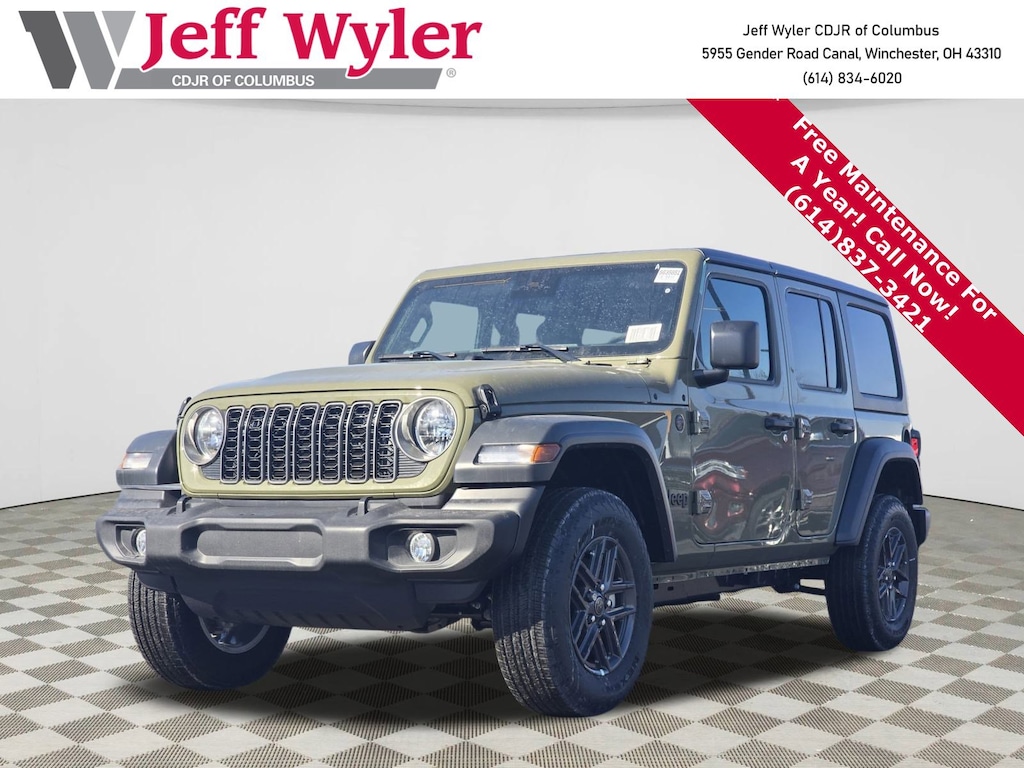 Jeff Wyler Columbus Auto Mall is honored to offer this good-looking and fun 2026 Jeep Wrangler Sport S in 41. Well equipped with: Convenience Group (2-Door Passive Entry, Front Door Locks, Air Conditioning with Auto Temp Control, Air Filtering, Cluster 7.0" TFT Color Display, Emergency/Assistance Call, Heated Front Seats, Heated Steering Wheel, and Universal Garage Door Opener), LED Headlamp and Fog Lamp Group (Front LED Fog Lamps and LED Premium Reflector Headlamps), Quick Order Package 24S Sport S (Advanced Brake Assist, Automatic Headlamps, Corning Gorilla Glass, Deep Tint Sunscreen Windows, Enhanced Adaptive Cruise Control, Full Speed Forward Collision Warning Plus, Power Heated Mirrors, Premium Wrapped Steering Wheel, Security Alarm, Sun Visors with Illuminated Vanity Mirrors, and Wheels: 17" x 7.5" Gray), 12.3" Touchscreen Display, 3.45 Overall Top Gear Ratio, 4-Wheel Disc Brakes, 4G LTE Wi-Fi Hot Spot, 8 Speakers, ABS brakes, Air Conditioning, AM/FM radio: SiriusXM with 360L, Apple CarPlay, Apple CarPlay/Android Auto, Aux Battery, Black 3-Piece Hard Top, Brake assist, Compass, Connectivity - US/Canada, Delay-off headlights, Driver door bin, Driver vanity mirror, Dual front impact airbags, Dual front side impact airbags, Electronic Stability Control, For More Info, Call 800-643-2112, Freedom Panel Storage Bag, Front anti-roll bar, Front Bucket Seats, Front Center Armrest w/Storage, Front fog lights, Front reading lights, Google Android Auto, Illuminated entry, Integrated Center Stack Radio, Integrated roll-over protection, Jeep Trail Rated Kit, Low tire pressure warning, MOPAR All-Weather Floor Mats, Myflexcare Service Plan, No Soft Top, Non-Lock Fuel Cap Without Discriminator, Normal Duty Suspension, Occupant sensing airbag, Outside temperature display, Overhead airbag, Panic alarm, ParkView Rear Back-Up Camera, Passenger door bin, Passenger vanity mirror, Power steering, Power windows, Radio data system, Radio: Uconnect 5 with 12.3" Display, Rear anti-roll bar, Rear reading lights, Rear Window Defroster, Rear Window Wiper/Washer, Remote keyless entry, SiriusXM Radio Service, SiriusXM with 360L, Speed control, Split folding rear seat, Steering wheel mounted audio controls, Stop-Start Dual Battery System, Tachometer, Telescoping steering wheel, Tilt steering wheel, Traction control, Trip computer, Variably intermittent wipers, and Wheels: 17" x 7.5" Black Steel Styled.Wyler Family First Package Includes: NanoCure Appearance Protection: Exterior & Interior Chemical Sealant Applied to Protect Against Environmental Hazards (7 Year Warranty Coverage). Pulse- Rear End Collision Avoidance System Theft Deterrent Strategy gives you 5 Years of Coverage against vehicle theft, Offering up to a $5,000 benefit. Price does not include Tax, Title, License and Documentary Fee$1000 - 2026 Great Lakes BC Loyalty Bonus Cash. Exp. 03/02/2026 $1000 - 2026 National Stellantis Loyalty Bonus Cash . Exp. 03/02/2026 $500 - 2026 National 2026 Military Bonus Cash . Exp. 01/04/2027 $2000 Stellantis Financial Bonus Cash. Must finance through SFS to receive discount.