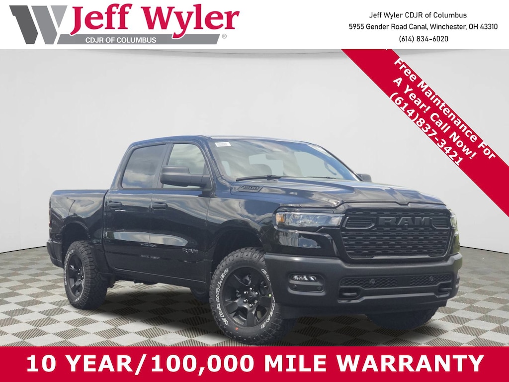 Unleash Power with the 2026 Ram 1500 Warlock! This brand-new pickup combines rugged capability with cutting-edge technology. The Hurricane 3.0L twin-turbo I-6 engine delivers an impressive 420HP, while the Warlock package adds aggressive styling with raised ride height, performance-tuned shocks, and distinctive black 18" wheels. Safety You Can Trust: Advanced safety features include Forward Collision Warning-Plus, Blind Spot Detection, Pedestrian Emergency Braking, and Active Lane Management System. The ParkView rear camera and Cross Path Detection keep you protected in any situation. Tech That Works: Stay connected with the 8.4" touchscreen, wireless Apple CarPlay/Android Auto, 4G LTE Wi-Fi hotspot, and Bluetooth streaming. Smart key with push-button start and remote start make every drive convenient. Exceptional Value: Take advantage of $4,000 in manufacturer incentives, including National Retail Consumer Cash and Military Bonus Cash for qualifying buyers. Why Choose Jeff Wyler Columbus? With over 45 years of trusted service in Central Ohio, we offer competitive pricing, personalized customer service, and the largest selection of new vehicles. Our Wyler Family First Package includes 7-year NanoCure protection and theft deterrent coverage up to $5,000. Price does not include Tax, Title, License and Documentary Fee$3500 - 2026 National Retail Consumer Cash . Exp. 03/02/2026 $500 - 2026 National 2026 Military Bonus Cash . Exp. 01/04/2027 $2000 Stellantis Financial Bonus Cash. Must finance through SFS to receive discount.