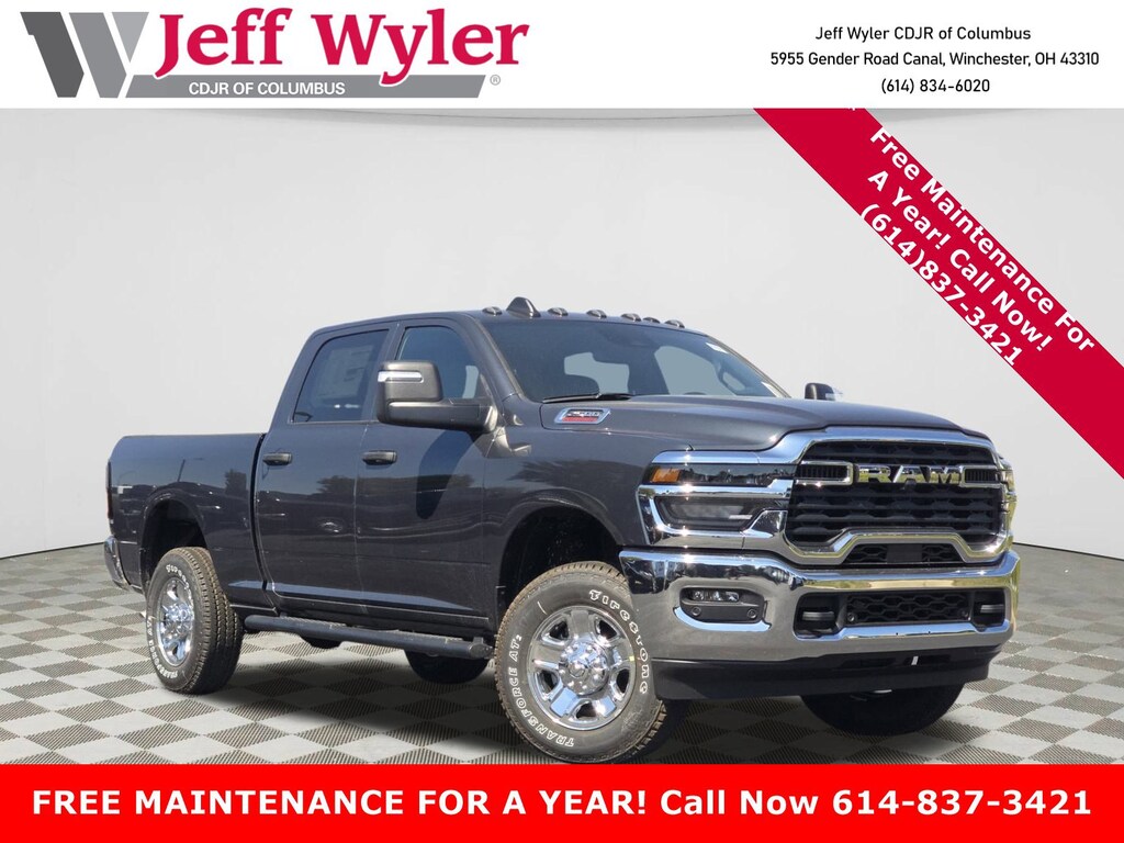 Introducing the Brand-New 2026 RAM 2500 Tradesman - Built tough for work and adventure with the legendary HEMI 6.4L V8 engine delivering 405 horsepower and cylinder deactivation for efficiency when you need it. Standout Features: 12" Uconnect touchscreen with wireless Apple CarPlay/Android Auto 4G LTE Wi-Fi hotspot keeps your crew connected Power-heated folding mirrors with running lights Dual-zone climate control for year-round comfort Smart key with push-button start Safety First: Advanced safety suite includes forward collision mitigation with pedestrian detection, ParkView backup camera, electronic stability control, and hill start assist to keep you confident on any terrain. The Deal: Take advantage of $1,000 National Bonus Cash plus additional military incentives available. This truck is competitively priced and ready for immediate delivery. Peace of Mind: Brand new with full manufacturer warranty, plus our exclusive Wyler Family First Package including 7-year NanoCure protection and 5-year theft coverage up to $5,000. Why Jeff Wyler Columbus? Over 45 years serving Central Ohio with personalized service, competitive pricing, and the largest selection in the region. We're your premier RAM dealership with thousands of satisfied customers. Price does not include Tax, Title, License and Documentary Fee$1000 - 2026 National Bonus Cash . Exp. 01/05/2026 $2000 - 2026 National Holiday Select Inventory Bonus Cash. Exp. 01/05/2026 $500 - 2026 National 2026 Military Bonus Cash . Exp. 01/05/2026