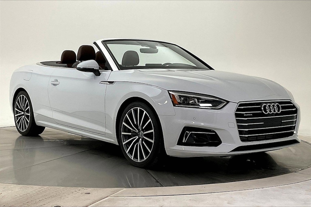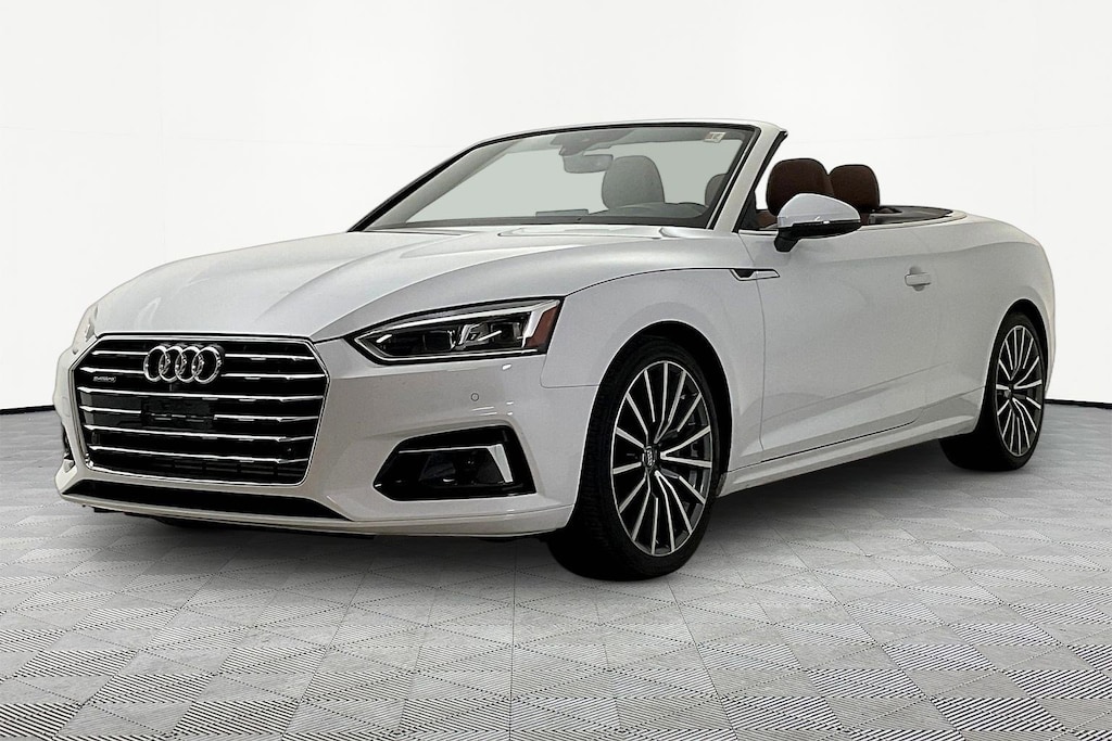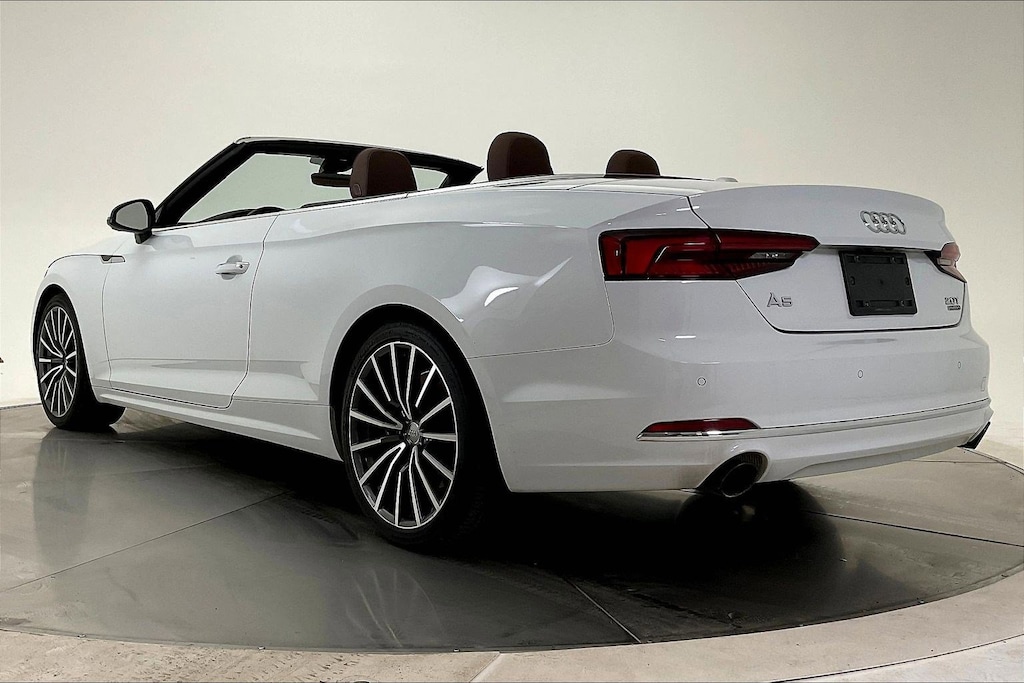 Glacier White Metallic 2018 Audi A5 2.0T Prestige quattro quattro 7-Speed Automatic S tronic 2.0L 4-Cylinder TFSI quattro, Nougat Brown w/Leather Seating Surfaces, 12.3" LCD Display Audi Virtual Cockpit, 19" Design line Wheel Package, Adaptive Cruise Control w/Traffic Jam Assist, Audi Active Lane Assist, Audi MMI Navigation Plus w/MMI Touch, Driver Assistance Package, High-Beam Assistant, Navigation Package, Sport Suspension, Traffic Sign Recognition, Wheels: 19" x 8.5" Multi-Spoke Design Bi-Color.