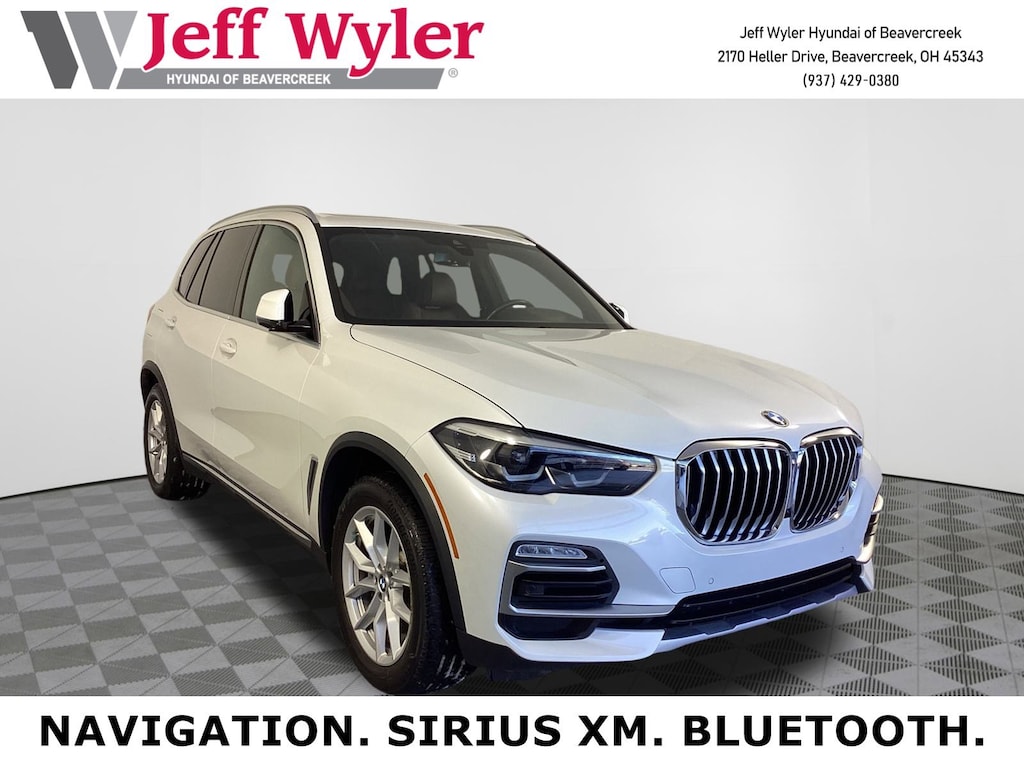 Clean CARFAX. Jeff Wyler Hyundai of Beavercreek is proud to offer this gorgeous 2021 BMW X5 xDrive40i in Mineral White Metallic. Well equipped with: Connected Package Pro, Premium Package 2 (DISC) (4-Zone Automatic Climate Control, Enhanced USB & Bluetooth, Gesture Control, Head-Up Display, Remote Engine Start, WiFi Hotspot, and Wireless Charging), 10 Speakers, 4-Wheel Disc Brakes, ABS brakes, Air Conditioning, Alloy wheels, AM/FM radio: SiriusXM with 360L, AM/FM Stereo, Apple CarPlay & Android Auto Compatibility, Apple CarPlay Compatibility, Auto High-beam Headlights, Auto tilt-away steering wheel, Auto-dimming door mirrors, Auto-dimming Rear-View mirror, Automatic temperature control, Axle Ratio: 3.385, BMW Assist eCall, BMW TeleServices, Brake assist, Bumpers: body-color, Compass, ConnectedDrive Services, Delay-off headlights, Driver door bin, Driver vanity mirror, Dual front impact airbags, Dual front side impact airbags, Electronic Stability Control, Emergency communication system: BMW Assist eCall, Exterior Parking Camera Rear, Four wheel independent suspension, Front & Rear Heated Seats, Front anti-roll bar, Front Bucket Seats, Front Center Armrest, Front dual zone A/C, Front fog lights, Front reading lights, Fully automatic headlights, Garage door transmitter, Genuine wood console insert, Genuine wood dashboard insert, Genuine wood door panel insert, harman/kardon Surround Sound System (DISC), Head restraints memory, Heated door mirrors, Heated Front Seats, Heated front seats, Heated Front Seats w/Armrests & Steering Wheel, Hi-Fi Sound System, Illuminated entry, Knee airbag, Leather Shift Knob, Leather steering wheel, Live Cockpit Pro w/Navigation, Low tire pressure warning, Lumbar Support, Memory seat, Navigation System, Occupant sensing airbag, Outside temperature display, Overhead airbag, Panic alarm, Passenger door bin, Passenger vanity mirror, Power adjustable front head restraints, Power door mirrors, Power driver seat, Power Front Seats, Power moonroof, Power passenger seat, Power steering, Power windows, Radio data system, Rain sensing wipers, Rear air conditioning, Rear anti-roll bar, Rear reading lights, Rear seat center armrest, Rear window defroster, Rear window wiper, Remote keyless entry, Roof rack: rails only, Security system, SensaTec Upholstery, SiriusXM Satellite Radio w/360L, Speed control, Speed-sensing steering, Speed-Sensitive Wipers, Split folding rear seat, Spoiler, Sport Seats, Sport steering wheel, Steering wheel memory, Steering wheel mounted audio controls, Tachometer, Telescoping steering wheel, Tilt steering wheel, Traction control, Trip computer, Turn signal indicator mirrors, Variably intermittent wipers, and Wheels: 19" x 9" V-Spoke (Style 734)Come see the excitement at Jeff Wyler Hyundai of Beavercreek! Visit us online at www.jeffwylerhyundaiofbeavercreek.com Proudly Serving: Cincinnati, Dayton, Centeville, Ketttering, Moraine,Beavercreek, Xenia,Oakwood, Trotwood, Vandalia, Kettering, Wright Patterson, Riverside, Engelwood, Miamisburg, Huber Heights, Springboro, Brookville, Fairborn, West Carrollton, Yellow Springs, Bellbrook, Springfield Columbus, Hamilton, West Chester, Monroe, Fairfield. PROUDLY SERVING: CINCINNATI, DAYTON,COLUMBUS, LOUISVILLE, LEXINGTON, INDIANAPOLIS,HAMILTON, FLORENCE, ALEXANDRIA, BEAVERCREEK, SPRINGDALE, WEST CHESTER, MONROE, FAIRFIELD, KENWOOD, NEWPORT AND ALL OF GREATER CINCINNATI OHIO, INDIANA, AND NORTHERN KENTUCKY.