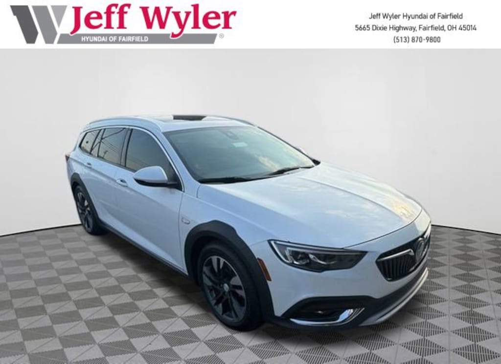 CARFAX One-Owner. Clean CARFAX. Jeff Wyler Hyundai of Fairfield is pleased to offer this attractive 2019 Buick Regal TourX Essence in White Frost Tricoat. Well equipped with: Buick Interior Protection Package (LPO) (All-Weather Floor Mats and Cargo Tray), Driver Confidence Package I (4-Way Power Driver Lumbar Seat Adjuster, 4-Way Power Front Passenger Lumbar Seat Adjuster, Cornering Lamps, Headlamp Control w/Automatic Leveling System, Lane Change Alert w/Side Blind Zone Alert, LED Headlamps, Power-Adjustable Heated Outside Mirrors, Rear Cross-Traffic Alert, Rear Storage Area Cargo Management, Ultrasonic Rear Park Assist w/Audible Warning, and Wireless Charging), Driver Confidence Package II (Adaptive Cruise Control w/Full Speed Range, Following Distance Indicator, Forward Automatic Braking, Forward Collision Alert, Front Pedestrian Braking, and Lane Keep Assist), Memory Package, Preferred Equipment Group 1SL, Sights & Sounds Package (HD Radio Audio System and Radio: Buick Infotainment w/AM/FM Stereo & Nav), Android Auto, Apple CarPlay, CALL NOW FOR YOUR VIP APPOINTMENT 513-870-9800, FULLY SERVICED w/RECORDS, GUARANTEED FINANCING!! NO MATTER YOUR SITUATION WE CAN GET AN APPROVAL!!, THE #1 Volume dealer in the region! Come see why for yourself Today!!, WE PAY MORE FOR YOUR TRADE!!, 2-Way Adjustable (Up/Down) Front Head Restraints, 2-Way Power Driver Lumbar Seat Adjuster, 2-Way Power Front Passenger Lumbar Seat Adjuster, 4-Wheel Disc Brakes, 7 Speakers, 8-Way Power Driver Seat Adjuster w/Recline, 8-Way Power Passenger Seat Adjuster, ABS brakes, Air Conditioning, Alloy wheels, AM/FM radio: SiriusXM, Apple CarPlay/Android Auto, Auto-dimming Rear-View mirror, Automatic temperature control, Brake assist, Bumpers: body-color, Compass, Delay-off headlights, Driver door bin, Driver vanity mirror, Dual front impact airbags, Dual front side impact airbags, Electronic Stability Control, Emergency communication system: OnStar and Buick connected services capable, Enhanced 7-Speaker Audio System Feature, Exterior Parking Camera Rear, First Aid Kit (LPO), Four wheel independent suspension, Front anti-roll bar, Front Bucket Seats, Front Center Armrest, Front dual zone A/C, Front fog lights, Front reading lights, Fully automatic headlights, Garage door transmitter, Heated door mirrors, Heated Driver & Front Passenger Seats, Heated front seats, Heated steering wheel, Illuminated entry, Knee airbag, Leather-Appointed Seat Trim, Low tire pressure warning, Occupant sensing airbag, Outside temperature display, Overhead airbag, Overhead console, Panic alarm, Passenger door bin, Passenger vanity mirror, Power door mirrors, Power driver seat, Power Liftgate, Power passenger seat, Power Sliding Panoramic Moonroof w/Sunshade, Power steering, Power windows, Radio data system, Radio: Buick Infotainment w/AM/FM/SiriusXM Stereo, Rear anti-roll bar, Rear reading lights, Rear seat center armrest, Rear side impact airbag, Rear window defroster, Rear window wiper, Remote keyless entry, Roof rack: rails only, Security system, SiriusXM Radio, Speed control, Speed-sensing steering, Split folding rear seat, Spoiler, Steering wheel mounted audio controls, Tachometer, Telescoping steering wheel, Tilt steering wheel, Traction control, Trip computer, Variably intermittent wipers, Voltmeter, and Wheels: 18" Aluminum w/Machined Face. TO CHECK ON THE AVAILABILITY OF THIS VEHICLE REACH OUT TO ONE OF OUR TEAM MEMBERS!! ALSO SHOP ONLINE AT https://www.jeffwylerhyundaioffairfield.com/ Proudly Serving: Cincinnati, Dayton, Columbus, Louisville, Lexington, Indianapolis, Hamilton, Florence, Alexandria, Beavercreek, Springdale, West Chester, Monroe, Fairfield, Kenwood, Newport and all of greater Cincinnati Ohio, Indiana, and Northern Kentucky.