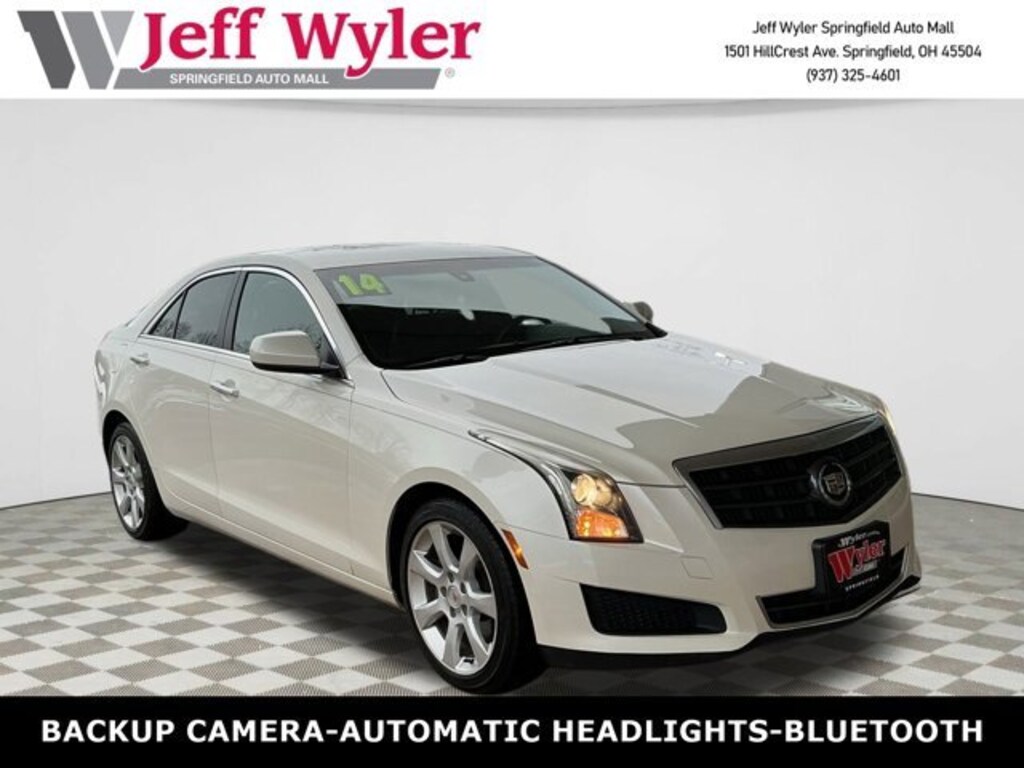 Jeff Wyler Springfield Auto Mall is pleased to offer this fantastic-looking 2014 Cadillac ATS 2.0L Turbo in White Diamond Tricoat. Well equipped with: Cadillac User Experience (CUE) & Surround Sound (Bluetooth For Phone/Audio, Bose Premium Surround Sound 10-Speaker System, Radio: CUE Information & Media Control System, Rear Vision Camera, and SiriusXM & HD Audio System), Standard Equipment Group 1SC (4-Wheel Disc Antilock Brembo Fr Performance Brakes), 17 x 8 Premium Painted Aluminum Wheels, 4-Wheel Disc Brakes, 7 Speakers, ABS brakes, Air Conditioning, Alloy wheels, AM/FM radio: SiriusXM, AM/FM Stereo, Automatic temperature control, Bose Premium 7-Speaker Audio System Feature, Brake assist, Bumpers: body-color, Compass, Delay-off headlights, Driver door bin, Driver vanity mirror, Dual front impact airbags, Dual front side impact airbags, Electronic Stability Control, Emergency communication system: OnStar Directions & Connections, Four wheel independent suspension, Front anti-roll bar, Front Bucket Seats, Front Center Armrest, Front dual zone A/C, Front License Plate Bracket, Front reading lights, Fully automatic headlights, Heated door mirrors, Illuminated entry, Knee airbag, Leather Shift Knob, Leatherette Seating Surfaces, Low tire pressure warning, Occupant sensing airbag, Outside temperature display, Overhead airbag, Overhead console, Panic alarm, Passenger door bin, Passenger vanity mirror, Power door mirrors, Power driver seat, Power passenger seat, Power steering, Power windows, Radio data system, Rear anti-roll bar, Rear reading lights, Rear seat center armrest, Rear Spoiler, Rear window defroster, Remote keyless entry, SiriusXM Satellite Radio, Speed control, Speed-sensing steering, Steering wheel mounted audio controls, Tachometer, Telescoping steering wheel, Tilt steering wheel, Traction control, Trip computer, Variably intermittent wipers, and Voltmeter. Awards:* 2014 KBB.com 10 Best Luxury Cars Under $40,000 Reviews:* The Cadillac ATS is a first: an entry-luxury sports sedan with rear-wheel drive and great performance from an American manufacturer. If that appeals to you, head down to the local Cadillac store and give it a try. Source: KBB.com* Excellent handling; fun-to-drive character with either 2.0-liter turbo or V6 engine; cutting-edge interior design. Source: EdmundsAsk about available certifications. Used vehicles 10 years of age or newer with less than 100,000 miles are eligible for the Wyler Assurance Program, but eligible vehicles must pass our reconditioning process and multi-point inspection. Provided the vehicle passes inspection, vehicles will be eligible for the 6 month/6,000 mile limited warranty. The 6 month/6,000 mile limited warranty is NOT available on AS-IS vehicles, wholesale vehicles, lease buyback/pass-thru vehicles or un-inspected vehicles. Note that this program can also apply to vehicles where the remaining factory coverage is less than 6 months or 6,000 miles. Please check the Federal Trade Commission (FTC) Buyers guide on the vehicle for full details as to whether or not warranty coverage may apply. Contact Dealer for additional details. The Wyler Assurance 6 month/6,000 Mile limited warranty ends 6 months from the date of the Retail Purchase Agreement (BUYERS ORDER) or when the vehicle's odometer registers 6,000 additional miles to the mileage listed on the BUYERS ORDER, whichever comes first. Your Deductible - The warranty holder on your contract pays the first $100 of each covered repair.
