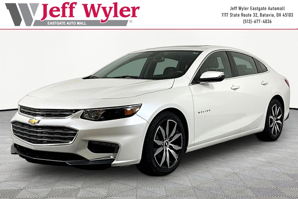 Jeff Wyler Eastgate Auto Mall is pleased to offer this charming-looking 2017 Chevrolet Malibu LT in Iridescent Pearl Tricoat. Well equipped with: Convenience & Technology Package (120-Volt Power Outlet, 18" Aluminum Wheels, 3-Spoke Leather-Wrapped Steering Wheel, Driver Information System w/Color Display, Dual USB Charging-Only Ports, Inside Rear-View Auto-Dimming Mirror, Leather Wrapped Shift Knob, Radio: Chevrolet MyLink AM/FM Stereo w/8" Screen, Remote Vehicle Starter System, and Wireless Charging For Devices), Leather Package (6-Way Power Front Passenger Seat Adjuster, Bose Premium 9-Speaker System, Front Passenger Power Lumbar Seat Adjuster, Heated Driver & Front Passenger Seats, and Leather Appointed Seat Trim), Preferred Equipment Group 1LT, Sun and Wheels Package (DISC) (Power Tilt Sliding Sunroof and Universal Home Remote), 17" Aluminum Wheels, 4-Wheel Disc Brakes, 6 Speakers, 8-Way Power Driver Seat Adjuster, ABS brakes, Air Conditioning, Alloy wheels, AM/FM radio: SiriusXM, Apple CarPlay/Android Auto, Brake assist, Bumpers: body-color, Compass, Delay-off headlights, Driver door bin, Driver vanity mirror, Dual front impact airbags, Dual front side impact airbags, Electronic Stability Control, Emergency communication system, Exterior Parking Camera Rear, Four wheel independent suspension, Front anti-roll bar, Front Bucket Seats, Front Center Armrest w/Storage, Front License Plate Bracket, Front Passenger 6-Way Manual Seat Adjuster, Front reading lights, Fully automatic headlights, Heated door mirrors, Illuminated entry, Knee airbag, Low tire pressure warning, Occupant sensing airbag, Outside temperature display, Overhead airbag, Overhead console, Panic alarm, Passenger door bin, Passenger vanity mirror, Power door mirrors, Power Driver Lumbar Control Seat Adjuster, Power driver seat, Power steering, Power windows, Premium Cloth Seat Trim, Radio data system, Radio: Chevrolet MyLink AM/FM Stereo w/7" Screen, Radio: Chevrolet MyLink AM/FM Stereo w/Navigation, Rear anti-roll bar, Rear reading lights, Rear seat center armrest, Rear side impact airbag, Rear window defroster, Remote keyless entry, Security system, SiriusXM Satellite Radio, Speed control, Split folding rear seat, Steering wheel mounted audio controls, Tachometer, Telescoping steering wheel, Tilt steering wheel, Traction control, Trip computer, Turn signal indicator mirrors, and Variably intermittent wipers. Clean CARFAX. Reviews: * Spacious interior with tall-person-friendly front seats; sporty handling around turns; hybrid version is respectably quick to accelerate; strong brakes; responsive and intuitive 8-inch touchscreen interface with sharp graphics. Source: EdmundsAwards: * 2017 IIHS Top Safety Pick with optional front crash prevention * 2017 KBB.com 10 Best Sedans Under $25,000 * 2017 KBB.com 10 Most Comfortable Cars Under $30,000 * 2017 KBB.com Best Family Sedans * 2017 KBB.com 10 Most Awarded Brands Ask about available certifications. Used vehicles 10 years of age or newer with less than 100,000 miles are eligible for the Wyler Assurance Program, but eligible vehicles must pass our reconditioning process and multi-point inspection. Provided the vehicle passes inspection, vehicles will be eligible for the 6 month/6,000 mile limited warranty. The 6 month/6,000 mile limited warranty is NOT available on AS-IS vehicles, wholesale vehicles, lease buyback/pass-thru vehicles or un-inspected vehicles. Note that this program can also apply to vehicles where the remaining factory coverage is less than 6 months or 6,000 miles. Please check the Federal Trade Commission (FTC) Buyers guide on the vehicle for full details as to whether or not warranty coverage may apply. Contact Dealer for additional details. The Wyler Assurance 6 month/6,000 Mile limited warranty ends 6 months from the date of the Retail Purchase Agreement (BUYERS ORDER) or when the vehicle's odometer registers 6,000 additional miles to the mileage listed on the BUYERS ORDER, whichever