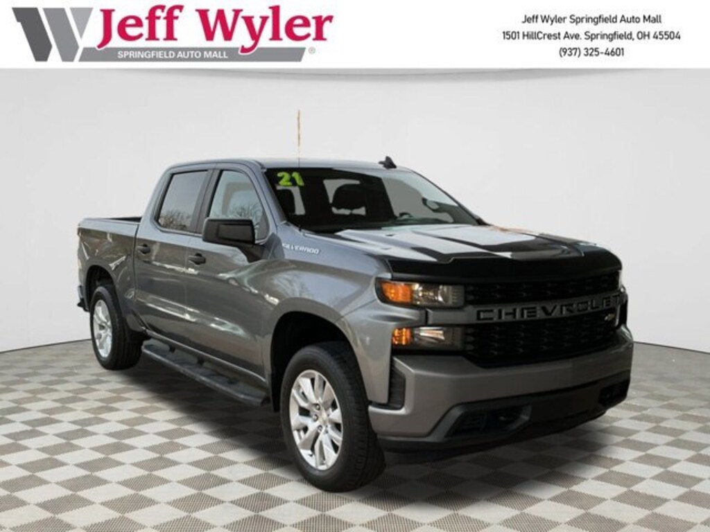 Jeff Wyler Springfield Auto Mall is proud to offer this superb-looking 2021 Chevrolet Silverado 1500 Custom in Satin Steel Metallic. Well equipped with: Custom Convenience Package (Electric Rear-Window Defogger, EZ Lift Power Lock & Release Tailgate, LED Cargo Area Lighting, Remote Vehicle Starter System, and Theft Deterrent System (Unauthorized Entry)), Custom Value Package, Infotainment Package (4G LTE Wi-Fi Hot Spot Capable, Chevrolet Connected Access Capable, OnStar & Chevrolet Connected Services Capable, and SiriusXM Radio), Preferred Equipment Group 1CX (170 Amp Alternator, 3.5 Diagonal Monochromatic Display, Bluetooth® For Phone, Body Color Grille, Color-Keyed Carpeting Floor Covering, Compass, Deep-Tinted Glass, Electronic Cruise Control, Front Frame-Mounted Black Recovery Hooks, Front Rubberized Vinyl Floor Mats, Manual Tilt Wheel Steering Column, Power Door Locks, Power Front Windows w/Driver Express Up/Down, Power Front Windows w/Passenger Express Down, Power Rear Windows w/Express Down, Rear 60/40 Folding Bench Seat (Folds Up), Rear Rubberized-Vinyl Floor Mats, Remote Keyless Entry, and Standard Tailgate), Trailering Package (Hitch Guidance), 120-Volt Bed Mounted Power Outlet, 120-Volt Instrument Panel Power Outlet, 220 Amp Alternator, 3.42 Rear Axle Ratio, 4-Wheel Disc Brakes, 40/20/40 Front Split Bench Seat, 6 Speakers, ABS brakes, Air Conditioning, Alloy wheels, AM/FM radio: SiriusXM, Apple CarPlay/Android Auto, Automatic Stop/Start, Brake assist, Bumpers: body-color, Cloth Seat Trim, Delay-off headlights, Driver door bin, Driver vanity mirror, Dual front impact airbags, Dual front side impact airbags, Electronic Stability Control, Front anti-roll bar, Front Center Armrest w/Storage, Front reading lights, Front wheel independent suspension, Fully automatic headlights, Heated door mirrors, Heavy Duty Suspension, Illuminated entry, Low tire pressure warning, Occupant sensing airbag, Outside temperature display, Overhead airbag, Overhead console, Panic alarm, Passenger door bin, Passenger vanity mirror, Polished Exhaust Tip, Power door mirrors, Power steering, Power windows, Premium audio system: Chevrolet Infotainment 3, Radio data system, Radio: Chevrolet Infotainment 3 System, Rear reading lights, Rear step bumper, Rear window defroster, Remote keyless entry, Security system, Single-Zone Manual/Semi-Automatic Air Conditioning, Speed control, Speed-sensing steering, Split folding rear seat, Tachometer, Tilt steering wheel, Traction control, Trip computer, Variably intermittent wipers, Voltmeter, and Wheels: 20 x 9 Bright Silver Painted Aluminum. Ask about available certifications. Used vehicles 10 years of age or newer with less than 100,000 miles are eligible for the Wyler Assurance Program, but eligible vehicles must pass our reconditioning process and multi-point inspection. Provided the vehicle passes inspection, vehicles will be eligible for the 6 month/6,000 mile limited warranty. The 6 month/6,000 mile limited warranty is NOT available on AS-IS vehicles, wholesale vehicles, lease buyback/pass-thru vehicles or un-inspected vehicles. Note that this program can also apply to vehicles where the remaining factory coverage is less than 6 months or 6,000 miles. Please check the Federal Trade Commission (FTC) Buyers guide on the vehicle for full details as to whether or not warranty coverage may apply. Contact Dealer for additional details. The Wyler Assurance 6 month/6,000 Mile limited warranty ends 6 months from the date of the Retail Purchase Agreement (BUYERS ORDER) or when the vehicle's odometer registers 6,000 additional miles to the mileage listed on the BUYERS ORDER, whichever comes first. Your Deductible - The warranty holder on your contract pays the first $100 of each covered repair.