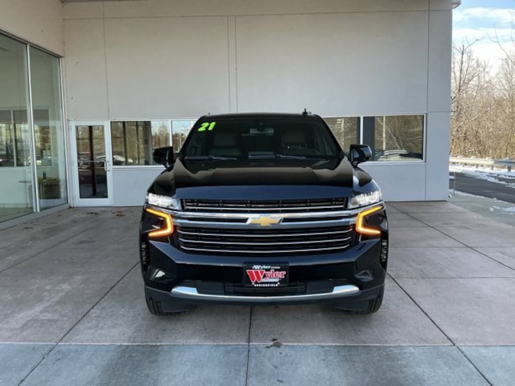 Jeff Wyler Springfield Auto Mall is honored to offer this gorgeous 2021 Chevrolet Tahoe LT in Black. Well equipped with: License Plate Front Mounting Package, Preferred Equipment Group 1LT (1st & 2nd Row Color-Keyed Carpeted Floor Mats, 2 USB Data Ports, Auto-Dimming Inside Rear-View Mirror, Bright Front & Rear Door Sill Plates, Color-Keyed Carpeting Floor Covering, Driver & Front Outboard Passenger Airbags, Floor Console w/Storage Area, Hands-Free Rear Power Programmable Liftgate, HD Radio, Infotainment Display, Leather-Wrapped Steering Wheel, LED Daytime Running Lamps, Memory Settings for Driver, Remote Start, SiriusXM Radio w/360L, and Universal Home Remote), Rear Media & Nav Package (Radio: Chevrolet Infotainment 3 Premium System, Rear Seat Media System, and SiriusXM NavTraffic), 10-Way Power Driver & Passenger Seat Adjusters, 3.23 Rear Axle Ratio, 3rd row seats: split-bench, 4-Wheel Disc Brakes, 9 Speakers, ABS brakes, Air Conditioning, Alloy wheels, AM/FM radio: SiriusXM with 360L, Apple CarPlay/Android Auto, Auto High-beam Headlights, Auto-dimming Rear-View mirror, Automatic temperature control, Bose 9-Speaker Stereo Audio System Feature, Brake assist, Bumpers: body-color, Compass, Delay-off headlights, Driver door bin, Driver vanity mirror, Dual front impact airbags, Dual front side impact airbags, Dual-Pane Power Panoramic Sunroof, Electronic Stability Control, Emergency communication system: OnStar and Chevrolet connected services capable, Four wheel independent suspension, Front anti-roll bar, Front Bucket Seats, Front Center Armrest, Front dual zone A/C, Front High-Back Reclining Bucket Seats, Front reading lights, Fully automatic headlights, Garage door transmitter, Heated door mirrors, Heated Driver & Front Passenger Seats, Heated front seats, Illuminated entry, Leather Seat Trim, Leather steering wheel, Low tire pressure warning, Memory seat, Not Equipped w/Automatic Stop/Start, Not Equipped w/Steering Column Lock, Not Equipped w/Wireless Charging, Occupant sensing airbag, Outside temperature display, Overhead airbag, Overhead console, Panic alarm, Passenger door bin, Passenger vanity mirror, Power door mirrors, Power driver seat, Power Liftgate, Power passenger seat, Power steering, Power windows, Premium audio system: Chevrolet Infotainment 3, Premium Smooth Ride Suspension, Radio: Chevrolet Infotainment 3 Plus System, Rain sensing wipers, Rear air conditioning, Rear anti-roll bar, Rear reading lights, Rear seat center armrest, Rear window defroster, Rear window wiper, Remote keyless entry, Roof rack: rails only, Security system, Speed control, Speed-sensing steering, Split folding rear seat, Spoiler, Steering wheel mounted audio controls, Tachometer, Telescoping steering wheel, Tilt steering wheel, Traction control, Trip computer, Variably intermittent wipers, Voltmeter, Wheels: 18 x 8.5 Bright Silver Painted Aluminum, and Wheels: 20 x 9 Painted Aluminum. Awards: