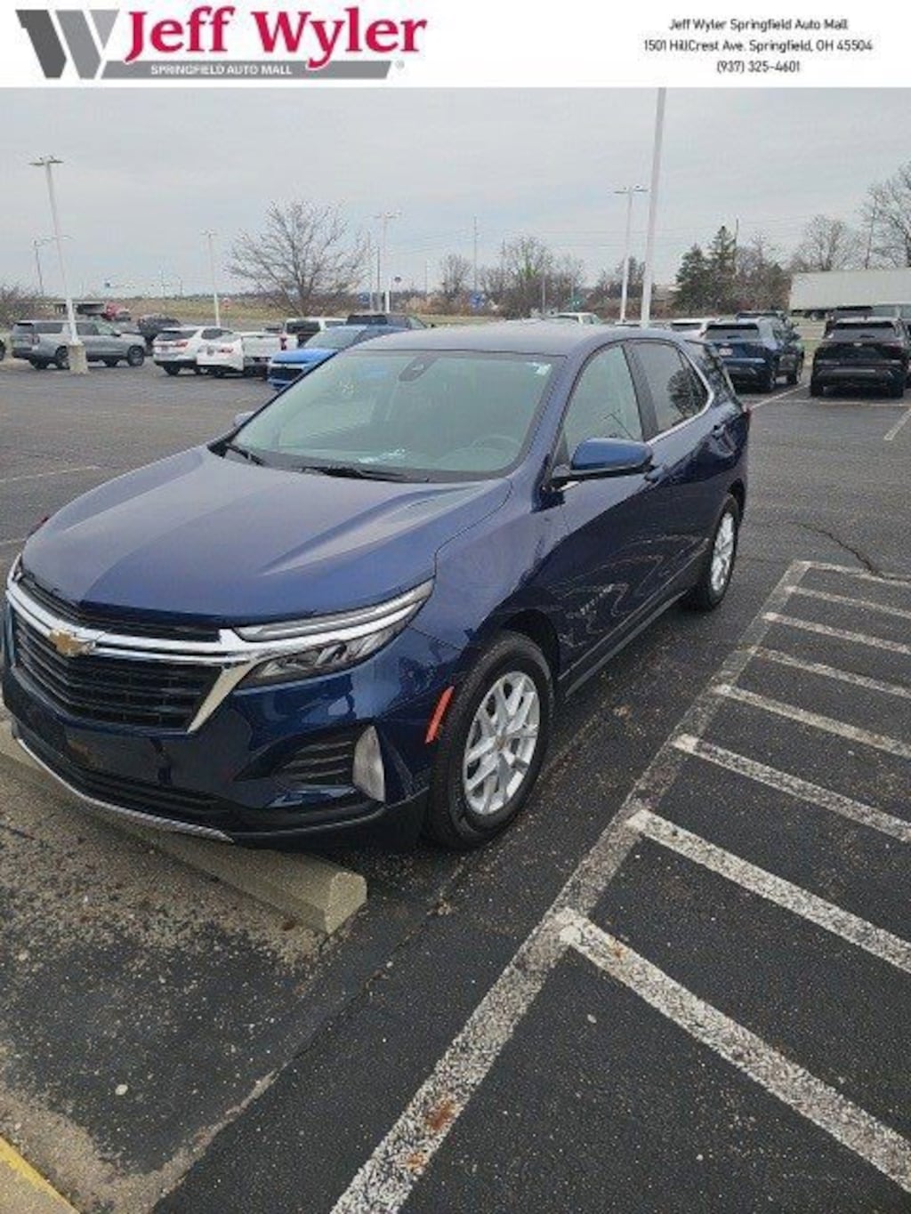 Jeff Wyler Springfield Auto Mall is honored to offer this great 2022 Chevrolet Equinox LT in Blue Glow Metallic. Well equipped with: Confidence & Convenience Package, Driver Confidence II Package (Front & Rear Park Assist, Lane Change Alert w/Side Blind Zone Alert, and Rear Cross Traffic Alert), Driver Convenience Package (3-Spoke Leather-Wrapped Steering Wheel, Dual Zone Automatic Climate Control, Heated Driver & Front Passenger Seats, Rear Power Liftgate, and Remote Start), Preferred Equipment Group 1LT, 17 Aluminum Wheels, 2 Rear USB Charging-Only Ports, 2 USB Ports & Auxiliary Input Jack, 2-Way Power Driver Lumbar Control Seat Adjuster, 3.50 Final Drive Axle Ratio, 4-Wheel Disc Brakes, 6 Speaker Audio System Feature, 6 Speakers, 8-Way Power Driver Seat Adjuster, ABS brakes, Air Conditioning, Alloy wheels, AM/FM radio: SiriusXM, Auto High-beam Headlights, Bluetooth® For Phone, Brake assist, Bumpers: body-color, Compass, Delay-off headlights, Driver door bin, Driver vanity mirror, Dual front impact airbags, Dual front side impact airbags, Electronic Stability Control, Emergency communication system: OnStar and Chevrolet connected services capable, Four wheel independent suspension, Front anti-roll bar, Front Bucket Seats, Front Center Armrest, Front Passenger 4-Way Manual Seat Adjuster, Front reading lights, Fully automatic headlights, Heated door mirrors, Illuminated entry, Low tire pressure warning, Occupant sensing airbag, Outside temperature display, Overhead airbag, Overhead console, Panic alarm, Passenger door bin, Passenger vanity mirror, Power door mirrors, Power driver seat, Power steering, Power windows, Premium audio system: Chevrolet Infotainment 3, Premium Cloth Seat Trim, Radio data system, Radio: Chevrolet Infotainment 3 System w/AM/FM, Rear anti-roll bar, Rear reading lights, Rear seat center armrest, Rear window defroster, Rear window wiper, Remote keyless entry, Security system, SiriusXM Radio, Speed control, Speed-sensing steering, Split folding rear seat, Spoiler, Steering wheel mounted audio controls, Tachometer, Telescoping steering wheel, Tilt steering wheel, Traction control, Trip computer, Variably intermittent wipers, and Wireless Apple CarPlay/Wireless Android Auto. Ask about available certifications. Used vehicles 10 years of age or newer with less than 100,000 miles are eligible for the Wyler Assurance Program, but eligible vehicles must pass our reconditioning process and multi-point inspection. Provided the vehicle passes inspection, vehicles will be eligible for the 6 month/6,000 mile limited warranty. The 6 month/6,000 mile limited warranty is NOT available on AS-IS vehicles, wholesale vehicles, lease buyback/pass-thru vehicles or un-inspected vehicles. Note that this program can also apply to vehicles where the remaining factory coverage is less than 6 months or 6,000 miles. Please check the Federal Trade Commission (FTC) Buyers guide on the vehicle for full details as to whether or not warranty coverage may apply. Contact Dealer for additional details. The Wyler Assurance 6 month/6,000 Mile limited warranty ends 6 months from the date of the Retail Purchase Agreement (BUYERS ORDER) or when the vehicle's odometer registers 6,000 additional miles to the mileage listed on the BUYERS ORDER, whichever comes first. Your Deductible - The warranty holder on your contract pays the first $100 of each covered repair.