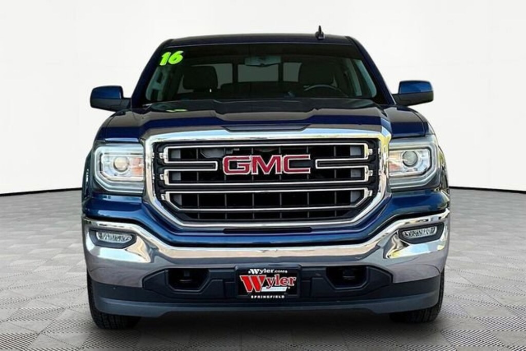 Jeff Wyler Springfield Auto Mall is delighted to offer this handsome 2016 GMC Sierra 1500 SLE in Stone Blue Metallic. Well equipped with: Preferred Equipment Group 3SA (150 Amp Alternator, 2-Speed Active Electronic AutoTrac Transfer Case, 4.2 Diagonal Color Display Driver Info Center, Body Color Bodyside Moldings, Body Color Door Handles, Body Color Power Adjustable Heated Outside Mirrors, Body-Color Mirror Caps, Color-Keyed Carpeting w/Rubberized Vinyl Floor Mats, Deep-Tinted Glass, Driver & Front Passenger Illuminated Vanity Mirrors, EZ Lift & Lower Tailgate, Front Frame-Mounted Black Recovery Hooks, Heavy-Duty Rear Locking Differential, Leather Wrapped Steering Wheel w/Cruise Controls, LED Cargo Box Lighting, OnStar 6 Month Guidance Plan, OnStar w/4G LTE, Power Windows w/Driver Express Up & Down, Rear 60/40 Folding Bench Seat (Folds Up), Rear Vision Camera w/Dynamic Guide Lines, Rear Wheelhouse Liners, Remote Keyless Entry, Single Slot CD/MP3 Player, Single-Zone Air Conditioning, and Steering Wheel Audio Controls), SLE Convenience Package (Power Adjustable Pedals, Power Sliding Rear Window w/Defogger, and Ultrasonic Rear Park Assist), SLE Value Package (10-Way Power Driver's Seat Adjuster, 110-Volt AC Power Outlet, Dual-Zone Automatic Climate Control, Electric Rear-Window Defogger, Remote Vehicle Starter System, Theft Deterrent System (Unauthorized Entry), Thin Profile LED Front Fog Lamps, and Universal Home Remote), Trailering Equipment, 4-Wheel Disc Brakes, 40/20/40 Front Split Bench Seat, 6 Speakers, 6-Speaker Audio System, 720 CCA/80 Amp-hr Maintenance Free HD Battery, ABS brakes, Air Conditioning, Alloy wheels, AM/FM radio: SiriusXM, Auxiliary External Transmission Oil Cooler, Bodyside moldings, Brake assist, Bumpers: chrome, CD player, Cloth Seat Trim, Compass, Delay-off headlights, Driver door bin, Driver vanity mirror, Dual front impact airbags, Dual front side impact airbags, Electronic Stability Control, Emergency communication system: OnStar Guidance, Exterior Parking Camera Rear, Front anti-roll bar, Front Center Armrest w/Storage, Front License Plate Kit, Front reading lights, Front wheel independent suspension, Fully automatic headlights, HD Radio, Heated door mirrors, Heavy Duty Suspension, High-Intensity Discharge Headlights, Illuminated entry, Integrated Trailer Brake Controller, LED Tailamps w/Signature, Low tire pressure warning, Manual Tilt/Telescoping Steering Column, Occupant sensing airbag, Outside temperature display, Overhead airbag, Overhead console, Panic alarm, Passenger door bin, Passenger vanity mirror, Power door mirrors, Power steering, Power windows, Premium audio system: IntelliLink, Radio data system, Radio: AM/FM Stereo w/8 Diagonal Color Touch Screen, Rear reading lights, Rear seat center armrest, Rear step bumper, Remote keyless entry, SiriusXM Satellite Radio, Speed control, Speed-sensing steering, Split folding rear seat, Spray-On Pickup Box Bed Liner, Steering wheel mounted audio controls, Tachometer, Tilt steering wheel, Traction control, Trip computer, Variably intermittent wipers, Voltmeter, and Wheels: 17 x 8 Bright Machined Aluminum. Awards: