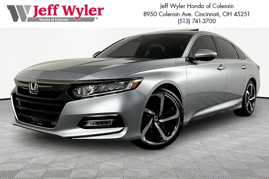 Jeff Wyler Honda of Colerain is very proud to offer this charming-looking 2018 Honda Accord Sport 2.0T in Lunar Silver Metallic. Well equipped with: 4-Wheel Disc Brakes, 8 Speakers, ABS brakes, Air Conditioning, Alloy wheels, AM/FM radio: SiriusXM, Apple CarPlay/Android Auto, Auto High-beam Headlights, Automatic temperature control, Blind Spot Information (BSI) System warning, Brake assist, Bumpers: body-color, Cloth Seat Trim, Delay-off headlights, Driver door bin, Driver vanity mirror, Dual front impact airbags, Dual front side impact airbags, Electronic Stability Control, Emergency communication system: HondaLink, Exterior Parking Camera Rear, Four wheel independent suspension, Front anti-roll bar, Front Bucket Seats, Front Center Armrest, Front dual zone A/C, Front fog lights, Front reading lights, Fully automatic headlights, Heated door mirrors, Heated Front Bucket Seats, Heated front seats, Illuminated entry, Knee airbag, Leather Shift Knob, Leather steering wheel, Low tire pressure warning, Occupant sensing airbag, Outside temperature display, Overhead airbag, Overhead console, Panic alarm, Passenger door bin, Passenger vanity mirror, Power door mirrors, Power driver seat, Power moonroof, Power steering, Power windows, Radio data system, Radio: 180-Watt AM/FM/HD/SiriusXM Audio System, Rear anti-roll bar, Rear seat center armrest, Rear window defroster, Remote keyless entry, Security system, Speed control, Speed-sensing steering, Speed-Sensitive Wipers, Split folding rear seat, Spoiler, Steering wheel mounted audio controls, Tachometer, Telescoping steering wheel, Tilt steering wheel, Traction control, Trip computer, Variably intermittent wipers, and Wheels: 19" Machine-Finished Alloy w/Black Inserts.