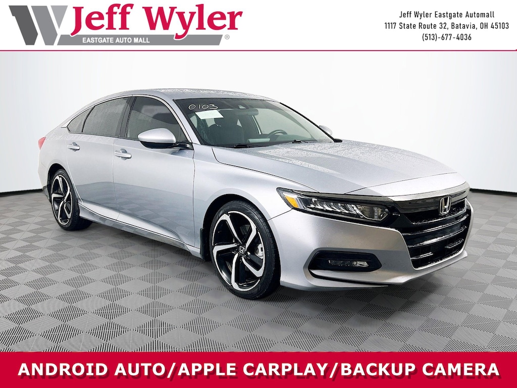Jeff Wyler Eastgate Auto Mall is pleased to offer this great 2019 Honda Accord Sport in Silver. Well equipped with: 4-Wheel Disc Brakes, 8 Speakers, ABS brakes, Air Conditioning, Alloy wheels, AM/FM radio, Apple CarPlay/Android Auto, Auto High-beam Headlights, Automatic temperature control, Brake assist, Bumpers: body-color, Cloth Seat Trim, Delay-off headlights, Driver door bin, Driver vanity mirror, Dual front impact airbags, Dual front side impact airbags, Electronic Stability Control, Emergency communication system: HondaLink, Exterior Parking Camera Rear, Forward collision: Collision Mitigation Braking System (CMBS) + FCW mitigation, Four wheel independent suspension, Front anti-roll bar, Front Bucket Seats, Front Center Armrest, Front dual zone A/C, Front fog lights, Front reading lights, Fully automatic headlights, Illuminated entry, Knee airbag, Leather Shift Knob, Leather steering wheel, Low tire pressure warning, Occupant sensing airbag, Outside temperature display, Overhead airbag, Overhead console, Panic alarm, Passenger door bin, Passenger vanity mirror, Power door mirrors, Power driver seat, Power steering, Power windows, Radio data system, Radio: 180-Watt AM/FM Audio System, Rear anti-roll bar, Rear seat center armrest, Rear window defroster, Remote keyless entry, Security system, Speed control, Speed-sensing steering, Speed-Sensitive Wipers, Split folding rear seat, Spoiler, Steering wheel mounted audio controls, Tachometer, Telescoping steering wheel, Tilt steering wheel, Traction control, Trip computer, Variably intermittent wipers, and Wheels: 19" Machine-Finished Alloy w/Black Inserts. CARFAX One-Owner. Awards: * JD Power Automotive Performance, Execution and Layout (APEAL) Study * ALG Residual Value Awards, Residual Value Awards Ask about available certifications. Used vehicles 10 years of age or newer with less than 100,000 miles are eligible for the Wyler Assurance Program, but eligible vehicles must pass our reconditioning process and multi-point inspection. Provided the vehicle passes inspection, vehicles will be eligible for the 6 month/6,000 mile limited warranty. The 6 month/6,000 mile limited warranty is NOT available on AS-IS vehicles, wholesale vehicles, lease buyback/pass-thru vehicles or un-inspected vehicles. Note that this program can also apply to vehicles where the remaining factory coverage is less than 6 months or 6,000 miles. Please check the Federal Trade Commission (FTC) Buyers guide on the vehicle for full details as to whether or not warranty coverage may apply. Contact Dealer for additional details. The Wyler Assurance 6 month/6,000 Mile limited warranty ends 6 months from the date of the Retail Purchase Agreement (BUYERS ORDER) or when the vehicle's odometer registers 6,000 additional miles to the mileage listed on the BUYERS ORDER, whichever comes first. Your Deductible - The warranty holder on your contract pays the first $100 of each covered repair.