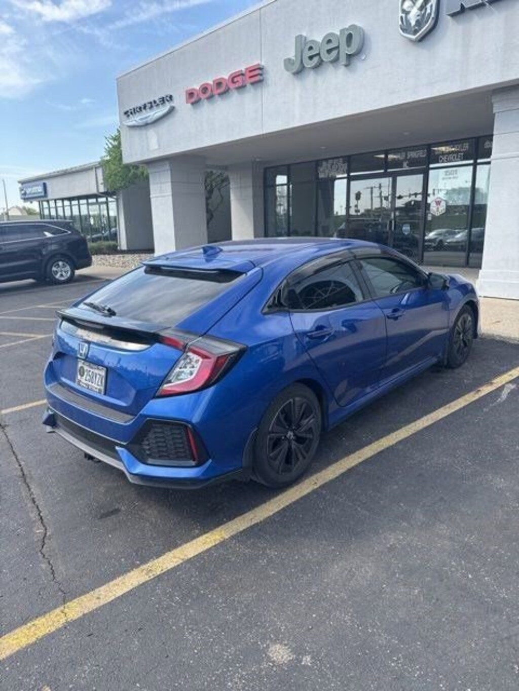 Jeff Wyler Springfield Auto Mall is excited to offer this gorgeous 2019 Honda Civic EX in Blue. Well equipped with: 17 Alloy Wheels, 4-Wheel Disc Brakes, 8 Speakers, ABS brakes, Air Conditioning, Alloy wheels, AM/FM radio: SiriusXM, Apple CarPlay/Android Auto, Automatic temperature control, Brake assist, Bumpers: body-color, Delay-off headlights, Driver door bin, Driver vanity mirror, Dual front impact airbags, Dual front side impact airbags, Electronic Stability Control, Emergency communication system: HondaLink, Exterior Parking Camera Rear, Fabric Seating Surfaces, Forward collision: Collision Mitigation Braking System (CMBS) + FCW mitigation, Four wheel independent suspension, Front anti-roll bar, Front Bucket Seats, Front Center Armrest, Front dual zone A/C, Front fog lights, Front reading lights, Fully automatic headlights, Heated door mirrors, Illuminated entry, Low tire pressure warning, Occupant sensing airbag, Outside temperature display, Overhead airbag, Overhead console, Panic alarm, Passenger door bin, Passenger vanity mirror, Power door mirrors, Power moonroof, Power steering, Power windows, Radio data system, Radio: 180-Watt HD Audio System, Rear anti-roll bar, Rear seat center armrest, Rear window defroster, Rear window wiper, Reclining Front Bucket Seats, Remote keyless entry, Security system, Speed control, Speed-sensing steering, Split folding rear seat, Spoiler, Steering wheel mounted audio controls, Tachometer, Telescoping steering wheel, Tilt steering wheel, Traction control, Trip computer, and Variably intermittent wipers. Ask about available certifications. Used vehicles 10 years of age or newer with less than 100,000 miles are eligible for the Wyler Assurance Program, but eligible vehicles must pass our reconditioning process and multi-point inspection. Provided the vehicle passes inspection, vehicles will be eligible for the 6 month/6,000 mile limited warranty. The 6 month/6,000 mile limited warranty is NOT available on AS-IS vehicles, wholesale vehicles, lease buyback/pass-thru vehicles or un-inspected vehicles. Note that this program can also apply to vehicles where the remaining factory coverage is less than 6 months or 6,000 miles. Please check the Federal Trade Commission (FTC) Buyers guide on the vehicle for full details as to whether or not warranty coverage may apply. Contact Dealer for additional details. The Wyler Assurance 6 month/6,000 Mile limited warranty ends 6 months from the date of the Retail Purchase Agreement (BUYERS ORDER) or when the vehicle's odometer registers 6,000 additional miles to the mileage listed on the BUYERS ORDER, whichever comes first. Your Deductible - The warranty holder on your contract pays the first $100 of each covered repair.
