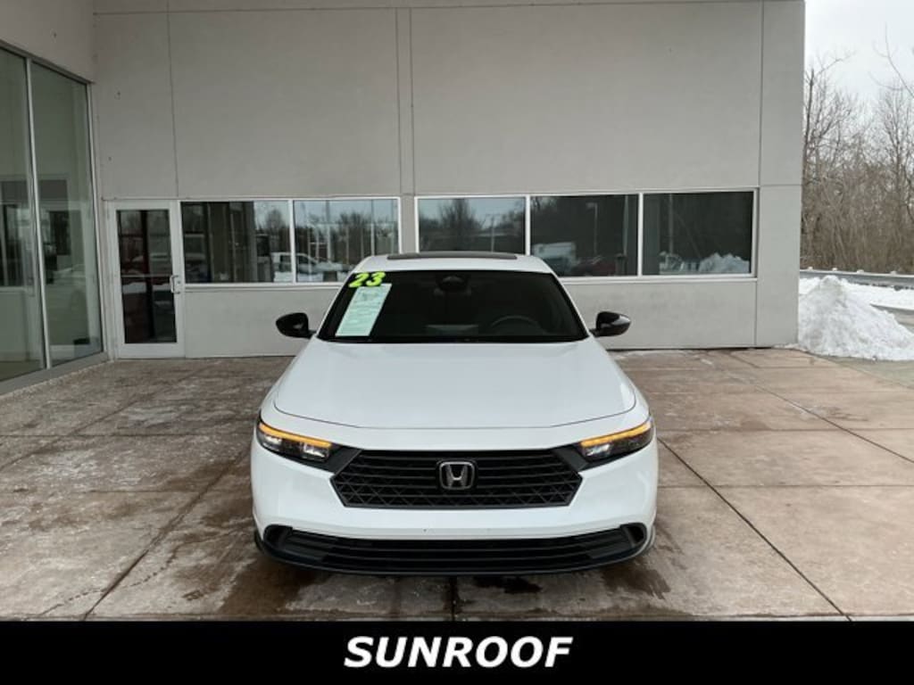 Jeff Wyler Springfield Auto Mall is excited to offer this attractive-looking 2023 Honda Accord Hybrid Sport in White. Well equipped with: 4-Wheel Disc Brakes, 8 Speakers, ABS brakes, Adaptive Cruise Control: Adaptive Cruise Control (ACC) with Low-Speed Follow, Air Conditioning, Alloy wheels, AM/FM radio, Apple CarPlay/Android Auto, Auto High-beam Headlights, Automatic temperature control, Brake assist, Bumpers: body-color, Compass, Delay-off headlights, Driver door bin, Driver vanity mirror, Dual front impact airbags, Dual front side impact airbags, Electronic Stability Control, Emergency communication system: HondaLink, Exterior Parking Camera Rear, Fabric Seat Trim, Four wheel independent suspension, Front anti-roll bar, Front Bucket Seats, Front Center Armrest, Front dual zone A/C, Front reading lights, Fully automatic headlights, Illuminated entry, Knee airbag, Lane departure: Lane Keeping Assist System (LKAS) active, Leather Shift Knob, Leather steering wheel, Low tire pressure warning, Occupant sensing airbag, Outside temperature display, Overhead airbag, Overhead console, Panic alarm, Passenger door bin, Passenger vanity mirror, Power door mirrors, Power driver seat, Power moonroof, Power steering, Power windows, Radio data system, Radio: 180-Watt Audio System, Rear anti-roll bar, Rear reading lights, Rear seat center armrest, Rear side impact airbag, Rear window defroster, Remote keyless entry, Security system, Speed control, Speed-sensing steering, Speed-Sensitive Wipers, Split folding rear seat, Spoiler, Steering wheel mounted audio controls, Telescoping steering wheel, Tilt steering wheel, Traction control, Trip computer, Variably intermittent wipers, and Wheels: 19 x 8.5J Berlina Black. Ask about available certifications. Used vehicles 10 years of age or newer with less than 100,000 miles are eligible for the Wyler Assurance Program, but eligible vehicles must pass our reconditioning process and multi-point inspection. Provided the vehicle passes inspection, vehicles will be eligible for the 6 month/6,000 mile limited warranty. The 6 month/6,000 mile limited warranty is NOT available on AS-IS vehicles, wholesale vehicles, lease buyback/pass-thru vehicles or un-inspected vehicles. Note that this program can also apply to vehicles where the remaining factory coverage is less than 6 months or 6,000 miles. Please check the Federal Trade Commission (FTC) Buyers guide on the vehicle for full details as to whether or not warranty coverage may apply. Contact Dealer for additional details. The Wyler Assurance 6 month/6,000 Mile limited warranty ends 6 months from the date of the Retail Purchase Agreement (BUYERS ORDER) or when the vehicle's odometer registers 6,000 additional miles to the mileage listed on the BUYERS ORDER, whichever comes first. Your Deductible - The warranty holder on your contract pays the first $100 of each covered repair.