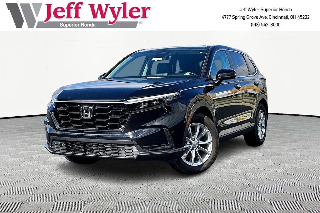 Jeff Wyler Superior Honda is very proud to offer this gorgeous 2023 Honda CR-V EX-L in Crystal Black Pearl. BLUETOOTH, LEATHER, MOONROOF SUNROOF, and CLEAN CARFAX...NO ACCIDENTS CR-V EX-L, 4D Sport Utility, 1.5L I4 DOHC 16V, CVT, AWD, Crystal Black Pearl, Black Leather, 4-Wheel Disc Brakes, 5.64 Axle Ratio, 8 Speakers, ABS brakes, Adaptive Cruise Control: Adaptive Cruise Control (ACC) with Low-Speed Follow, Air Conditioning, Alloy wheels, AM/FM radio: SiriusXM, Auto High-beam Headlights, Auto-dimming Rear-View mirror, Automatic temperature control, Brake assist, Bumpers: body-color, Compass, Delay-off headlights, Driver door bin, Driver vanity mirror, Dual front impact airbags, Dual front side impact airbags, Electronic Stability Control, Exterior Parking Cameras, Four wheel independent suspension, Front anti-roll bar, Front Bucket Seats, Front Center Armrest, Front dual zone A/C, Front reading lights, Fully automatic headlights, Heated door mirrors, Heated Front Bucket Seats, Heated front seats, Illuminated entry, Knee airbag, Leather Seat Trim, Leather Shift Knob, Leather steering wheel, Low tire pressure warning, Memory seat, Occupant sensing airbag, Outside temperature display, Overhead airbag, Overhead console, Panic alarm, Passenger door bin, Passenger vanity mirror, Power door mirrors, Power driver seat, Power Liftgate, Power moonroof, Power passenger seat, Power steering, Power windows, Radio data system, Radio: 320-Watt AM/FM/HD/SiriusXM Audio System, Rear anti-roll bar, Rear reading lights, Rear seat center armrest, Rear side impact airbag, Rear window defroster, Rear window wiper, Remote keyless entry, Security system, Speed control, Speed-sensing steering, Speed-Sensitive Wipers, Split folding rear seat, Spoiler, Steering wheel mounted audio controls, Tachometer, Telescoping steering wheel, Tilt steering wheel, Traction control, Trip computer, Turn signal indicator mirrors, Variably intermittent wipers, Wheels: 18" Sparkle Silver Metallic, and Wireless Apple CarPlay/Wireless Android Auto Our PRE-OWNED vehicles are put through a rigorous 167- POINT QUALITY ASSURANCE INSPECTION along with an average amount of over $1,400.00 SPENT to recondition each vehicle so we can be sure to deliver you the highest quality vehicle like you deserve! ***ONLINE PRICE DOES NOT INCLUDE WYLER FAMILY FIRST PACKAGE*** Stop by 4777 Spring Grove Ave. Road to see for yourself, or give us a call @ 283-209-1858 to schedule your test drive!Vehicle pricing includes all offers and incentives. Due to limited inventory, offers and pricing are all subject to change. Tax, Title, Tags and $387 doc fees are not included in vehicle price shown and must be paid by the purchaser. Doc fees vary by location. Financing w/approved credit. Mileage est. Based on current EPA estimates reflecting new EPA methods beginning w/ 2008 models. For comparison only. Do not compare to pre 2008 models. Actual mileage may vary based on how you drive and maintain your vehicle. Information on this site includes 3rd party data believed to be reliable, subject to change without notice. Jeff Wyler reserves the right to correct any errors and/or omissions in the compilation or presentation of this data and makes no representations express or implied to any prospective purchaser as to the vehicle's condition, specifications, history, equipment or equipment function, price or warranties. This vehicle may be subject to an open recall that has not been repaired. Please consult safercar.gov for more information on the current status. It is the responsibility of purchaser to confirm any data prior to purchase. Other than MSRP, all offers only apply to this vehicle and are subject to change. Vehicle prices are subject to change and all vehicles are subject to prior sale and may not be available when you are ready to purchase. Prices listed on any other website may not be accepted. Dealership advertises the sale of vehicles through a number of different channels and cannot always contr