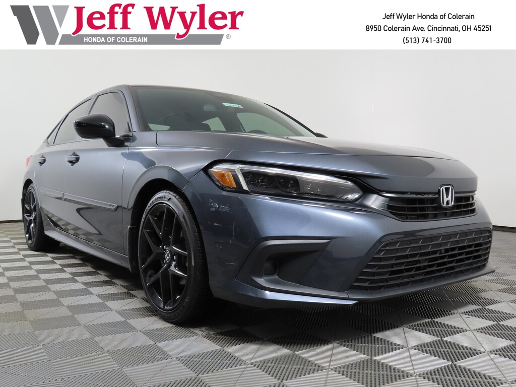 Jeff Wyler Honda of Colerain is excited to offer this good-looking 2023 Honda Civic Sport in Gray. Well equipped with: 4-Wheel Disc Brakes, 8 Speakers, ABS brakes, Adaptive Cruise Control: Adaptive Cruise Control (ACC) with Low-Speed Follow, Air Conditioning, Alloy wheels, AM/FM radio, Apple CarPlay/Android Auto, Auto High-beam Headlights, Automatic temperature control, Brake assist, Bumpers: body-color, Cloth Seat Trim, Delay-off headlights, Driver door bin, Driver vanity mirror, Dual front impact airbags, Dual front side impact airbags, Electronic Stability Control, Emergency communication system: HondaLink, Exterior Parking Camera Rear, Four wheel independent suspension, Front anti-roll bar, Front Bucket Seats, Front Center Armrest, Front reading lights, Fully automatic headlights, Illuminated entry, Knee airbag, Leather Shift Knob, Leather steering wheel, Low tire pressure warning, Occupant sensing airbag, Outside temperature display, Overhead airbag, Panic alarm, Passenger door bin, Passenger vanity mirror, Power door mirrors, Power steering, Power windows, Radio data system, Radio: 180-Watt Audio System w/8 Speakers, Rear anti-roll bar, Rear side impact airbag, Rear window defroster, Remote keyless entry, Security system, Speed control, Speed-sensing steering, Steering wheel mounted audio controls, Tachometer, Telescoping steering wheel, Tilt steering wheel, Traction control, Trip computer, and Wheels: 18" Gloss Black Alloy.
