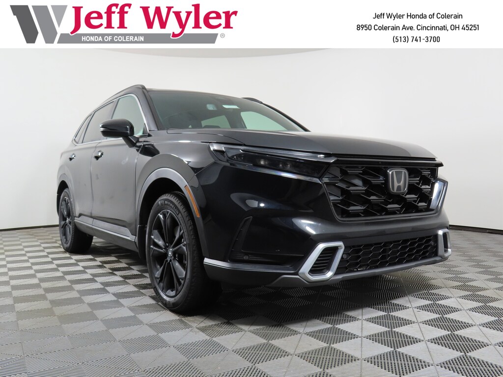 Jeff Wyler Honda of Colerain is very proud to offer this charming-looking 2024 Honda CR-V Hybrid Sport Touring in Crystal Black Pearl. Well equipped with: 12 Speakers, 4-Wheel Disc Brakes, 4.438 Axle Ratio, ABS brakes, Adaptive Cruise Control: Adaptive Cruise Control (ACC) with Low-Speed Follow, Air Conditioning, Alloy wheels, AM/FM radio: SiriusXM, Auto High-beam Headlights, Auto-dimming Rear-View mirror, Automatic temperature control, Blind Spot Information (BSI) System warning, Brake assist, Bumpers: body-color, Compass, Delay-off headlights, Driver door bin, Driver vanity mirror, Dual front impact airbags, Dual front side impact airbags, Electronic Stability Control, Exterior Parking Camera Rear, Four wheel independent suspension, Front anti-roll bar, Front Bucket Seats, Front Center Armrest, Front dual zone A/C, Front reading lights, Fully automatic headlights, Heated door mirrors, Heated Front Bucket Seats, Heated front seats, Heated steering wheel, Illuminated entry, Knee airbag, Leather Seat Trim, Leather Shift Knob, Leather steering wheel, Low tire pressure warning, Memory seat, Navigation system: Honda Satellite-Linked Navigation System, Occupant sensing airbag, Outside temperature display, Overhead airbag, Overhead console, Panic alarm, Passenger door bin, Passenger vanity mirror, Power door mirrors, Power driver seat, Power Liftgate, Power moonroof, Power passenger seat, Power steering, Power windows, Radio data system, Radio: Bose Premium Sound System w/Navigation, Rain sensing wipers, Rear anti-roll bar, Rear reading lights, Rear seat center armrest, Rear side impact airbag, Rear window defroster, Rear window wiper, Remote keyless entry, Security system, Speed control, Speed-sensing steering, Speed-Sensitive Wipers, Split folding rear seat, Spoiler, Steering wheel mounted audio controls, Telescoping steering wheel, Tilt steering wheel, Traction control, Trip computer, Turn signal indicator mirrors, Variably intermittent wipers, Wheels: 19" Berlina Black Alloy, and Wireless Apple CarPlay/Wireless Android Auto.