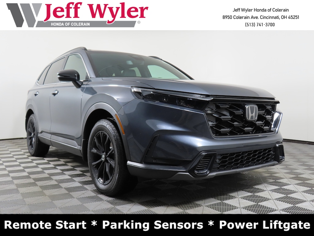 Jeff Wyler Honda of Colerain is very proud to offer this wonderful 2024 Honda CR-V Hybrid Sport-L in Canyon River Blue Metallic. Well equipped with: 4-Wheel Disc Brakes, 4.438 Axle Ratio, 8 Speakers, ABS brakes, Adaptive Cruise Control: Adaptive Cruise Control (ACC) with Low-Speed Follow, Air Conditioning, Alloy wheels, AM/FM radio: SiriusXM, Auto High-beam Headlights, Auto-dimming Rear-View mirror, Automatic temperature control, Blind Spot Information (BSI) System warning, Brake assist, Bumpers: body-color, Compass, Delay-off headlights, Driver door bin, Driver vanity mirror, Dual front impact airbags, Dual front side impact airbags, Electronic Stability Control, Exterior Parking Camera Rear, Four wheel independent suspension, Front anti-roll bar, Front Bucket Seats, Front Center Armrest, Front dual zone A/C, Front reading lights, Fully automatic headlights, Heated door mirrors, Heated Front Bucket Seats, Heated front seats, Illuminated entry, Knee airbag, Leather Seat Trim, Leather Shift Knob, Leather steering wheel, Low tire pressure warning, Memory seat, Occupant sensing airbag, Outside temperature display, Overhead airbag, Overhead console, Panic alarm, Passenger door bin, Passenger vanity mirror, Power door mirrors, Power driver seat, Power Liftgate, Power moonroof, Power passenger seat, Power steering, Power windows, Radio data system, Radio: 320-Watt AM/FM/HD/SiriusXM Audio System, Rear anti-roll bar, Rear reading lights, Rear seat center armrest, Rear side impact airbag, Rear window defroster, Rear window wiper, Remote keyless entry, Security system, Speed control, Speed-sensing steering, Speed-Sensitive Wipers, Split folding rear seat, Spoiler, Steering wheel mounted audio controls, Telescoping steering wheel, Tilt steering wheel, Traction control, Trip computer, Turn signal indicator mirrors, Variably intermittent wipers, Wheels: 18" Berlina Black Alloy, and Wireless Apple CarPlay/Wireless Android Auto.