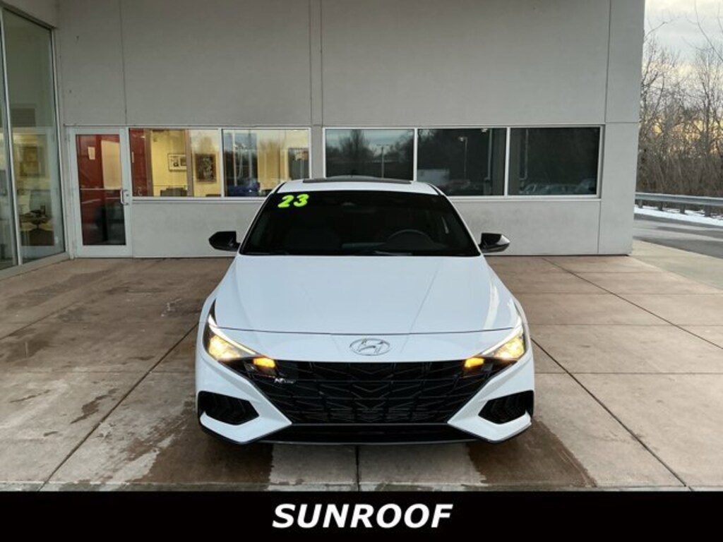 Jeff Wyler Springfield Auto Mall is honored to offer this good-looking 2023 Hyundai Elantra N Line in Ceramic White. Well equipped with: Option Group 01, 18 x 7.5J Alloy Wheels, 4-Wheel Disc Brakes, 6 Speakers, ABS brakes, Air Conditioning, Alloy wheels, AM/FM radio: SiriusXM, Apple CarPlay & Android Auto, Auto High-beam Headlights, Automatic temperature control, Brake assist, Bumpers: body-color, Carpeted Floor Mats, Combination Cloth & Leather Seating Surfaces, Delay-off headlights, Driver door bin, Driver vanity mirror, Dual front impact airbags, Dual front side impact airbags, Electronic Stability Control, Emergency communication system: Blue Link Connected Car Service (3-year complimentary subscription), Exterior Parking Camera Rear, Four wheel independent suspension, Front anti-roll bar, Front Bucket Seats, Front Center Armrest, Front dual zone A/C, Front reading lights, Fully automatic headlights, Heated door mirrors, Heated front seats, Heated Front Sport Bucket Seats, Illuminated entry, Leather Shift Knob, Leather steering wheel, Low tire pressure warning, Navigation System, Occupant sensing airbag, Outside temperature display, Overhead airbag, Overhead console, Panic alarm, Passenger door bin, Passenger vanity mirror, Power door mirrors, Power driver seat, Power moonroof, Power steering, Power windows, Radio: AM/FM/HD/SiriusXM Display Audio, Rear anti-roll bar, Rear Bumper Applique, Rear seat center armrest, Rear window defroster, Remote keyless entry, Reversible Cargo Tray, Security system, Speed control, Speed-sensing steering, Split folding rear seat, Spoiler, Sport steering wheel, Steering wheel mounted audio controls, Tachometer, Telescoping steering wheel, Tilt steering wheel, Traction control, Trip computer, and Variably intermittent wipers. Ask about available certifications. Used vehicles 10 years of age or newer with less than 100,000 miles are eligible for the Wyler Assurance Program, but eligible vehicles must pass our reconditioning process and multi-point inspection. Provided the vehicle passes inspection, vehicles will be eligible for the 6 month/6,000 mile limited warranty. The 6 month/6,000 mile limited warranty is NOT available on AS-IS vehicles, wholesale vehicles, lease buyback/pass-thru vehicles or un-inspected vehicles. Note that this program can also apply to vehicles where the remaining factory coverage is less than 6 months or 6,000 miles. Please check the Federal Trade Commission (FTC) Buyers guide on the vehicle for full details as to whether or not warranty coverage may apply. Contact Dealer for additional details. The Wyler Assurance 6 month/6,000 Mile limited warranty ends 6 months from the date of the Retail Purchase Agreement (BUYERS ORDER) or when the vehicle's odometer registers 6,000 additional miles to the mileage listed on the BUYERS ORDER, whichever comes first. Your Deductible - The warranty holder on your contract pays the first $100 of each covered repair.