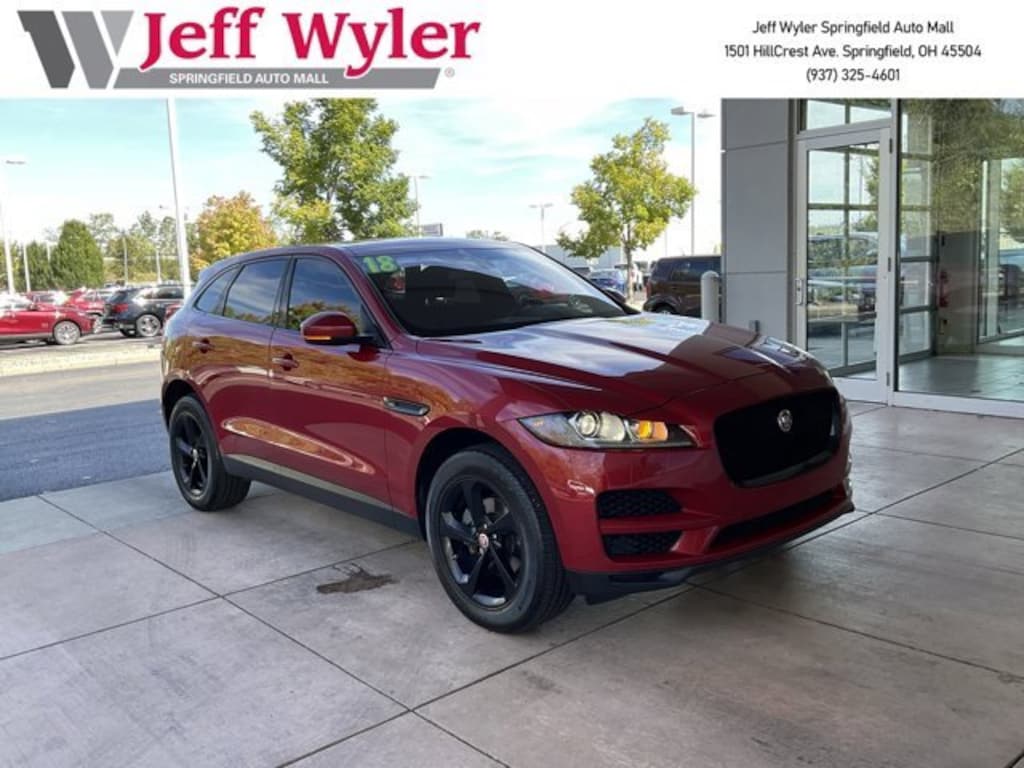 Jeff Wyler Springfield Auto Mall is very proud to offer this outstanding-looking 2018 Jaguar F-PACE 25t Premium in Red. Well equipped with: 11 Speakers, 3.73 Axle Ratio, 4-Wheel Disc Brakes, ABS brakes, Air Conditioning, Alloy wheels, AM/FM radio, Auto-dimming door mirrors, Auto-dimming Rear-View mirror, Automatic temperature control, Brake assist, Bumpers: body-color, Compass, Delay-off headlights, Driver door bin, Driver vanity mirror, Dual front impact airbags, Dual front side impact airbags, Electronic Stability Control, Emergency communication system: InControl Protect, Exterior Parking Camera Rear, Four wheel independent suspension, Front anti-roll bar, Front Bucket Seats, Front Center Armrest, Front dual zone A/C, Front reading lights, Fully automatic headlights, Garage door transmitter: HomeLink, Heated door mirrors, Illuminated entry, Leather steering wheel, Low tire pressure warning, LuxTec Seat Trim, Memory seat, Occupant sensing airbag, Outside temperature display, Overhead airbag, Overhead console, Panic alarm, Passenger door bin, Passenger vanity mirror, Power door mirrors, Power driver seat, Power Liftgate, Power moonroof, Power passenger seat, Power steering, Power windows, Radio data system, Radio: Meridian 380W Sound System, Rain sensing wipers, Rear anti-roll bar, Rear fog lights, Rear reading lights, Rear window defroster, Rear window wiper, Remote keyless entry, Security system, Speed control, Speed-sensing steering, Split folding rear seat, Spoiler, Steering wheel mounted audio controls, Tachometer, Telescoping steering wheel, Tilt steering wheel, Traction control, Trip computer, Turn signal indicator mirrors, Variably intermittent wipers, and Wheels: 19 5-Spoke (Style 5037) Awards:* 2018 KBB.com Brand Image Awards Ask about available certifications. Used vehicles 10 years of age or newer with less than 100,000 miles are eligible for the Wyler Assurance Program, but eligible vehicles must pass our reconditioning process and multi-point inspection. Provided the vehicle passes inspection, vehicles will be eligible for the 6 month/6,000 mile limited warranty. The 6 month/6,000 mile limited warranty is NOT available on AS-IS vehicles, wholesale vehicles, lease buyback/pass-thru vehicles or un-inspected vehicles. Note that this program can also apply to vehicles where the remaining factory coverage is less than 6 months or 6,000 miles. Please check the Federal Trade Commission (FTC) Buyers guide on the vehicle for full details as to whether or not warranty coverage may apply. Contact Dealer for additional details. The Wyler Assurance 6 month/6,000 Mile limited warranty ends 6 months from the date of the Retail Purchase Agreement (BUYERS ORDER) or when the vehicle's odometer registers 6,000 additional miles to the mileage listed on the BUYERS ORDER, whichever comes first. Your Deductible - The warranty holder on your contract pays the first $100 of each covered repair.