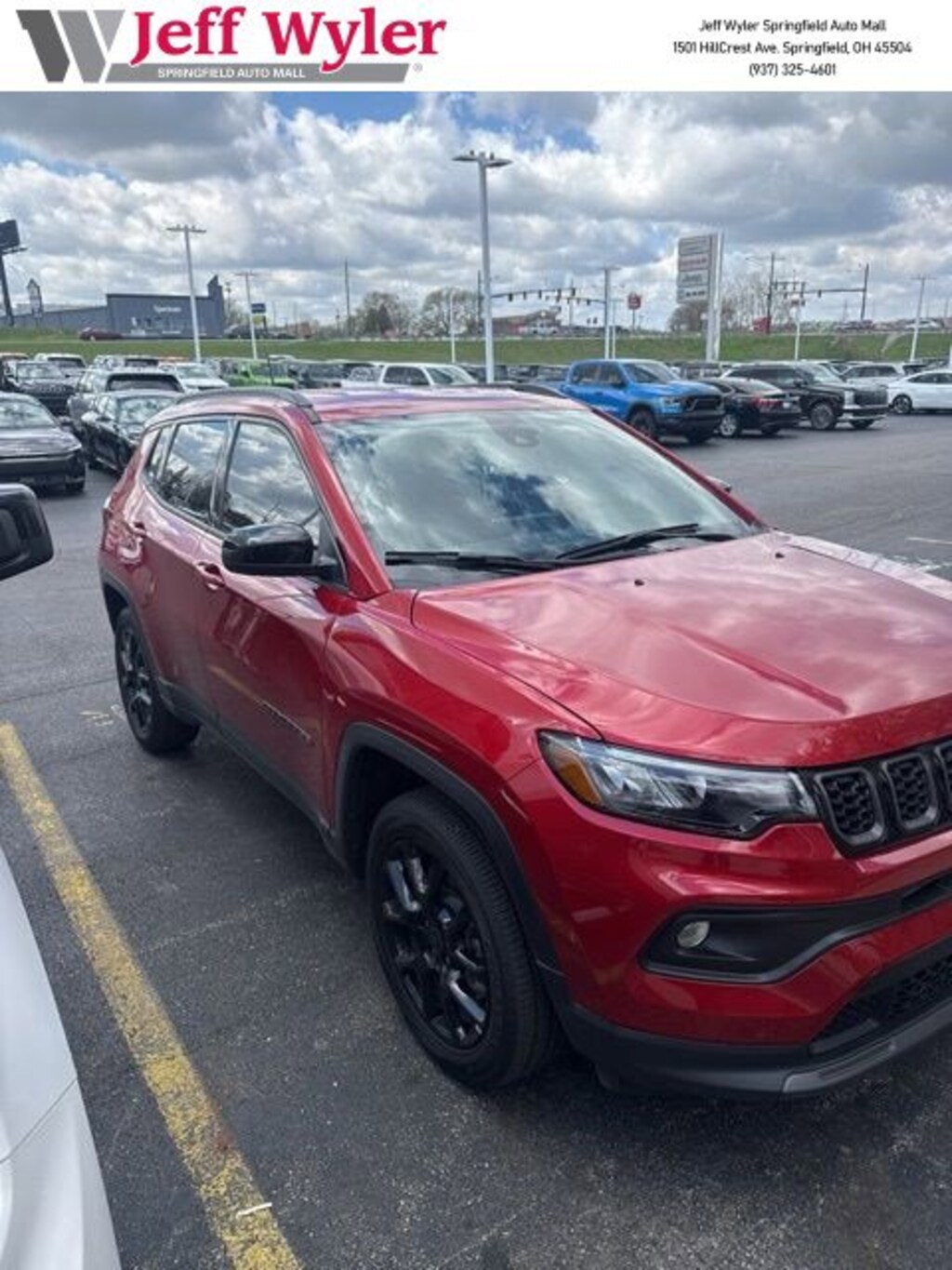 Jeff Wyler Springfield Auto Mall is excited to offer this terrific 2026 Jeep Compass Latitude in Red Hot Pearlcoat. Well equipped with: Quick Order Package 29N Altitude (10.1" Touchscreen Display, Altitude Special Edition, Black Day Light Opening Moldings, Gloss Black Surround/Neutral Gray Rings, Neutral Gray Exterior Badging, Piano Black Interior Accents, Sliding Sun Visors with Illuminated Mirrors, and Wheels: 18" x 7" Gloss Black Painted Aluminum), 17" x 7" Aluminum Wheels, 3.73 Final Drive Ratio, 4-Wheel Disc Brakes, 4G LTE Wi-Fi Hot Spot, 6 Speakers, ABS brakes, Air Conditioning, AM/FM radio: SiriusXM, Auto High-beam Headlights, Automatic temperature control, Bluetooth Handsfree Phone and Audio, Brake assist, Bumpers: body-color, Compass, Delay-off headlights, Driver door bin, Driver vanity mirror, Dual front impact airbags, Dual front side impact airbags, Electronic Stability Control, Emergency communication system: SiriusXM Guardian, Four wheel independent suspension, Front anti-roll bar, Front Bucket Seats, Front Center Armrest w/Storage, Front fog lights, Front License Plate Bracket, Front reading lights, Fully automatic headlights, Global Telematics Box Module, Heated door mirrors, Heated front seats, Heated steering wheel, Illuminated entry, Knee airbag, Leather Shift Knob, Leather steering wheel, Low tire pressure warning, Occupant sensing airbag, Outside temperature display, Overhead airbag, Overhead console, Panic alarm, ParkView Rear Back-Up Camera, Passenger door bin, Passenger vanity mirror, Power door mirrors, Power steering, Power windows, Premium audio system: UConnect 5, Premium Cloth/Vinyl Bucket Seats, Radio: Uconnect 5 with 8.4" Display, Rear anti-roll bar, Rear seat center armrest, Rear window defroster, Rear window wiper, Remote keyless entry, Security system, SiriusXM Satellite Radio, Speed control, Split folding rear seat, Spoiler, Steering wheel mounted audio controls, Tachometer, Telescoping steering wheel, Tilt steering wheel, Traction control, Trip computer, and Variably intermittent wipers. Ask about available certifications. Used vehicles 10 years of age or newer with less than 100,000 miles are eligible for the Wyler Assurance Program, but eligible vehicles must pass our reconditioning process and multi-point inspection. Provided the vehicle passes inspection, vehicles will be eligible for the 6 month/6,000 mile limited warranty. The 6 month/6,000 mile limited warranty is NOT available on AS-IS vehicles, wholesale vehicles, lease buyback/pass-thru vehicles or un-inspected vehicles. Note that this program can also apply to vehicles where the remaining factory coverage is less than 6 months or 6,000 miles. Please check the Federal Trade Commission (FTC) Buyers guide on the vehicle for full details as to whether or not warranty coverage may apply. Contact Dealer for additional details. The Wyler Assurance 6 month/6,000 Mile limited warranty ends 6 months from the date of the Retail Purchase Agreement (BUYERS ORDER) or when the vehicle's odometer registers 6,000 additional miles to the mileage listed on the BUYERS ORDER, whichever comes first. Your Deductible - The warranty holder on your contract pays the first $100 of each covered repair.