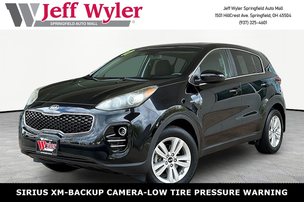 Jeff Wyler Springfield Auto Mall is proud to offer this wonderful 2017 Kia Sportage LX in Black Cherry. Well equipped with: 17" Alloy Wheels, 3.195 Axle Ratio, 4-Wheel Disc Brakes, 6 Speakers, ABS brakes, Air Conditioning, Alloy wheels, AM/FM radio: SiriusXM, Brake assist, Bumpers: body-color, Cargo Mat, Carpet Floor Mats, CD player, Cloth Seat Trim, Delay-off headlights, Driver door bin, Driver vanity mirror, Dual front impact airbags, Dual front side impact airbags, Electronic Stability Control, Exterior Parking Camera Rear, Four wheel independent suspension, Front anti-roll bar, Front Bucket Seats, Front Center Armrest, Front reading lights, Fully automatic headlights, Illuminated entry, Low tire pressure warning, Mud Guards, Occupant sensing airbag, Outside temperature display, Overhead airbag, Overhead console, Panic alarm, Passenger door bin, Passenger vanity mirror, Power door mirrors, Power steering, Power windows, Radio: AM/FM/CD/MP3/SiriusXM, Radio: AM/FM/SiriusXM, Rear anti-roll bar, Rear seat center armrest, Rear window defroster, Rear window wiper, Remote keyless entry, Security system, Speed control, Speed-sensing steering, Split folding rear seat, Spoiler, Steering wheel mounted audio controls, Tachometer, Telescoping steering wheel, Tilt steering wheel, Traction control, Trip computer, and Variably intermittent wipers. Awards: * 2017 IIHS Top Safety Pick, Top Safety Pick+ * 2017 KBB.com 10 Most Awarded Cars * 2017 KBB.com Best Buy Awards * 2017 KBB.com 10 Best All-Wheel-Drive Vehicles Under $25,000 * 2017 KBB.com 10 Best SUVs Under $25,000 * 2017 KBB.com 12 Best Family Cars * 2017 KBB.com 10 Most Awarded Brands Reviews: * Rides smoothly over bumps; quiet interior at highway speeds; spacious seating front and rear; attractive dashboard layout with many appealing features; feels nimble around turns. Source: EdmundsAsk about available certifications. Used vehicles 10 years of age or newer with less than 100,000 miles are eligible for the Wyler Assurance Program, but eligible vehicles must pass our reconditioning process and multi-point inspection. Provided the vehicle passes inspection, vehicles will be eligible for the 6 month/6,000 mile limited warranty. The 6 month/6,000 mile limited warranty is NOT available on AS-IS vehicles, wholesale vehicles, lease buyback/pass-thru vehicles or un-inspected vehicles. Note that this program can also apply to vehicles where the remaining factory coverage is less than 6 months or 6,000 miles. Please check the Federal Trade Commission (FTC) Buyers guide on the vehicle for full details as to whether or not warranty coverage may apply. Contact Dealer for additional details. The Wyler Assurance 6 month/6,000 Mile limited warranty ends 6 months from the date of the Retail Purchase Agreement (BUYERS ORDER) or when the vehicle's odometer registers 6,000 additional miles to the mileage listed on the BUYERS ORDER, whichever comes first. Your Deductible - The warranty holder on your contract pays the first $100 of each covered repair.
