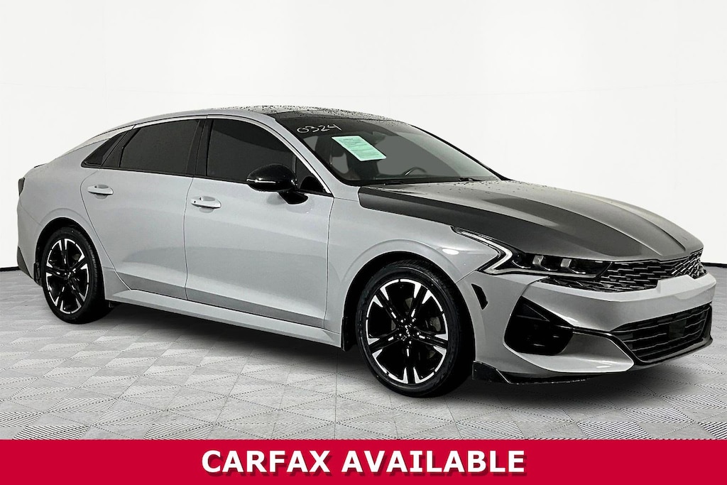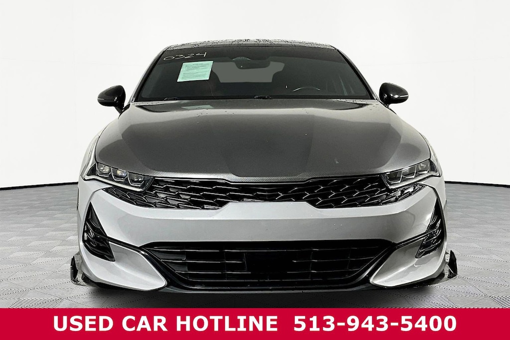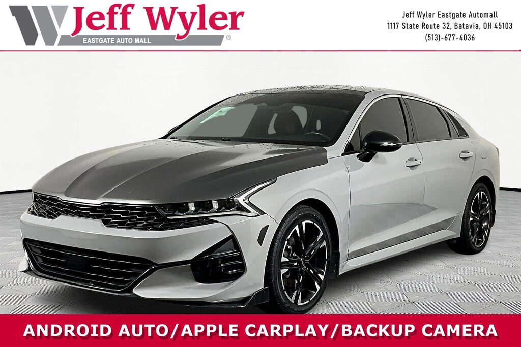 Jeff Wyler Eastgate Auto Mall is pleased to offer this superb-looking 2022 Kia K5 GT-Line in Wolf Gray. Well equipped with: GT-Line FWD Premium Package (Forward Collision Avoidance-Assist - Cyclist, Forward Collision Avoidance-Assist - Junction Turn, Gloss Black Pillar & Door Frame Cover, and Highway Driving Assist), GT-Line Red Interior Package, 4-Wheel Disc Brakes, 6 Speakers, ABS brakes, Air Conditioning, Alloy wheels, AM/FM radio: SiriusXM, Apple CarPlay & Android Auto, Auto High-beam Headlights, Automatic temperature control, Brake assist, Bumpers: body-color, Carpeted Floor Mats, Cloth/Leatherette Seat Trim, Delay-off headlights, Driver door bin, Driver vanity mirror, Dual front impact airbags, Dual front side impact airbags, EC Mirror w/Homelink, Electronic Stability Control, Four wheel independent suspension, Front anti-roll bar, Front Bucket Seats, Front Center Armrest, Front dual zone A/C, Front fog lights, Front reading lights, Fully automatic headlights, Heated door mirrors, Illuminated entry, Knee airbag, LED Trunk Light, Low tire pressure warning, Navigation System, Occupant sensing airbag, Outside temperature display, Overhead airbag, Overhead console, Panic alarm, Passenger door bin, Passenger vanity mirror, Power door mirrors, Power driver seat, Power steering, Power windows, Radio data system, Radio: AM/FM/MP3 Audio System, Rear anti-roll bar, Rear seat center armrest, Rear side impact airbag, Rear window defroster, Remote keyless entry, Security system, Speed control, Speed-sensing steering, Split folding rear seat, Spoiler, Sport steering wheel, Steering wheel mounted audio controls, Tachometer, Telescoping steering wheel, Tilt steering wheel, Traction control, Trip computer, Turn signal indicator mirrors, Variably intermittent wipers, and Wheels: 7.5J x 18" Gloss Black Machined Finish Alloy. CARFAX One-Owner. Ask about available certifications. Used vehicles 10 years of age or newer with less than 100,000 miles are eligible for the Wyler Assurance Program, but eligible vehicles must pass our reconditioning process and multi-point inspection. Provided the vehicle passes inspection, vehicles will be eligible for the 6 month/6,000 mile limited warranty. The 6 month/6,000 mile limited warranty is NOT available on AS-IS vehicles, wholesale vehicles, lease buyback/pass-thru vehicles or un-inspected vehicles. Note that this program can also apply to vehicles where the remaining factory coverage is less than 6 months or 6,000 miles. Please check the Federal Trade Commission (FTC) Buyers guide on the vehicle for full details as to whether or not warranty coverage may apply. Contact Dealer for additional details. The Wyler Assurance 6 month/6,000 Mile limited warranty ends 6 months from the date of the Retail Purchase Agreement (BUYERS ORDER) or when the vehicle's odometer registers 6,000 additional miles to the mileage listed on the BUYERS ORDER, whichever comes first. Your Deductible - The warranty holder on your contract pays the first $100 of each covered repair.