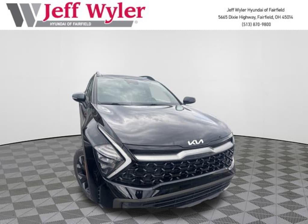 CARFAX One-Owner. Jeff Wyler Hyundai of Fairfield is honored to offer this wonderful 2023 Kia Sportage X-Line in Ebony Black. Well equipped with: Sage Green Interior Color Package, X-Line Premium Package (LED Interior Lighting, Panoramic Sunroof, and Smart Power Liftgate), AWD, Android Auto, Apple CarPlay, CALL NOW FOR YOUR VIP APPOINTMENT 513-870-9800, FULLY SERVICED w/RECORDS, GUARANTEED FINANCING!! NO MATTER YOUR SITUATION WE CAN GET AN APPROVAL!!, THE #1 Volume dealer in the region! Come see why for yourself Today!!, WE PAY MORE FOR YOUR TRADE!!, 4-Wheel Disc Brakes, 6 Speakers, ABS brakes, Air Conditioning, Alloy wheels, AM/FM radio: SiriusXM, Apple CarPlay & Android Auto, Auto High-beam Headlights, Automatic temperature control, Axle Ratio: 3.648, Brake assist, Bumpers: body-color, Cargo Cover, Cargo Net Hybrid w/o Audio, Compass, Delay-off headlights, Driver door bin, Driver vanity mirror, Dual front impact airbags, Dual front side impact airbags, Electronic Stability Control, Emergency communication system, Four wheel independent suspension, Front anti-roll bar, Front Bucket Seats, Front Center Armrest, Front dual zone A/C, Fully automatic headlights, harman/kardon® Speakers, Heated door mirrors, Heated Front Bucket Seats, Heated front seats, Illuminated entry, Leather Shift Knob, Leather steering wheel, Low tire pressure warning, Navigation System, Occupant sensing airbag, Outside temperature display, Overhead airbag, Overhead console, Panic alarm, Passenger door bin, Passenger vanity mirror, Power door mirrors, Power driver seat, Power steering, Power windows, Premium Leatherette Seat Trim, Radio: AM/FM/HD Audio System, Rain sensing wipers, Rear anti-roll bar, Rear seat center armrest, Rear window defroster, Rear window wiper, Remote keyless entry, Security system, Speed control, Speed-sensing steering, Split folding rear seat, Spoiler, Steering wheel mounted audio controls, Tachometer, Telescoping steering wheel, Tilt steering wheel, Traction control, Trip computer, Turn signal indicator mirrors, Variably intermittent wipers, Wheel Locks, and Wheels: 19" Gloss Black Alloy. TO CHECK ON THE AVAILABILITY OF THIS VEHICLE REACH OUT TO ONE OF OUR TEAM MEMBERS!! ALSO SHOP ONLINE AT https://www.jeffwylerhyundaioffairfield.com/ Proudly Serving: Cincinnati, Dayton, Columbus, Louisville, Lexington, Indianapolis, Hamilton, Florence, Alexandria, Beavercreek, Springdale, West Chester, Monroe, Fairfield, Kenwood, Newport and all of greater Cincinnati Ohio, Indiana, and Northern Kentucky.