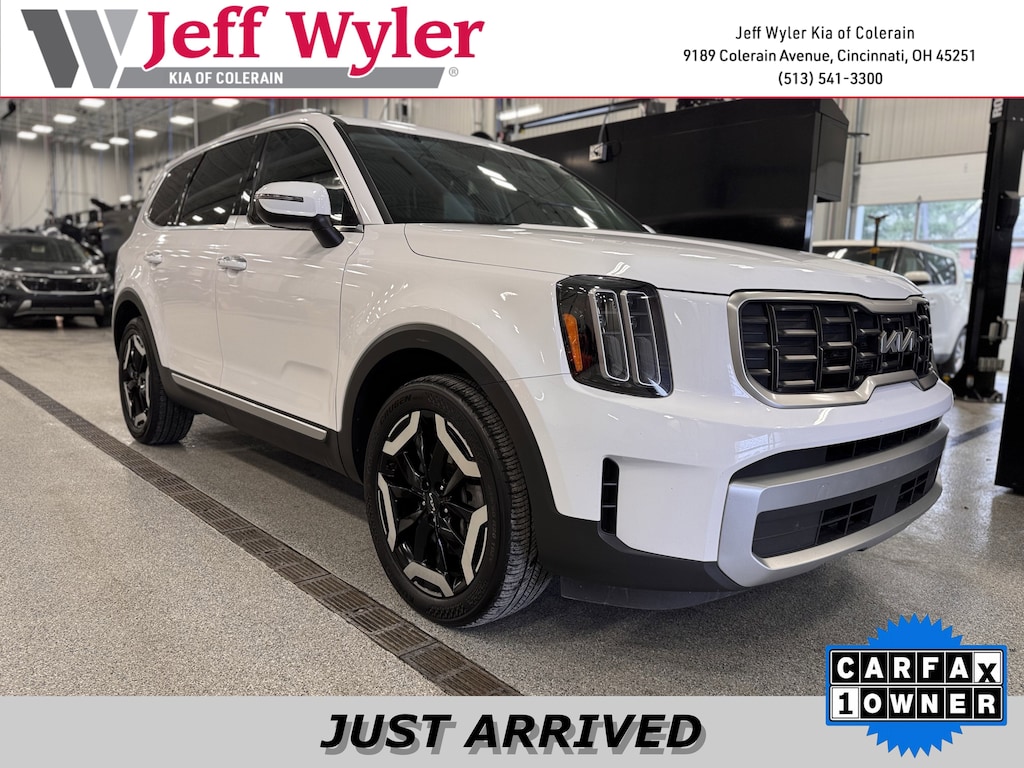 Jeff Wyler Kia of Colerain is honored to offer this good-looking 2023 Kia Telluride S in Glacial White Pearl. S Sunroof Package (Power Sunroof w/Sunshade), 3.510 Axle Ratio, 3rd row seats: split-bench, 4-Wheel Disc Brakes, 6 Speakers, ABS brakes, Air Conditioning, Alloy wheels, AM/FM radio: SiriusXM, Apple CarPlay & Android Auto, Auto High-beam Headlights, Automatic temperature control, Brake assist, Bumpers: body-color, Carpet Floor Mats, Delay-off headlights, Driver door bin, Driver vanity mirror, Dual front impact airbags, Dual front side impact airbags, Electronic Stability Control, Emergency communication system: 911 Connect, Exterior Parking Camera Rear, Four wheel independent suspension, Front anti-roll bar, Front Bucket Seats, Front Center Armrest, Front dual zone A/C, Front reading lights, Fully automatic headlights, Heated door mirrors, Heated Front Bucket Seats, Heated front seats, Illuminated entry, Knee airbag, Leather Shift Knob, Leather steering wheel, Low tire pressure warning, Navigation System, Occupant sensing airbag, Outside temperature display, Overhead airbag, Overhead console, Panic alarm, Passenger door bin, Passenger vanity mirror, Power door mirrors, Power driver seat, Power steering, Power windows, Radio data system, Radio: AM/FM Display Audio System, Rear air conditioning, Rear anti-roll bar, Rear audio controls, Rear reading lights, Rear side impact airbag, Rear window defroster, Rear window wiper, Reclining 3rd row seat, Remote keyless entry, Roof rack: rails only, Security system, Smart Key w/ Push Button and Remote Start, Speed control, Speed-sensing steering, Split folding rear seat, Spoiler, Steering wheel mounted audio controls, SynTex Synthetic Leather Seat Trim, Tachometer, Telescoping steering wheel, Tilt steering wheel, Traction control, Trip computer, Turn signal indicator mirrors, Variably intermittent wipers, and Wheels: 20" x 7.5" Black Finish Our PRE-OWNED vehicles are put through a rigorous 167- POINT QUALITY ASSURANCE INSPECTION along with an average amount of over $1,400.00 SPENT to recondition each vehicle so we can be sure to deliver you the highest quality vehicle like you deserve! ***ONLINE PRICE DOES NOT INCLUDE WYLER FAMILY FIRST PACKAGE***