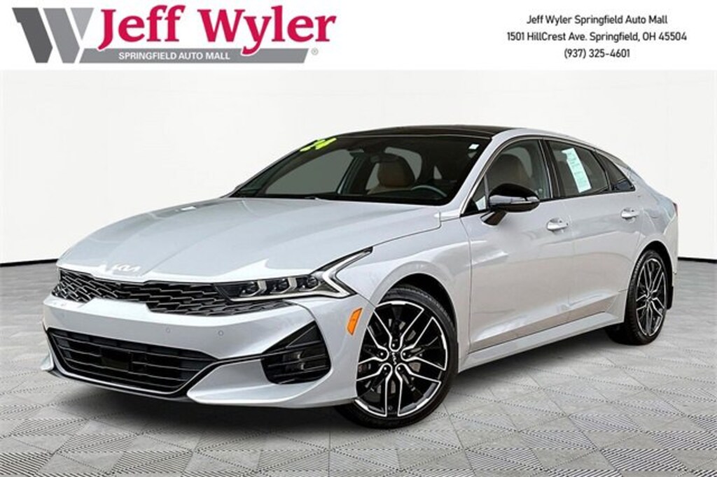 Jeff Wyler Springfield Auto Mall is pleased to offer this terrific 2024 Kia K5 GT in Wolf Gray. Well equipped with: GT Brown Interior Color Package, GT1 Package (Active Sound Design, Auto Up/Down Rear Windows, Bose Premium Audio, Forward Collision Avoidance-Assist, Heated Steering Wheel, Highway Driving Assist, Leather-Wrapped Shift Knob, LED Projection Headlamps, Memory Driver's Seat & Outside Mirrors, Navigation-Based Smart Cruise Control - Curve, Parking Collision Avoidance-Assist - Reverse, Parking Distance Warning - Forward & Reverse, Power Child Lock, Power Folding Outside Mirrors w/LED Turn Signals, Power Front Passenger Seat, Safe Exit Assist w/Lock, Smart Cruise Control w/Stop & Go, Surround View Monitor, and Ventilated Front Seats), 4-Wheel Disc Brakes, 6 Speakers, ABS brakes, Air Conditioning, Alloy wheels, AM/FM radio: SiriusXM, Apple CarPlay & Android Auto, Auto High-beam Headlights, Automatic temperature control, Brake assist, Bumpers: body-color, Carpeted Floor Mats, Delay-off headlights, Driver door bin, Driver vanity mirror, Dual front impact airbags, Dual front side impact airbags, Electronic Stability Control, Emergency communication system, Four wheel independent suspension, Front anti-roll bar, Front Bucket Seats, Front Center Armrest, Front dual zone A/C, Front fog lights, Front reading lights, Fully automatic headlights, Heated door mirrors, Heated front seats, Heated Sport Bucket Seats, Illuminated entry, Knee airbag, Leather steering wheel, Low tire pressure warning, Navigation System, Occupant sensing airbag, Outside temperature display, Overhead airbag, Overhead console, Panic alarm, Passenger door bin, Passenger vanity mirror, Power door mirrors, Power driver seat, Power moonroof, Power steering, Power windows, Radio data system, Radio: AM/FM/MP3 Audio System, Rear anti-roll bar, Rear reading lights, Rear seat center armrest, Rear side impact airbag, Rear window defroster, Remote keyless entry, Security system, Smart Key w/ Push Button and Remote Start, Speed control, Speed-sensing steering, Split folding rear seat, Spoiler, Sport steering wheel, Steering wheel mounted audio controls, SynTex Seat Trim, Tachometer, Telescoping steering wheel, Tilt steering wheel, Traction control, Trip computer, Turn signal indicator mirrors, Variably intermittent wipers, and Wheels: 19 Gloss Black Machined Finish Alloy. Ask about available certifications. Used vehicles 10 years of age or newer with less than 100,000 miles are eligible for the Wyler Assurance Program, but eligible vehicles must pass our reconditioning process and multi-point inspection. Provided the vehicle passes inspection, vehicles will be eligible for the 6 month/6,000 mile limited warranty. The 6 month/6,000 mile limited warranty is NOT available on AS-IS vehicles, wholesale vehicles, lease buyback/pass-thru vehicles or un-inspected vehicles. Note that this program can also apply to vehicles where the remaining factory coverage is less than 6 months or 6,000 miles. Please check the Federal Trade Commission (FTC) Buyers guide on the vehicle for full details as to whether or not warranty coverage may apply. Contact Dealer for additional details. The Wyler Assurance 6 month/6,000 Mile limited warranty ends 6 months from the date of the Retail Purchase Agreement (BUYERS ORDER) or when the vehicle's odometer registers 6,000 additional miles to the mileage listed on the BUYERS ORDER, whichever comes first. Your Deductible - The warranty holder on your contract pays the first $100 of each covered repair.