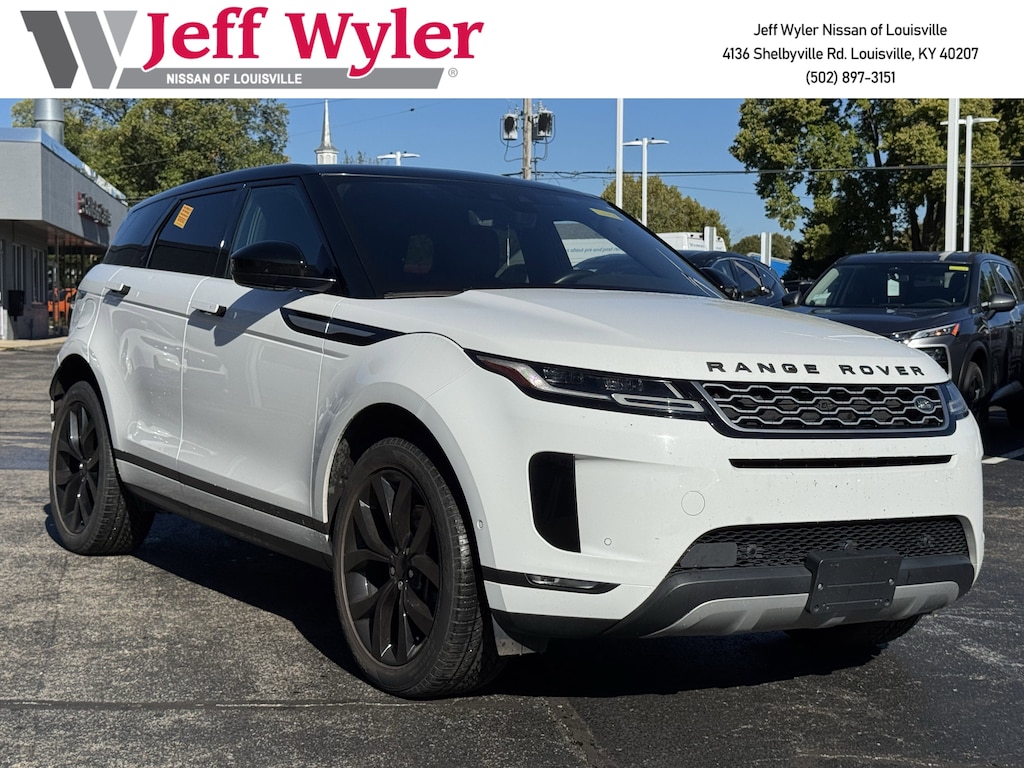 Jeff Wyler Nissan of Louisville is pleased to offer this gorgeous 2020 Land Rover Range Rover Evoque SE in . ** ALL WHEEL DRIVE/AWD **, ** CLEAN CARFAX REPORT **, ** BLUETOOTH **, ** NAVIGATION **, ** SUNROOF/MOONROOF **, ** BACKUP CAMERA **, ** LEATHER INTERIOR **, ** HEATED SEATS **, ** PUSH-BUTTON START **, ** EXCELLENT SERVICE HISTORY **, and ** HOME DELIVERY OPTIONS! ** 14-Way Front Bucket Seats w/Memory, 180 Watt Range Rover Sound System w/6-Speakers, 20" Wheels, 3.94 Axle Ratio, 4-Wheel Disc Brakes, 6 Speakers, ABS brakes, Air Conditioning, Alloy wheels, Android Auto, Apple CarPlay, Apple CarPlay & Android Auto, Auto High-beam Headlights, Auto-dimming door mirrors, Auto-dimming Rear-View mirror, Automatic temperature control, Brake assist, Bumpers: body-color, Compass, Delay-off headlights, Driver door bin, Driver vanity mirror, Dual front impact airbags, Dual front side impact airbags, Electronic Stability Control, Emergency communication system: InControl Protect, Exterior Parking Camera Rear, Four wheel independent suspension, Front anti-roll bar, Front Bucket Seats, Front Center Armrest, Front dual zone A/C, Front reading lights, Fully automatic headlights, Grained Leather Seat Trim, Heated door mirrors, Illuminated entry, Interactive Driver Display, Leather Shift Knob, Low tire pressure warning, Memory seat, Navigation system: InControl Navigation Pro, Occupant sensing airbag, Outside temperature display, Overhead airbag, Overhead console, Panic alarm, Passenger door bin, Passenger vanity mirror, Power door mirrors, Power driver seat, Power Liftgate, Power passenger seat, Power Socket Pack 1, Power steering, Power windows, Radio data system, Radio: Touch Pro Duo Infotainment w/Navigation, Rain sensing wipers, Rear anti-roll bar, Rear fog lights, Rear reading lights, Rear seat center armrest, Rear window defroster, Rear window wiper, Remote keyless entry, Security system, Speed control, Speed-sensing steering, Speed-Sensitive Wipers, Split folding rear seat, Spoiler, Steering wheel mounted audio controls, Tachometer, Telescoping steering wheel, Tilt steering wheel, Traction control, Trip computer, Turn signal indicator mirrors, Variably intermittent wipers, and Wheels: 20" 5 Split-Spoke (Style 5076) Our PRE-OWNED vehicles are put through a rigorous 167- POINT QUALITY ASSURANCE INSPECTION along with an average amount of over $1,400.00 SPENT to recondition each vehicle so we can be sure to deliver you the highest quality vehicle like you deserve! ***ONLINE PRICE DOES NOT INCLUDE WYLER FAMILY FIRST PACKAGE*** Stop by 4136 Shelbyville Road to see for yourself, or give us a call @ 502-897-3151 to schedule your test drive! ** ALL WHEEL DRIVE/AWD **, ** CLEAN CARFAX REPORT **, ** BLUETOOTH **, ** NAVIGATION **, ** SUNROOF/MOONROOF **, ** BACKUP CAMERA **, ** LEATHER INTERIOR **, ** HEATED SEATS **, ** PUSH-BUTTON START **, ** EXCELLENT SERVICE HISTORY **.