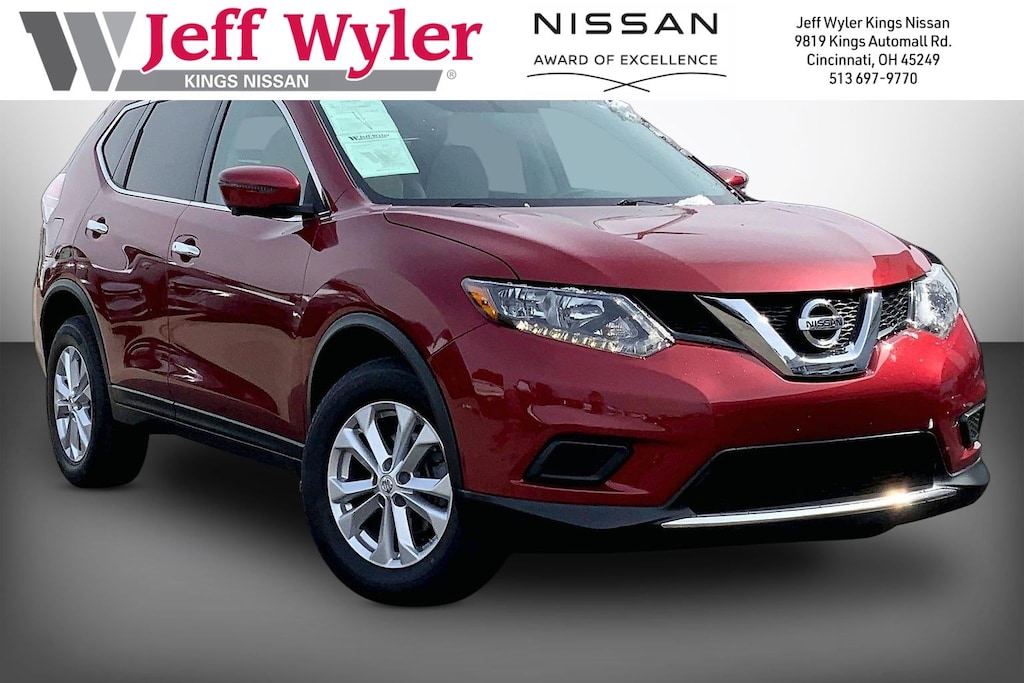 Jeff Wyler Kings Nissan is very proud to offer this outstanding 2016 Nissan Rogue SV in Cayenne Red. Well equipped with: SV Moonroof Package (Power Panoramic Moonroof), SV Premium Package (AroundView Monitor, Blind Spot Warning, Heated Outside Mirrors, Heated Seats, Power Liftgate, and Radio: AM/FM/CD/RDS/AUX NissanConnect w/Navigation), AWD, 17" Aluminum Alloy Wheels, 4-Wheel Disc Brakes, 5.694 Axle Ratio, 6 Speakers, ABS brakes, Activation Disclaimer, Air Conditioning, Alloy wheels, AM/FM radio: SiriusXM, Anti-whiplash front head restraints, Automatic temperature control, Brake assist, Bumpers: body-color, CD player, Chrome Rear Bumper Protector, Cloth Seat Trim, Delay-off headlights, Driver door bin, Driver vanity mirror, Dual front impact airbags, Dual front side impact airbags, Electronic Stability Control, Floor Mats & 2-PC Cargo Area Protector, Four wheel independent suspension, Front anti-roll bar, Front Bucket Seats, Front Center Armrest w/Storage, Front dual zone A/C, Front reading lights, Fully automatic headlights, Illuminated entry, Low tire pressure warning, Occupant sensing airbag, Outside temperature display, Overhead airbag, Overhead console, Panic alarm, Passenger door bin, Passenger vanity mirror, Power door mirrors, Power driver seat, Power steering, Power windows, Radio data system, Radio: AM/FM/CD/RDS/AUX NissanConnect, Rear anti-roll bar, Rear seat center armrest, Rear window defroster, Rear window wiper, Remote keyless entry, Roof rack: rails only, Security system, Speed control, Speed-sensing steering, Splash Guards, Split folding rear seat, Spoiler, Steering wheel mounted audio controls, Tachometer, Telescoping steering wheel, Tilt steering wheel, Traction control, Trip computer, Turn signal indicator mirrors, and Variably intermittent wipers.Ask about available certifications.