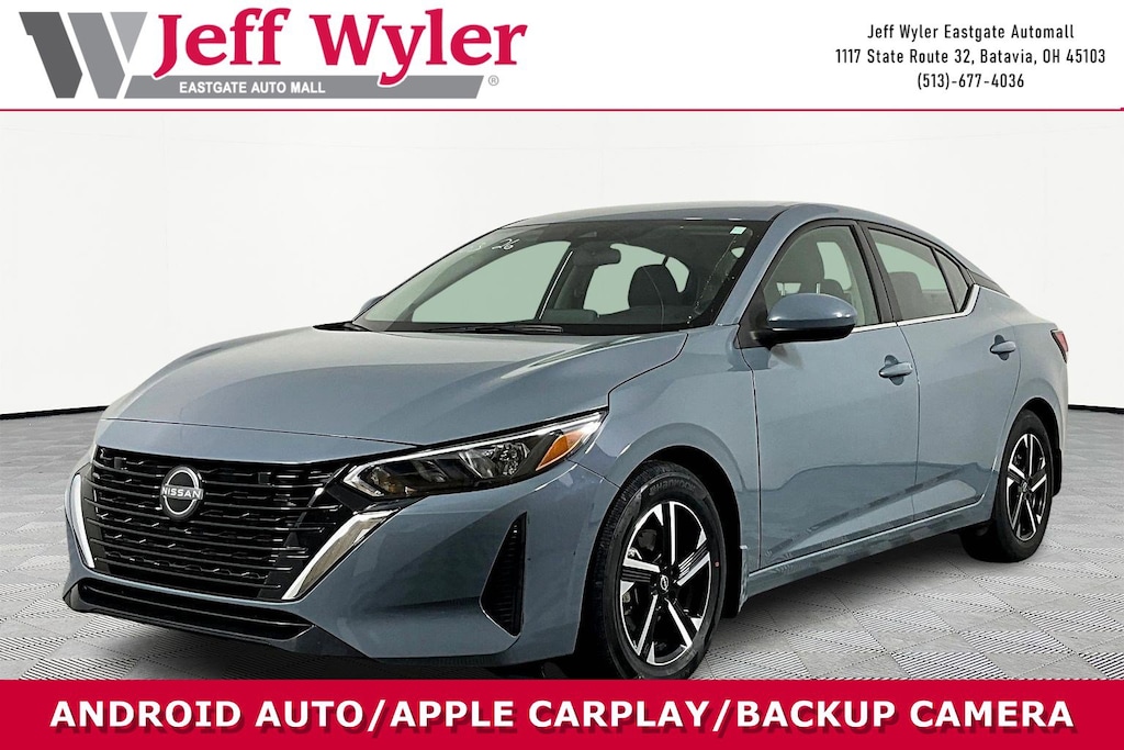 Jeff Wyler Eastgate Auto Mall is proud to offer this good-looking 2024 Nissan Sentra SV in Atlantic Gray Metallic. Well equipped with: 16" Alloy Wheels, 4-Wheel Disc Brakes, 6 Speakers, ABS brakes, Air Conditioning, Alloy wheels, AM/FM radio: SiriusXM, Auto High-beam Headlights, Blind Spot Warning, Body Colored Splash Guards (4-Piece), Brake assist, Bumpers: body-color, Carpeted Floor Mats w/Trunk Mat, Clear Rear Bumper Protector, Delay-off headlights, Door Sill Plates, Driver door bin, Driver vanity mirror, Dual front impact airbags, Dual front side impact airbags, Electronic Stability Control, Four wheel independent suspension, Front anti-roll bar, Front Bucket Seats, Front Center Armrest, Front reading lights, Fully automatic headlights, Illuminated entry, Knee airbag, Leather steering wheel, Low tire pressure warning, NissanConnect featuring Apple CarPlay and Android Auto, Occupant sensing airbag, Outside temperature display, Overhead airbag, Overhead console, Panic alarm, Passenger door bin, Passenger vanity mirror, Power door mirrors, Power steering, Power windows, Radio data system, Radio: AM/FM w/RDS/MP3/Aux-In, Rear anti-roll bar, Rear Parking Sensors, Rear side impact airbag, Rear window defroster, Remote keyless entry, Security system, Speed control, Speed-sensing steering, Split folding rear seat, Steering wheel mounted audio controls, Tachometer, Technical Spec Change 1 (DISC), Telescoping steering wheel, Tilt steering wheel, Traction control, Trip computer, Upgraded Cloth Seat Trim, and Variably intermittent wipers. Ask about available certifications. Used vehicles 10 years of age or newer with less than 100,000 miles are eligible for the Wyler Assurance Program, but eligible vehicles must pass our reconditioning process and multi-point inspection. Provided the vehicle passes inspection, vehicles will be eligible for the 6 month/6,000 mile limited warranty. The 6 month/6,000 mile limited warranty is NOT available on AS-IS vehicles, wholesale vehicles, lease buyback/pass-thru vehicles or un-inspected vehicles. Note that this program can also apply to vehicles where the remaining factory coverage is less than 6 months or 6,000 miles. Please check the Federal Trade Commission (FTC) Buyers guide on the vehicle for full details as to whether or not warranty coverage may apply. Contact Dealer for additional details. The Wyler Assurance 6 month/6,000 Mile limited warranty ends 6 months from the date of the Retail Purchase Agreement (BUYERS ORDER) or when the vehicle's odometer registers 6,000 additional miles to the mileage listed on the BUYERS ORDER, whichever comes first. Your Deductible - The warranty holder on your contract pays the first $100 of each covered repair.