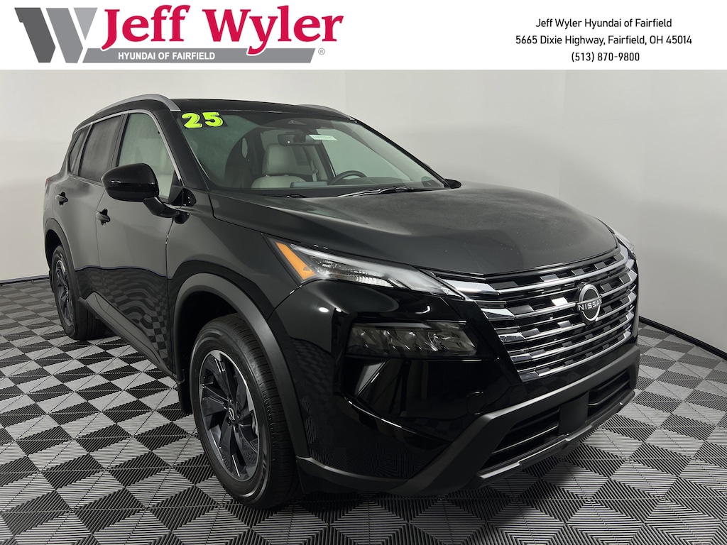 CARFAX One-Owner. Clean CARFAX. Jeff Wyler Hyundai of Fairfield is honored to offer this charming 2025 Nissan Rogue SV in Super Black. Well equipped with: SV Premium Package (Heated Front Seats, Heated Steering Wheel, Leatherette Door Trim Inserts w/Stitch, Panoramic Moonroof, Prima-Tex Leatherette Seat Trim, Rear Door Sunshades, Rear Personal Lights, and Silver Painted Roof Rails), Android Auto, Apple CarPlay, CALL NOW FOR YOUR VIP APPOINTMENT 513-870-9800, FULLY SERVICED w/RECORDS, GUARANTEED FINANCING!! NO MATTER YOUR SITUATION WE CAN GET AN APPROVAL!!, THE #1 Volume dealer in the region! Come see why for yourself Today!!, WE PAY MORE FOR YOUR TRADE!!, 4-Wheel Disc Brakes, 6 Speakers, ABS brakes, Air Conditioning, Alloy wheels, AM/FM radio: SiriusXM, Apple CarPlay/Android Auto, Auto High-beam Headlights, Automatic temperature control, Black Splash Guards (Set of 4), Brake assist, Bumpers: body-color, Chrome Rear Bumper Protector, Cloth Seat Trim w/Patterned Inserts, Delay-off headlights, Driver door bin, Driver vanity mirror, Dual front impact airbags, Dual front side impact airbags, Electronic Stability Control, Emergency communication system: NissanConnect Services, First Aid Kit, Floor Mats w/1-Piece Cargo Area Protector, Four wheel independent suspension, Frameless Rearview Mirror w/Universal Remote, Front anti-roll bar, Front Bucket Seats, Front Center Armrest, Front dual zone A/C, Front reading lights, Fully automatic headlights, Heated door mirrors, Illuminated entry, Knee airbag, Low tire pressure warning, Occupant sensing airbag, Outside temperature display, Overhead airbag, Overhead console, Panic alarm, Passenger door bin, Passenger vanity mirror, Power door mirrors, Power driver seat, Power Liftgate, Power steering, Power windows, Radio data system, Radio: AM/FM NissanConnect, Rear anti-roll bar, Rear seat center armrest, Rear side impact airbag, Rear window defroster, Rear window wiper, Remote keyless entry, Speed control, Speed-sensing steering, Speed-Sensitive Wipers, Split folding rear seat, Spoiler, Steering wheel mounted audio controls, Tachometer, Telescoping steering wheel, Tilt steering wheel, Traction control, Trip computer, Variably intermittent wipers, and Wheels: 18" Dark Painted Machine Finished Alloy. TO CHECK ON THE AVAILABILITY OF THIS VEHICLE REACH OUT TO ONE OF OUR TEAM MEMBERS!! ALSO SHOP ONLINE AT https://www.jeffwylerhyundaioffairfield.com/ Proudly Serving: Cincinnati, Dayton, Columbus, Louisville, Lexington, Indianapolis, Hamilton, Florence, Alexandria, Beavercreek, Springdale, West Chester, Monroe, Fairfield, Kenwood, Newport and all of greater Cincinnati Ohio, Indiana, and Northern Kentucky.