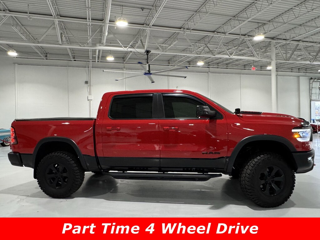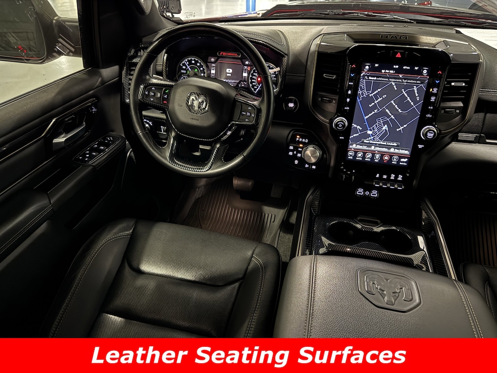 4WD/AWD, XM Radio, Bluetooth, Dual climate Control, Heated Leather Seats, Navigation, Push Button Start, Backup Camera, V8 Engine, CLEAN CARFAX, 1-Yr SiriusXM Guardian Trial, 115V Auxiliary Rear Power Outlet, 12" Touchscreen Display, 3.92 Rear Axle Ratio, 4 Way Front Headrests, 4-Wheel Disc Brakes, 48V Belt Starter Generator, 4G LTE Wi-Fi Hot Spot, 5-Year SiriusXM Traffic Service, 5-Year SiriusXM Travel Link Service, 6 Speakers, 9 Amplified Speakers w/Subwoofer, ABS brakes, Air Conditioning, Alloy wheels, AM/FM radio: SiriusXM, Apple CarPlay, Auto-Dimming Exterior Driver Mirror, Auto-dimming Rear-View mirror, Black Exterior Mirrors, Black Front Bumper w/Black Plate, Black Premium Power Mirrors, Body Color Door Handles, Brake assist, Bucket Seats, Cloth/Vinyl Low Back Bucket Seats, Compass, Delay-off headlights, Disassociated Touchscreen Display, Driver door bin, Dual front impact airbags, Dual front side impact airbags, Electric Shift-On-Demand Transfer Case, Electronic Stability Control, Exterior Mirrors Courtesy Lamps, Exterior Mirrors w/Supplemental Signals, Foam Bottle Insert (Door Trim Panel), For Details, Visit DriveUconnect.com, For More Info, Call 800-643-2112, Front anti-roll bar, Front Bucket Seats, Front Center Armrest w/Storage, Front fog lights, Front reading lights, Front Seat Back Map Pockets, Front wheel independent suspension, Full Length Upgraded Floor Console, Fully automatic headlights, Google Android Auto, GPS Antenna Input, GPS Navigation, Grille Moustache Black Outline Texture 3, HD Radio, Heated door mirrors, Heated Front Seats, Heated Steering Wheel, Illuminated entry, Instrument Cluster Theme 5 - Rebel 2, Integrated Center Stack Radio, Integrated Voice Command w/Bluetooth, Leather steering wheel, LED Footwell Lighting, Low tire pressure warning, Lux Leather Trimmed Bucket Seats, Media Hub w/2 Charge Only USBs, Night Edition, Occupant sensing airbag, Outside temperature display, Overhead airbag, Overhead console, Panic alarm, ParkSense Front/Rear Park Assist w/Stop, ParkView Rear Back-Up Camera, Passenger door bin, Passenger vanity mirror, Power 4-Way Driver Lumbar Adjust, Power 4-Way Passenger Lumbar Adjust, Power 8-Way Driver & Passenger Seats, Power Adjustable Pedals, Power door mirrors, Power driver seat, Power steering, Power windows, Power-Folding Mirrors, Quick Order Package 27W Rebel, Radio data system, Radio: Uconnect 12 w/Navigation, Radio: Uconnect 3 w/5" Display, Radio: Uconnect 4 w/8.4" Display, Rain Sensitive Windshield Wipers, RAM Grille Badge - Black, Rear 60/40 Folding Seat, Rear anti-roll bar, Rear Dome w/On/Off Switch Lamp, Rear seat center armrest, Rear step bumper, Rear Underseat Compartment Storage, Rear Wheelhouse Liners, Rear Window Defroster, Rebel 12A, Rebel Level 2 Equipment Group, Remote keyless entry, Remote Proximity Keyless Entry, Remote Start System, Security Alarm, SiriusXM Radio Service, SiriusXM Satellite Radio, SiriusXM Traffic Plus, SiriusXM Travel Link, SiriusXM w/360L, Speed control, Split folding rear seat, Steering wheel mounted audio controls, Sun Visors w/Illuminated Vanity Mirrors, Tachometer, Telescoping steering wheel, Tilt steering wheel, Traction control, Trailer Brake Control, Trip computer, Universal Garage Door Opener, USB Host Flip, Variably intermittent wipers, Voltmeter, Wheels: 18" x 8.0" Gloss Black, Wheels: 18" x 8.0" Painted Mid-Gloss Black. CARFAX One-Owner. 4WD 8-Speed Automatic HEMI 5.7L V8 Multi Displacement VVTRecent Arrival!15/21 City/Highway MPGAwards: * JD Power Automotive Performance, Execution and Layout (APEAL) Study * Motor Trend Automobiles of the yearAsk about available certifications.