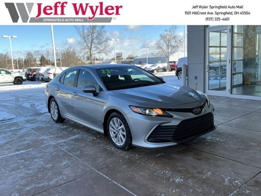 Jeff Wyler Springfield Auto Mall is pumped up to offer this great 2023 Toyota Camry LE in Silver. Well equipped with: 4-Wheel Disc Brakes, 6 Speakers, 7.5J x 17 Alloy Wheels, ABS brakes, Air Conditioning, Alloy wheels, AM/FM radio: SiriusXM, Apple CarPlay/Android Auto, Auto High-beam Headlights, Automatic temperature control, Brake assist, Bumpers: body-color, Delay-off headlights, Driver door bin, Driver vanity mirror, Dual front impact airbags, Dual front side impact airbags, Electronic Stability Control, Emergency communication system: Safety Connect (1-year trial), Exterior Parking Camera Rear, Fabric Seat Trim, Four wheel independent suspension, Front anti-roll bar, Front Bucket Seats, Front Center Armrest, Front dual zone A/C, Front reading lights, Fully automatic headlights, Illuminated entry, Knee airbag, Low tire pressure warning, Occupant sensing airbag, Outside temperature display, Overhead airbag, Overhead console, Panic alarm, Passenger door bin, Passenger vanity mirror, Power door mirrors, Power driver seat, Power steering, Power windows, Radio data system, Radio: Audio, Rear anti-roll bar, Rear seat center armrest, Rear side impact airbag, Rear window defroster, Remote keyless entry, Security system, Speed control, Speed-sensing steering, Split folding rear seat, Steering wheel mounted audio controls, Tachometer, Telescoping steering wheel, Tilt steering wheel, Traction control, Trip computer, and Variably intermittent wipers. Ask about available certifications. Used vehicles 10 years of age or newer with less than 100,000 miles are eligible for the Wyler Assurance Program, but eligible vehicles must pass our reconditioning process and multi-point inspection. Provided the vehicle passes inspection, vehicles will be eligible for the 6 month/6,000 mile limited warranty. The 6 month/6,000 mile limited warranty is NOT available on AS-IS vehicles, wholesale vehicles, lease buyback/pass-thru vehicles or un-inspected vehicles. Note that this program can also apply to vehicles where the remaining factory coverage is less than 6 months or 6,000 miles. Please check the Federal Trade Commission (FTC) Buyers guide on the vehicle for full details as to whether or not warranty coverage may apply. Contact Dealer for additional details. The Wyler Assurance 6 month/6,000 Mile limited warranty ends 6 months from the date of the Retail Purchase Agreement (BUYERS ORDER) or when the vehicle's odometer registers 6,000 additional miles to the mileage listed on the BUYERS ORDER, whichever comes first. Your Deductible - The warranty holder on your contract pays the first $100 of each covered repair.