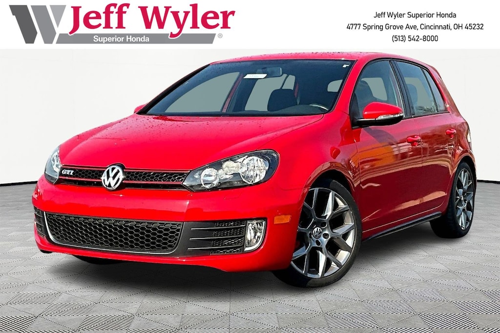 Jeff Wyler Superior Honda is pumped up to offer this wonderful-looking 2013 Volkswagen GTI in Tornado Red. BLUETOOTH GTI Mat Kit, 4D Hatchback, 2.0L I4 TSI DOHC 16V Turbocharged, 6-Speed Manual, FWD, Tornado Red, Interlagos Cloth, 18" Detroit Aluminum-Alloy Wheels, 4-Wheel Disc Brakes, 8 Speakers, ABS brakes, Air Conditioning, Alloy wheels, AM/FM radio: SiriusXM, Anti-whiplash front head restraints, Brake assist, Bumpers: body-color, CD player, Compass, Driver door bin, Driver vanity mirror, Dual front impact airbags, Dual front side impact airbags, Electronic Stability Control, First Aid Kit, Four wheel independent suspension, Front anti-roll bar, Front Bucket Seats, Front Center Armrest, Front fog lights, Front reading lights, Heated door mirrors, Heated front seats, Heated Top Sport Front Seats, Illuminated entry, Interlagos Cloth Seat Trim, Leather Shift Knob, Leather steering wheel, Low tire pressure warning, Occupant sensing airbag, Outside temperature display, Overhead airbag, Overhead console, Panic alarm, Passenger door bin, Passenger vanity mirror, Power door mirrors, Power steering, Power windows, Radio: RCD 310 AM/FM/Single CD Player, Rear anti-roll bar, Rear reading lights, Rear seat center armrest, Rear window defroster, Rear window wiper, Remote keyless entry, Security system, Speed control, Speed-sensing steering, Split folding rear seat, Spoiler, Sport steering wheel, Tachometer, Telescoping steering wheel, Tilt steering wheel, Traction control, Trip computer, Turn signal indicator mirrors, and Variably intermittent wipers Our PRE-OWNED vehicles are put through a rigorous 167- POINT QUALITY ASSURANCE INSPECTION along with an average amount of over $1,400.00 SPENT to recondition each vehicle so we can be sure to deliver you the highest quality vehicle like you deserve! ***ONLINE PRICE DOES NOT INCLUDE WYLER FAMILY FIRST PACKAGE*** Stop by 4777 Spring Grove Ave. Road to see for yourself, or give us a call @ 283-209-1858 to schedule your test drive!Vehicle pricing includes all offers and incentives. Due to limited inventory, offers and pricing are all subject to change. Tax, Title, Tags and $387 doc fees are not included in vehicle price shown and must be paid by the purchaser. Doc fees vary by location. Financing w/approved credit. Mileage est. Based on current EPA estimates reflecting new EPA methods beginning w/ 2008 models. For comparison only. Do not compare to pre 2008 models. Actual mileage may vary based on how you drive and maintain your vehicle. Information on this site includes 3rd party data believed to be reliable, subject to change without notice. Jeff Wyler reserves the right to correct any errors and/or omissions in the compilation or presentation of this data and makes no representations express or implied to any prospective purchaser as to the vehicle's condition, specifications, history, equipment or equipment function, price or warranties. This vehicle may be subject to an open recall that has not been repaired. Please consult safercar.gov for more information on the current status. It is the responsibility of purchaser to confirm any data prior to purchase. Other than MSRP, all offers only apply to this vehicle and are subject to change. Vehicle prices are subject to change and all vehicles are subject to prior sale and may not be available when you are ready to purchase. Prices listed on any other website may not be accepted. Dealership advertises the sale of vehicles through a number of different channels and cannot always control when they are updated. Wyler? and Jeff Wyler? are registered trademarks of the Jeff Wyler Automotive Family, Inc.